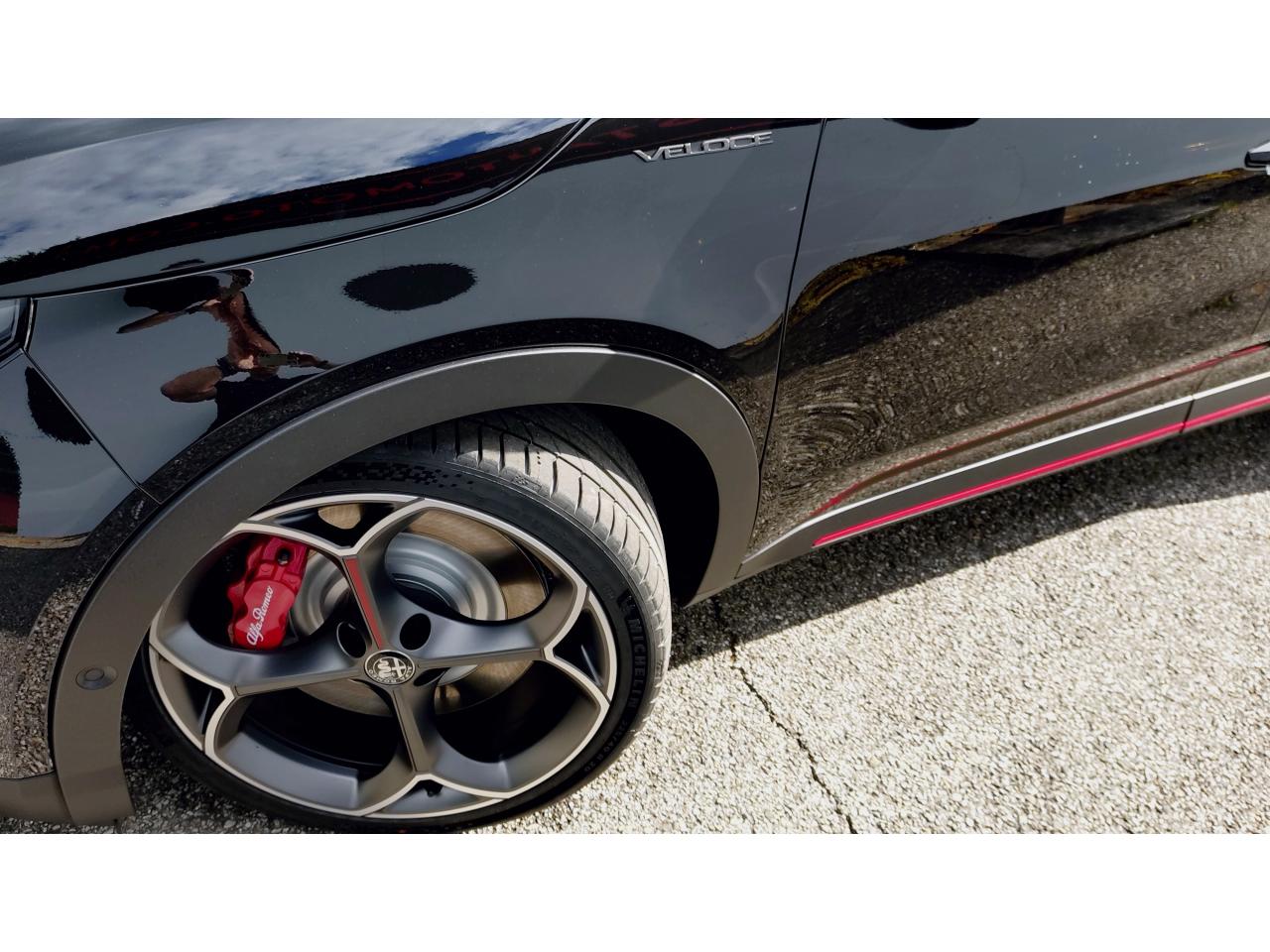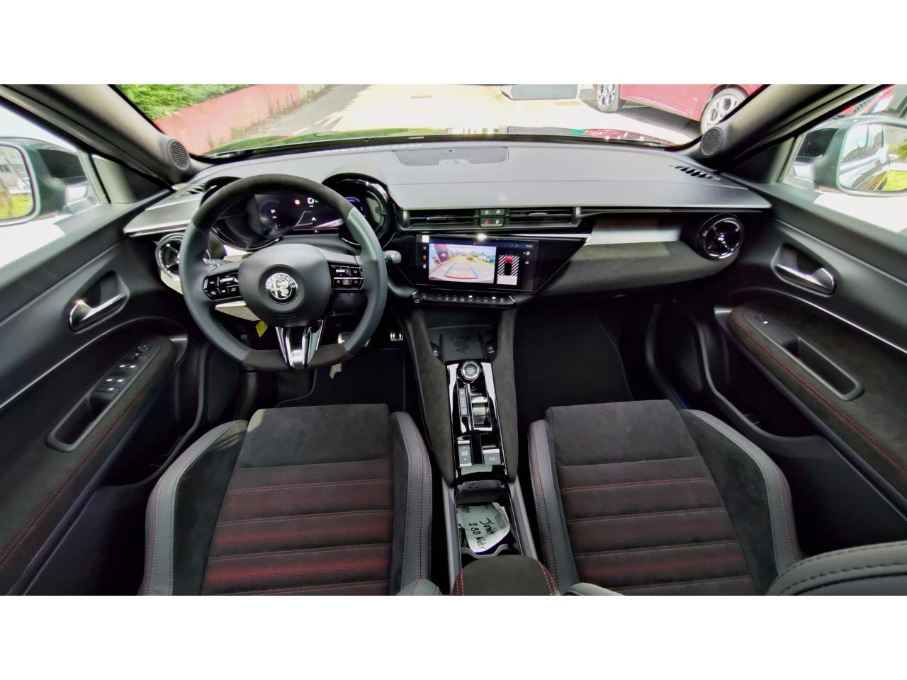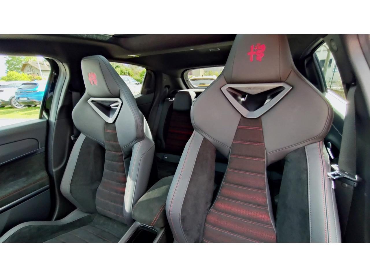 6 AirbagsAccoudoir avantAide au maintien dans la voieAlerte de présence de passager arrièreAlfa Connected ServicesBanquette arrière rabattable 40/60Barres Stabilisatrices spécifiquesBody kit noir mat et inserts rougesCâble de recharge mode 3 type 2Chargeur embarqué 11 KWChassis sport surbaisséClimatisation automatique mono-zoneCombiné d'instruments digital 10,25" "Cannochiale"Contrôle de pression des pneus ( TPMS )Détecteur de fatigue du conducteurDifférentiel à glissement limité TorsenEclairage d'ambiance (Cannocchiale, aérateurs latéraux et tunnel central)Essuie-glaces avant automatique avec détecteur de pluie et allumage automatique des feuxEtriers de frein Brembo peints en rougeFeux arrière full LEDFrein de parking électriqueFreinage d'urgence autonome urbainJantes alliage 20" VentiPédalier en aluminiumPeinture Blanc Sempione/Toit NoirPlancher de coffre ajustablePneus d´étéPrise avant USB type A + C (Charge et données)Projecteurs Full-LED avec signature lumineuseRadars de stationnement arrièreRadio Numérique DABRégulateur de vitesse intelligent avec lecture des panneaux de signalisationRétroviseurs extérieurs noirs brillantsRétroviseurs extérieurs réglables électriquementScudetto ProgressoSélecteur de mode de conduite DNA (3 modes)Sellerie SpigaSeuils de portes en aluminiumSiege conducteur chauffant et réglable électriquementSiège conducteur massantSystème Apple CarPlay / Android Auto sans filSystème audio 4 haut-parleursSystème d'infodivertissement avec écran tactile 10,25"Système de démarrage sans cléTapis de sol avant et arrièreVitres arrière surteintéesVitres avant et arrière électriquesVolant cuir multifonction