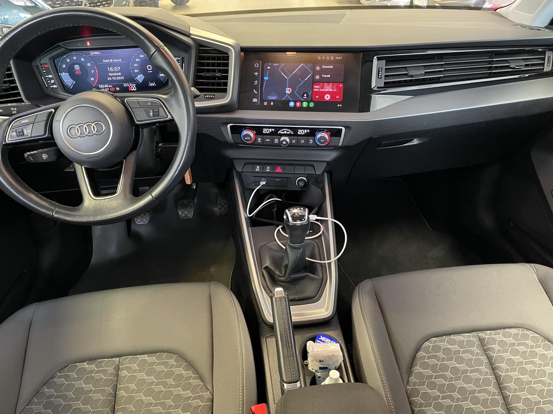 6 haut-parleurs passifs ; 4 à l’avant avec 40 watts et 2 à l’arrière avec 20 wattsAccoudoir central avantAccoudoirs de portières en simili-cuirAffichage du contrôle de la pression des pneumatiquesAirbags latéraux à l'avant et système d'airbags de têteAppel d’urgence Audi connectApplications décoratives étendues en laque diamant Gris ArgentApplications décoratives étendues sur le tableau de bord façon verre en noirApplications décoratives structure polygone en laque fine ardoise sur le tableau de bordAppui lombaire à 2 axes pour les sièges avantArches et pavillon de toit de couleur contrastéeAudi parking system à l'arrièreAudi pre sense frontAudi smartphone interfaceAvertisseur de franchissement de ligneBanquette AR fractionnable 60/40 ou entièrement rabattableBoîtiers de rétroviseurs extérieurs couleur carrosserie sauf teinte Blanc CortinaCalandre en Noir TitaneChâssis standardCiel de pavillon en tissu gris titaneClé à fréquence radioClignotants LED intégrés dans les rétroviseursClimatisation manuelleContrôle électronique de stabilité (ESC)Détecteur de pluie et allumage automatique des projecteursDétection d'occupation des sièges et du port de la ceinture de sécuritéDiffuseur à l’arrière en Noir Titane matDigital CockpitEclairage intérieurEcrous antivolEncadrement de calandre en Argent Aluminium matEssuie-glace arrière à balayage intermittentFeux antibrouillard arrièreInterface BluetoothJantes en aluminium coulé style 5 branches avec inserts en plastique noir, 7,5 J x 17" avec pneus 215/45 R 17Lève-vitres électriques à l'avant et à l'arrièreLimiteur de vitesseMMI Radio PlusMoulures de seuil avec insert en aluminium à l’avantPare-brise en verre athermique avec bande grisePeinture métallisée ou nacrée ou noire verniePhares et feux arrière à LED avec clignotants dynamiques à l'arrièrePrises d’air latérales à l’avant en noir mat grainé avec encadrement C en Noir TitaneRéception radio numérique : réception des signaux DAB, DAB+ et DMB audioRégulateur de vitesseRétroviseur intérieur jour/nuit manuelRétroviseurs extérieurs réglables électriquementSet de réparations pour pneusSièges avant réglables en hauteurSystème de fixation ISOFIX pour siège enfant aux places passager avant et latérales arrièreSystème Stop & StartTapis de sol avant et arrièreTissu Novum pour sièges sport à l'avantTrousse de secours avec triangle de présignalisationVitres athermiquesVolant Cuir 3 branches multifonctions