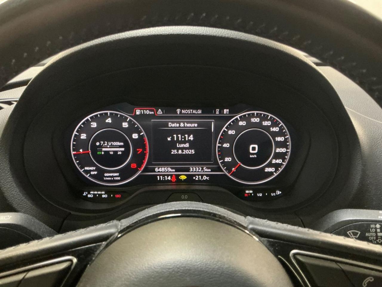Accoudoir central avantAirbag de têteAirbags frontaux et latérauxApplications décoratives Aluminium MistralAppuie-tête intégraux à l'avant et à l'arrièreASR (antipatinage) pour une motricité et une rigidité transversale optimales. Réduit le patinage des roues motricesAudi drive select, permet différents réglages:Efficience, Confort, Dynamique, Auto et IndividuelAudi Hold AssistAudi Parking SystemBoîtiers de rétroviseurs extérieurs dans la teinte du véhiculeBuses de lave-glace chauffantesCâbles de recharge pour téléphone portable, compatibles iPhone et AndroidCasquette de toitChâssis “Sport”Ciel de pavillon en tissu gris rocheClimatisation automatique bi-zoneContrôle de la pression des pneumatiquesDétecteur de pluie et allumage automatique des projecteursDirection assistée ServotronicEcrous antivolESC : contrôle électronique de stabilisation. Relie ABS, EBV, ASR et EDSFeux tout-tempsFrein à disque sur les essieux avant et arrièreFrein de stationnement electromécaniqueInterface BluetoothJantes en aluminium coulé style 5 branches avec pneus 225/45 R 17Kit anticrevaison (compresseur et produit de colmatage)Lecteur CD/MP3 avec un slot pour carte SDPack Aluminium extérieurPack aluminium intérieurPack EclairagePack SmartphonePare-brise avec isolation acoustiquePeinture intégrale unieProjecteurs au Xénon Plus avec feux de jour à LEDRégulateur de vitesseRétroviseur intérieur électrochromeRétroviseurs extérieurs avec clignotants à LED intégrésRétroviseurs extérieurs réglables, dégivrants et rabattables électriquement avec position automatique pour manoeuvre de stationnementSellerie tissu “Rallye”Sièges avant sportSystème ABS avec répartiteur électronique de freinage EBV, programme électronique de stabilisation ESC avec détection de barres de toit et assistance au freinage d’urgenceSystème d'information du conducteur, avec écran couleurSystème Start/ Stop avec récupération d'énergie de freinageTapis de sol avant et arrièreTrousse de secours avec triangle de présignalisationVitres latérales et arrière athermiqueVolant réglable manuellement en hauteur et en profondeur