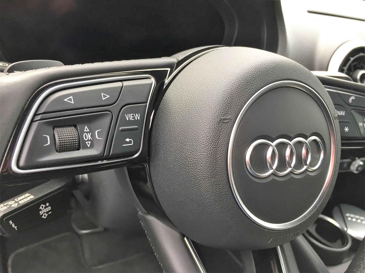Pack SmartphoneCaméra de reculAudi virtual cockpitPhares à LED avec clignotants arrière à LED dynamiquesVolant Sport multifonction 3 branches en cuir avec méplat et palettes de changement de vitesseJantes en aluminium coulé Audi Sport 10 branches en D, style titane mat tournées brill., dim. 7,5J x 18 avec pneus 225/40 R18Navigation MMI plus avec MMI touchLecteur CD/MP3 avec un slot pour carte SDAccoudoir central avantAdvanced KeyAirbag de têteAirbag passager désactivableAirbags frontaux, latéraux et de genoux pour le conducteur et le passager avantApplications décoratives Aluminium MistralAppuie-tête intégraux à l'avant et à l'arrièreASR (antipatinage) pour une motricité et une rigidité transversale optimales. Réduit le patinage des roues motricesAudi connect 3 moisAudi connect 36 moisAudi drive select, permet différents réglages:Efficience, Confort, Dynamique, Auto et IndividuelAudi Hold AssistAudi Parking System plus avec affichage sélectifAudi sound system : 10 haut-parleurs incluant un haut-parleur central et un subwoofer ; amplificateur à 6 canaux avec une puissance totale de 180 wattsBoîtiers de rétroviseurs extérieurs dans la teinte du véhiculeBuses de lave glace dégivrantesCâbles de recharge pour téléphone portable, compatibles iPhone et AndroidCasquette de toitChâssis normalCiel de pavillon en tissu gris rocheClimatisation automatique bizoneContrôle de la pression des pneumatiquesDétecteur de pluie et de luminositéDirection assistée ServotronicEcrous de roues antivolESC : contrôle électronique de stabilisation. Relie ABS, EBV, ASR et EDSFixation pour sièges enfants ISOFIX et Top Tether pour les places arrière extérieuresFrein à disque sur les essieux avant et arrièreFrein de stationnement electromécaniqueInterface BluetoothKit anticrevaison (compresseur et produit de colmatage)Pack Aluminium extérieurPack aluminium intérieurPack EclairagePack rangement et coffrePare-brise avec isolation acoustiquePeinture intégrale unieRécupération d'énergie, générée lors des phases de freinage ou de décélération et système Start/Stop, permettant une économie de carburantRégulateur de vitesseRétroviseur intérieur jour/nuit automatiqueRétroviseurs extérieurs avec clignotants à LED intégrésRétroviseurs extérieurs réglables, dégivrants et rabattables électriquement avec position automatique pour manoeuvre de stationnementSécurité enfants électriqueSellerie en cuir MilanoSièges avant sportSystème ABS avec répartiteur électronique de freinage EBV, programme électronique de stabilisation ESC avec détection de barres de toit et assistance au freinage d’urgenceTapis de sol avant et arrièreTrousse de secours avec triangle de présignalisationVitres latérales et arrière athermiqueVolant réglable manuellement en hauteur et en profondeur