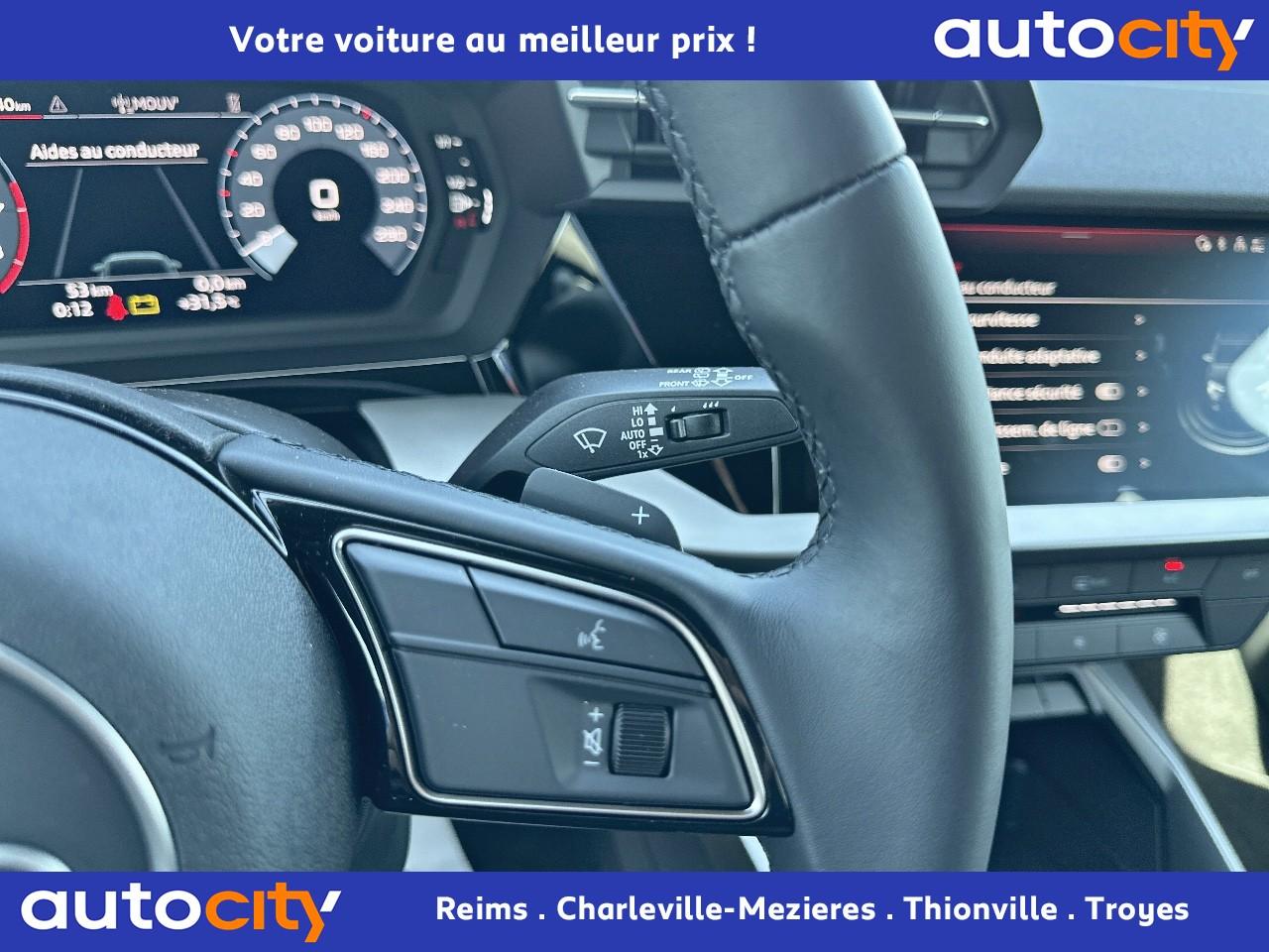 2 prises USB à l'arrièreAirbags latéraux à l'avant, avec airbags de têteAppel d’urgence Audi connectApplications décoratives en aluminium spectre foncéAudi connect Appel d’urgence & ServiceAudi Drive SelectAudi Park AssistAudi pre sense frontAudi smartphone interfaceAudi sound system : 10 haut-parleurs incluant un haut-parleur central et un subwoofer ; amplificateur à 6 canaux avec une puissance totale de 180 wattsAudi virtual cockpitAvertissement de sortie de voieBanquette arrière à dossier rabattable 40/60Boîtiers de rétroviseurs extérieurs couleur carrosserieCaméra de reculCiel de pavillon en tissu noirClé à fréquence radio (sans safelock)Climatisation automatique confort 2 zonesCommande de désactivation d'airbag passager avantContrôle de la pression des pneumatiquesDétecteur de pluie et de luminositéDirection assistée électromécanique asservie à la vitesseEcrous de roues antivolI-Size et Top Tether pour les sièges arrière extérieursInterface BluetoothJantes en alliage léger, 5 branches en Y, Gris Graphite, tournées brillantes, dimension 8,0J x 18 avec pneus 225/40 R18Kit anticrevaison (compresseur et produit de colmatage)Limiteur de vitesseOutillage de bordPack Eclairage intérieurPack Extérieur S linePare-brise avec isolation acoustiquePhares à LED avec clignotants dynamiques à l’arrièreRéception radio numérique (DAB)Régulateur de vitesseRétroviseur intérieur à position nuit automatique, sans encadrementRétroviseurs extérieurs réglables, dégivrants, rabattables électriquement avec fonction rabat automatique (côté passager avant, marche arrière enclenchée) et fonction jour/nuit automatique des deux côtésRappel de ceinture de sécurité avec dispositif arrière de détection d’occupation du siègeSécurité enfant électriqueSièges avant réglables manuellementTrousse de secours, triangle de présignalisation et 2 vestes de sécuritéVolant 3 branches multifonctions plus en cuir et palettes de changement de vitesses