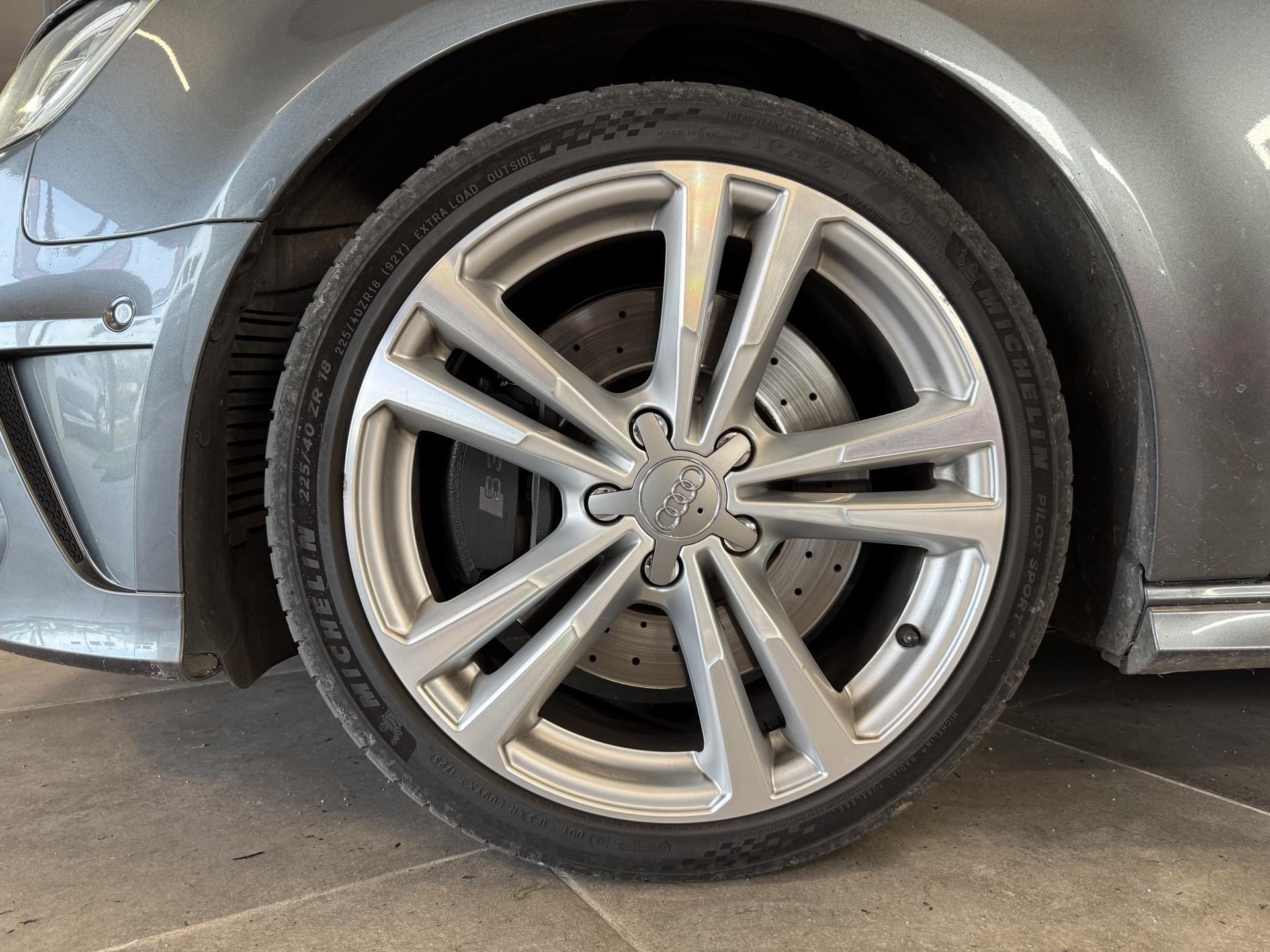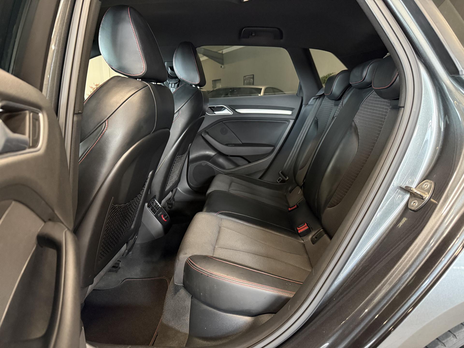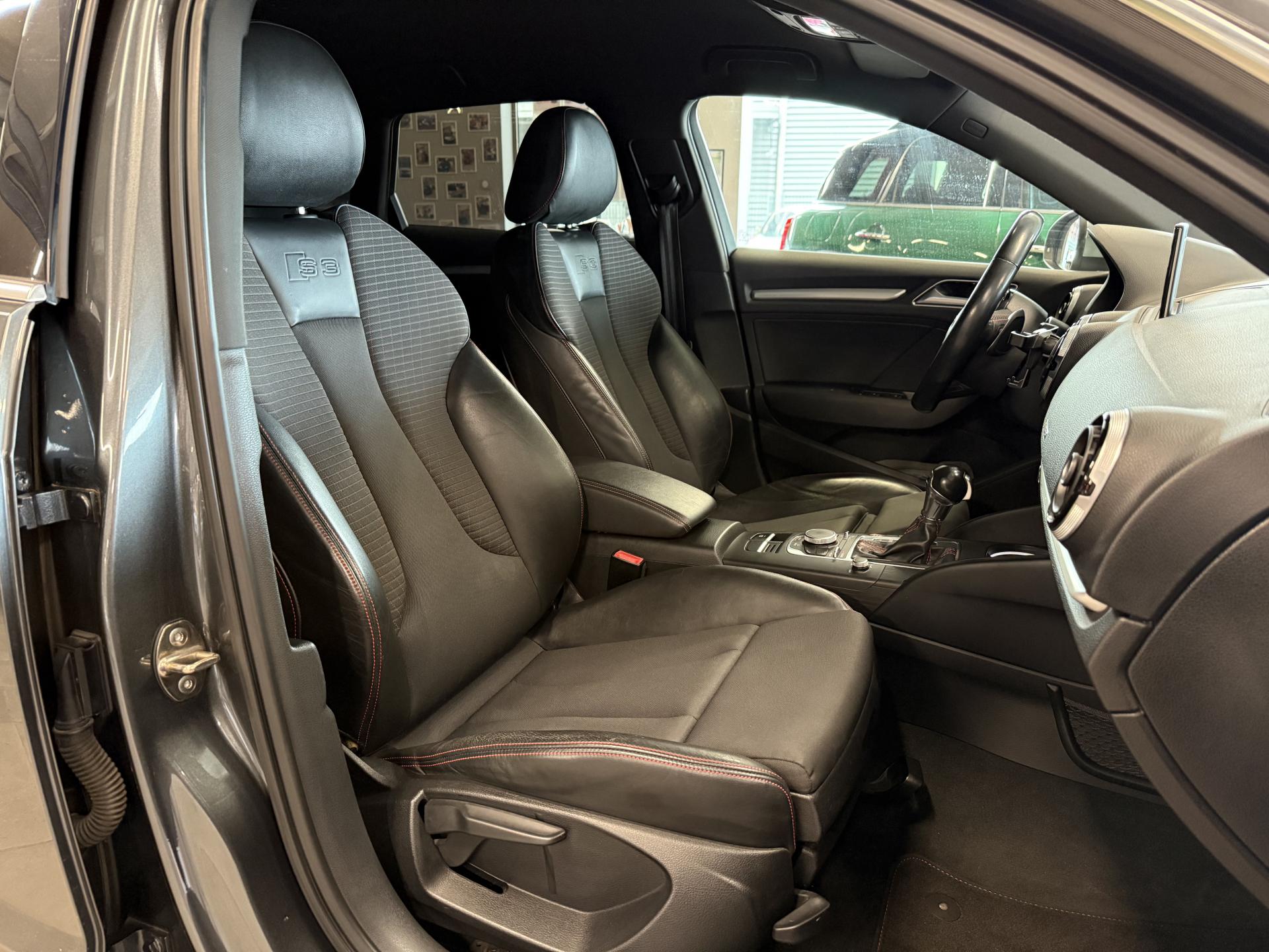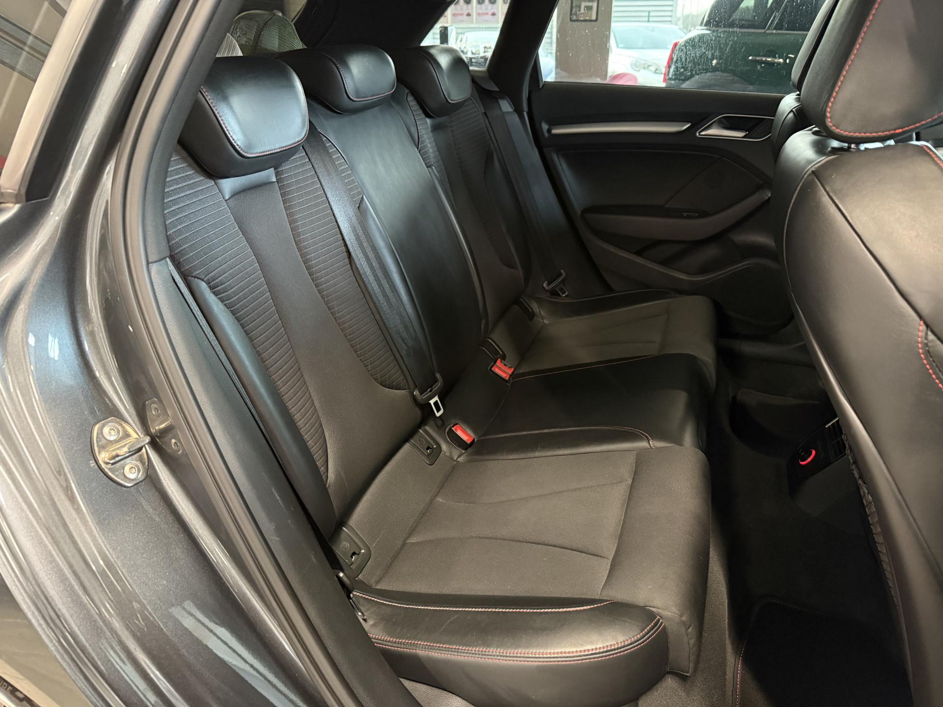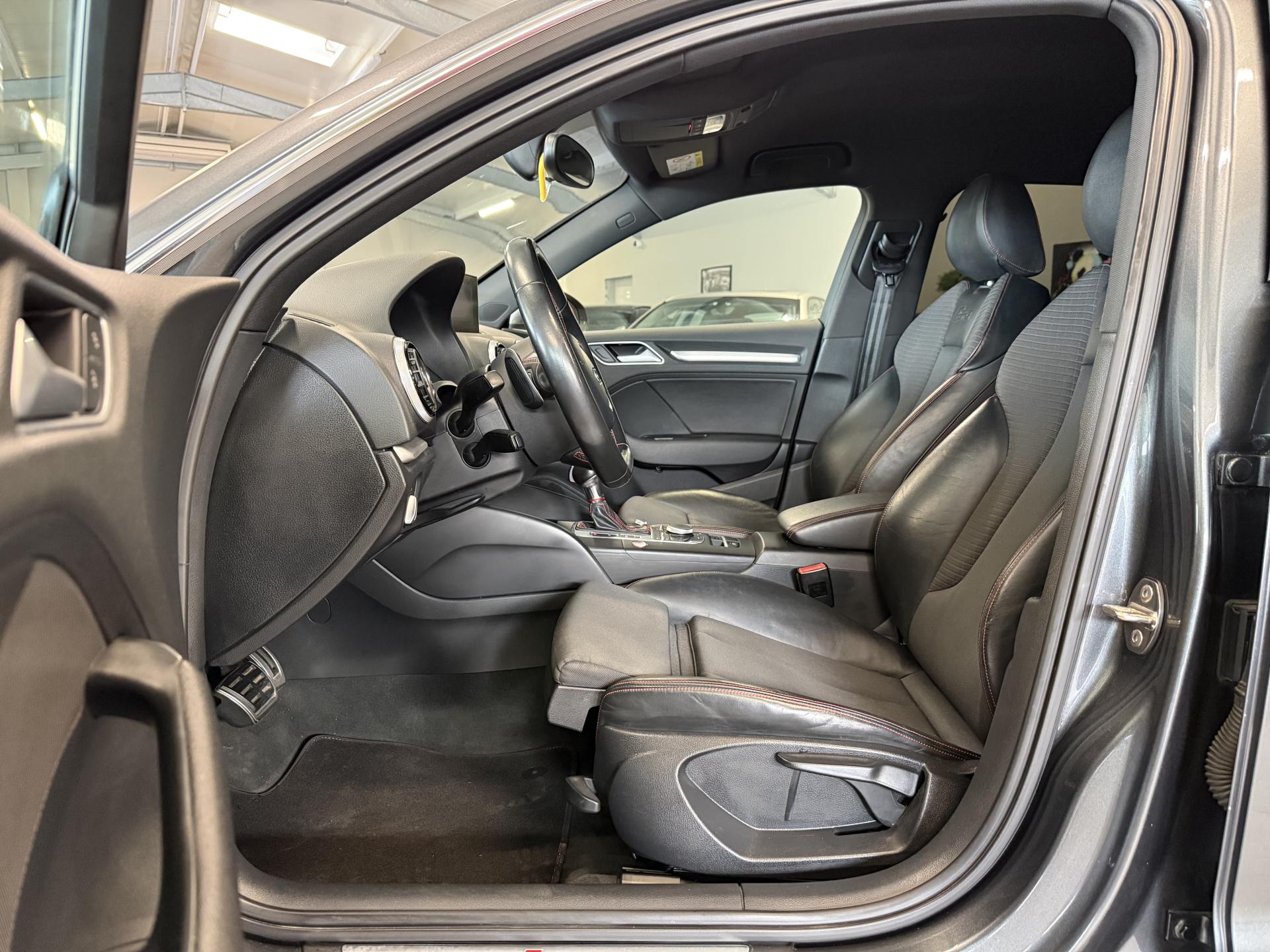 Accoudoir central avant coulissant en longueur, avec vide-poches relevable et inclinaison réglableAirbag genoux conducteurAirbags grand volume pour le conducteur et le passagerAirbags latéraux à l'avant intégrés au dossier des siègesAlarme antivol : avec protection anti-remorquage par capteur d'angle d'inclinaisonAllume-cigare et cendrier amovible, couvercle chromé avec anneaux Audi, allume-cigare sur la console centrale au lieu de la prise 12 volts de sérieAntipatinage électronique ASRApplications décoratives sur les contre-portes et tableau de bord "Aluminium brossé mat"Audi Drive Select, permet différents réglagesAudi parking system à l'arrière facilitant le stationnement dans les limites du système à l'aide d'un signal sonoreAudi Premium Tracking SystemAudi Sound System avec 10 haut-parleursBecquet de pavillon S3, laqué dans la couleur de la carrosserie, avec inserts aérodynamiques latéraux noir brillantBlocage électronique de différentiel (EDS)Boîte à gants grand volume côté passager avant, éclairéeCache-bagages amovibleCalandre Audi singleframe gris platine avec entretoises horizontales chromées, avec anneaux Audi chromés au centreCarrosserie galvanisée (entièrement galvanisée aux endroits sensibles à la corrosion)Ceintures de sécurité 3 points automatiques pour toutes les placesChâssis Sport S surbaissé de 25 mm, avec suspension et amortisseurs plus fermesCiel de pavillon en tissu noirClimatisation automatique Confort avec réglage asservi à la position du soleilContrôle de ceinture attachée pour toutes les placesContrôle de pression des pneus ( TPMS )Contrôle électronique de stabilisation (ESC) désactivable, avec amplificateur hydraulique de freinage d'urgenceDétecteur de pluie et allumage automatique des projecteursDirection progressive contribuant à une augmentation de la dynamique de conduiteDossier de banquette arrière rabattable en deux parties 40/60 ou complètementEcrous antivolEssuie-glace arrière avec déclenchement automatique en marche arrièreFeux arrière avec feux de recul blancs et feux de brouillard arrière, incluant troisième feu stop surélevé et éclairage de plaque à LEDFeux de freinage adaptatifsFeux de route assistés : gestion automatique du passage de feux de croisement à pleins phares et inversementFixation pour sièges enfants ISOFIX et Top Tether pour les places arrière extérieuresIdentification du modèle/technologie sur le capot de coffre ; sur demande sans identification du modèle à l'arrièreInscription quattro sur la calandre, le capot de coffre et le tableau de bord côté passagerInscriptions S3 sur la calandre, le capot de coffre, les baguettes des seuils de portes, les étriers de freins avant, le volant Sport, le pommeau de levier de vitesses et le compte-toursJantes en aluminium coulé style 5 branches doubles en étoile (style S) anthracite, partiellement polies avec pneus 225/40 R 18Lave-essuie-glace 2 vitesses, 4 intervalles de balayage réglablesLève-vitres à l'avant et à l'arrière, électriques, avec protection antipincement, ouverture/fermeture par le verrouillage centralisé, fonction ouverture/fermeture par impulsionLunette arrière dégivrante, avec minuterie; chauffage supplémentaire de l'extrémité inférieure de l'essuie-glace arrièreMMI GPS plus avec données de navigationOEilletons de fixation, 4 dans le coffre, pour maintenir les bagages et objets dans le coffre, points de fixation pour le filet mixte en optionOutillage de bord dans le coffre incluant un cricPack aluminium extérieurPack aluminium intérieurPack EclairagePack rangement et coffrePare-brise acoustique, améliore l'isolation phonique du pare-brise et réduit les bruits extérieursPare-chocs laqués dans la couleur de carrosserie avec prises d'air latérales accentuées, extension de bas de caisse ainsi que diffuseur S à l'arrière au design résolument sportifPare-soleil rabattables et pivotants, côtés conducteur et passager avant, avec miroir de courtoisie occultablePatères à vêtements sur les montants de pavillon centraux, à gauche et à droite, simplesPédalier en acier inoxydable brosséPoignées de maintien. 4 poignées avec mécanisme amortisseur, rabattables, encastrées dans le pavillonPréparation pour téléphone portable (Bluetooth), commande sur volant multifonction, mains libres et audiostreamingPrise de courant 12 volts sur la console centrale à l'avantProtection antidémarrage électronique, intégrée à la gestion du moteur, activation automatique par la clé du véhiculeProtection latérale anticollision avec barres extrêmement rigides dans les portières et une structure latérale de carrosserie renforcéeQuattro: transmission intégrale permanente avec répartition asymétrique et dynamique de coupleRangements dans les contre-portes à l'avant avec casier de rangement pour boissons, rangements dans les contre-portes arrièreRecommandation de repos qui analyse le comportement routier au moyen de différents capteursRégulateur de vitesse avec maintien constant de la vitesse souhaitée à partir d'environ 30 km/hRétroviseur intérieur électrochromeRétroviseurs extérieurs style aluminium avec rappels de clignotant à diodes, asphérique côté conducteur, convexe côté passager avant, dégivrants et escamotables électriquementRoue de secours temporaire de type galetteSellerie mixte en Alcantara et cuir MilanoSeuils de portes avec inserts en aluminium et emblème S3Sièges conducteur et passager avant réglables en hauteurSièges Sport à l'avant avec estampillage SSignal sonore pour oubli d'extinction des feuxSorties d'échappement chromées, visibles et doubles, 2 sorties ovales chromées à gauche et à droiteSupport pour téléphone portable et clé avec compatiment séparé pour le rangement du téléphone portable et la clé du véhicule. Rangement intégré avec encadrement chromé sur la console centraleSystème d'airbags de têteSystème d'information du conduc