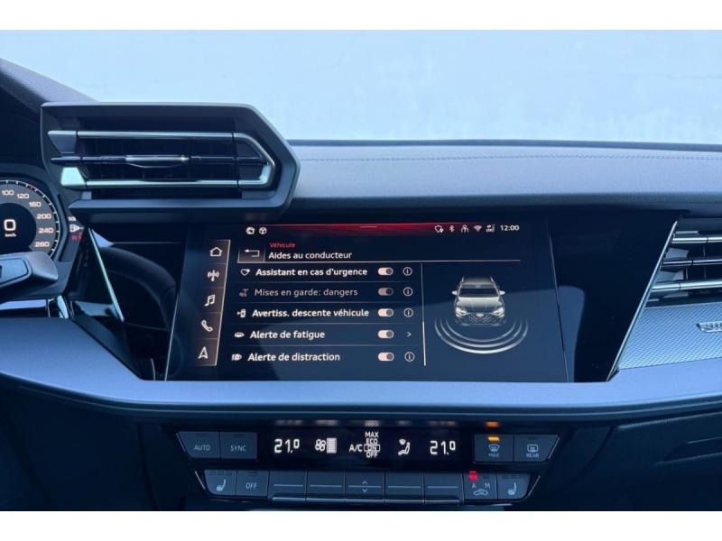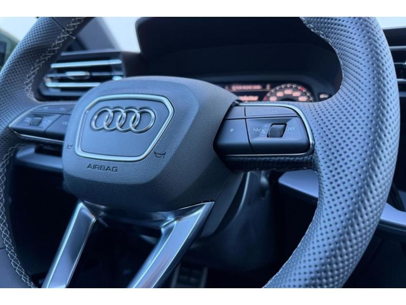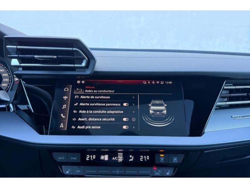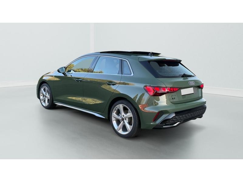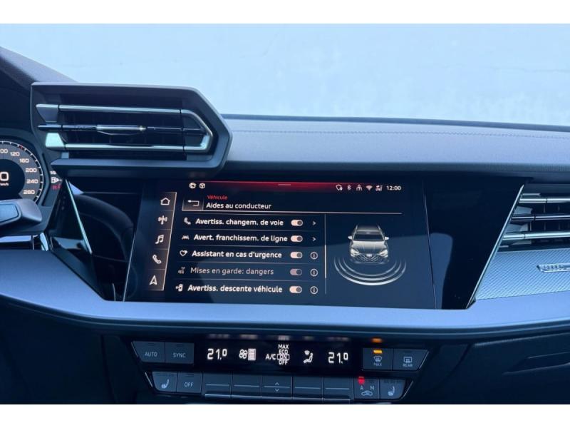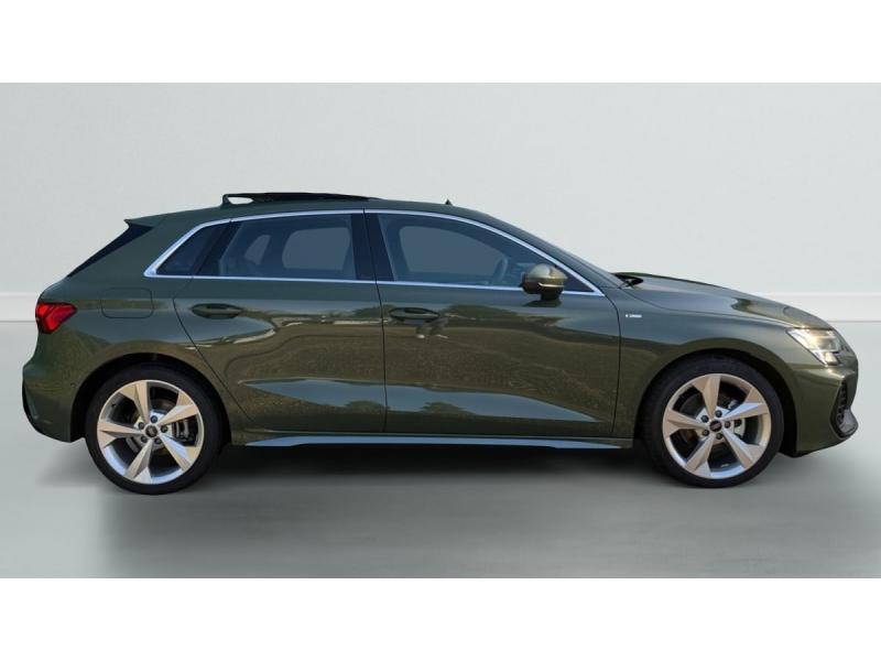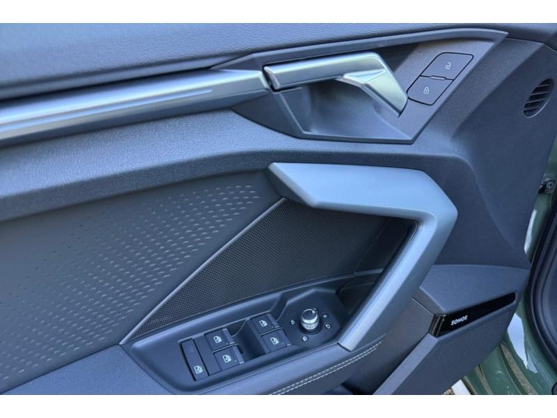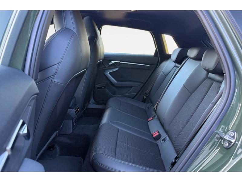 Accoudoir central coulissant en longueur, avec inclinaison réglableAirbags latérauxApplications décoratives en aluminium spectre foncéApplications en aluminium sur la tableau de bordAudi Drive SelectAudi Hold AssistAudi Park AssistAudi park assist plus avec affichage 360°Audi phone box lightAudi pre sense frontCaméra de reculClé ConfortContrôle de pression des pneus ( TPMS )Désactivation de lairbag du passager avantDétecteur de pluie et allumage automatique des projecteursDétection signalisation panneaux routiers par caméraDirection assistée électromécanique asservie à la vitesseDispositif de limitation de vitesseHabillage tableau de bord noirI-Size et Top Tether pour les sièges arrière extérieursJantes en alliage léger, style dynamique à 5 bras, dimension 8,0J x 18 avec pneus 225/40 R18Lave-phares haute pressionMMI Radio PlusPack Assistance Route (Avertisseur de changement de voie et assistant de circulation transversale, Système de sécurité étendu)Pack Brillance Extérieur (Baguettes en aluminium entourages de vitre, Revêtement noir brillant sur les montants)Pack Climatisation (Climatisation automatique Confort 1 zone)Pack Confort (Appui lombaire à 4 axes, Rétroviseur intérieur jour/nuit automatique, Rétroviseurs extérieurs rabattables électriquement)Pack Connectivité (Audi smartphone interface, Audi virtual cockpit plus)Pack Eclairage dambiance proPack Extérieur S linePack intérieur S line #1 (Sièges sport à lavant, Ciel de pavillon en tissu noir, Sellerie tissu Pouls/matériaux synthétiques avec estampagne S monopur 550)Pare-brise à vitrage acoustiquePeinture métallisée Vert DistrictPhares Matrix LED avec clignotants dynamiques à l?avant et à l?arrièrePréparation pour crochet dattelageRéception radio numérique (DAB)Rétroviseur extérieur passager indexé au passage de la marche arrièreRétroviseurs extérieurs couleur carrosserieRétroviseurs extérieurs réglables électriquement et dégivrantsSécurité enfant électriqueSièges avant chauffantsSièges avant réglables manuellementSuspensions sportSystème audio SONOS premium avec son 3DSystème d?assistance au maintien dans la voieTapis de sol noirToit ouvrant panoramique en verreVitres arrières surteintées (vitrage privacy)Volant cuir multifonctions Plus 3 branches avec palettes de commande au volant