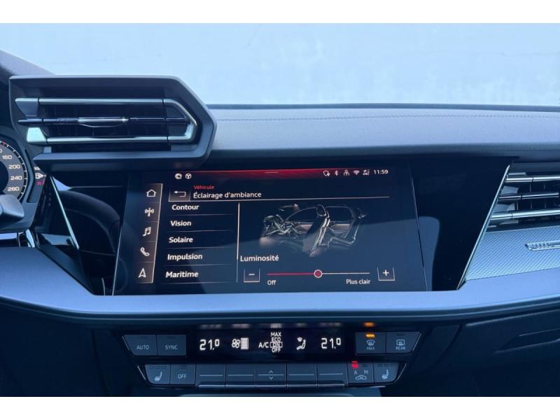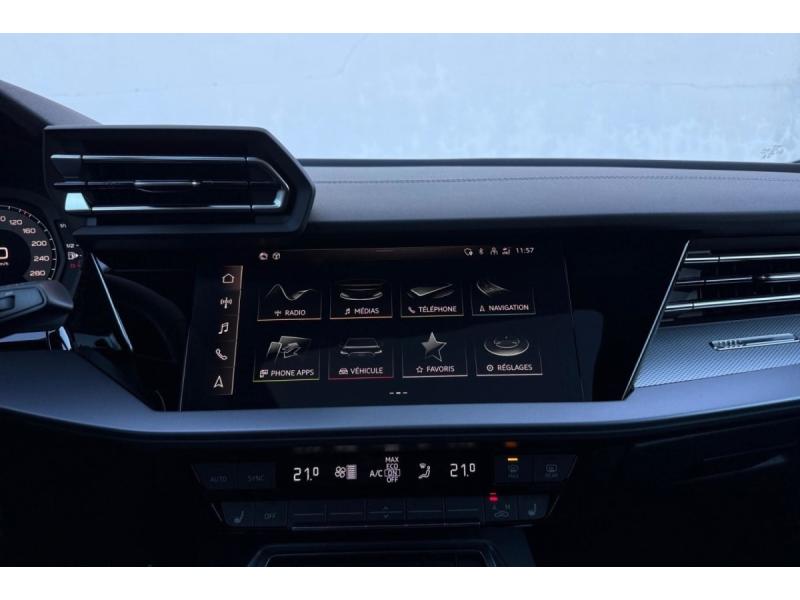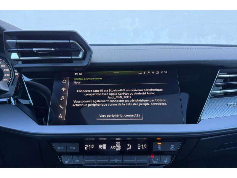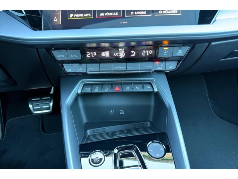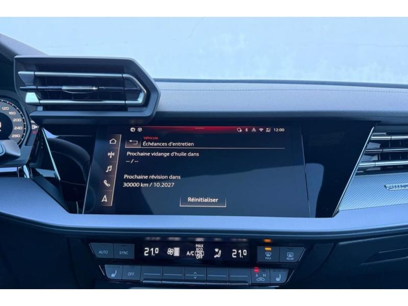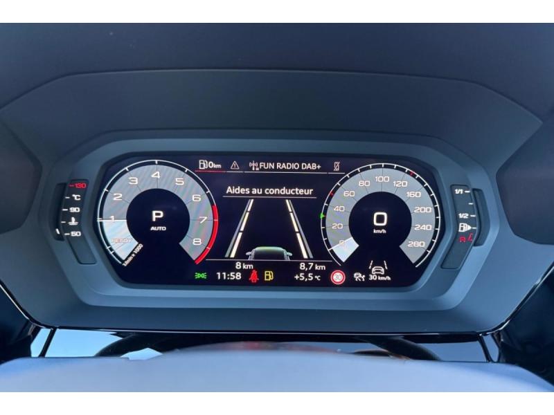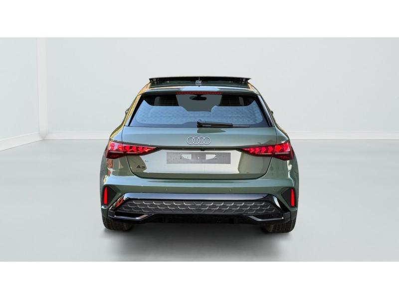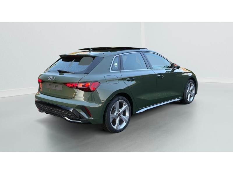 Accoudoir central coulissant en longueur, avec inclinaison réglableAirbags latérauxApplications décoratives en aluminium spectre foncéApplications en aluminium sur la tableau de bordAudi Drive SelectAudi Hold AssistAudi Park AssistAudi park assist plus avec affichage 360°Audi phone box lightAudi pre sense frontCaméra de reculClé ConfortContrôle de pression des pneus ( TPMS )Désactivation de lairbag du passager avantDétecteur de pluie et allumage automatique des projecteursDétection signalisation panneaux routiers par caméraDirection assistée électromécanique asservie à la vitesseDispositif de limitation de vitesseHabillage tableau de bord noirI-Size et Top Tether pour les sièges arrière extérieursJantes en alliage léger, style dynamique à 5 bras, dimension 8,0J x 18 avec pneus 225/40 R18Lave-phares haute pressionMMI Radio PlusPack Assistance Route (Avertisseur de changement de voie et assistant de circulation transversale, Système de sécurité étendu)Pack Brillance Extérieur (Baguettes en aluminium entourages de vitre, Revêtement noir brillant sur les montants)Pack Climatisation (Climatisation automatique Confort 1 zone)Pack Confort (Appui lombaire à 4 axes, Rétroviseur intérieur jour/nuit automatique, Rétroviseurs extérieurs rabattables électriquement)Pack Connectivité (Audi smartphone interface, Audi virtual cockpit plus)Pack Eclairage dambiance proPack Extérieur S linePack intérieur S line #1 (Sièges sport à lavant, Ciel de pavillon en tissu noir, Sellerie tissu Pouls/matériaux synthétiques avec estampagne S monopur 550)Pare-brise à vitrage acoustiquePeinture métallisée Vert DistrictPhares Matrix LED avec clignotants dynamiques à l?avant et à l?arrièrePréparation pour crochet dattelageRéception radio numérique (DAB)Rétroviseur extérieur passager indexé au passage de la marche arrièreRétroviseurs extérieurs couleur carrosserieRétroviseurs extérieurs réglables électriquement et dégivrantsSécurité enfant électriqueSièges avant chauffantsSièges avant réglables manuellementSuspensions sportSystème audio SONOS premium avec son 3DSystème d?assistance au maintien dans la voieTapis de sol noirToit ouvrant panoramique en verreVitres arrières surteintées (vitrage privacy)Volant cuir multifonctions Plus 3 branches avec palettes de commande au volant