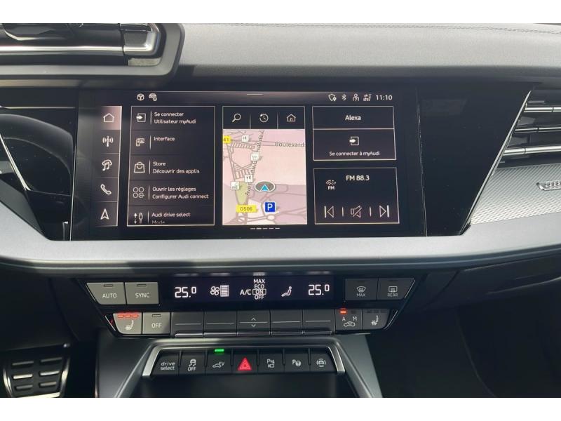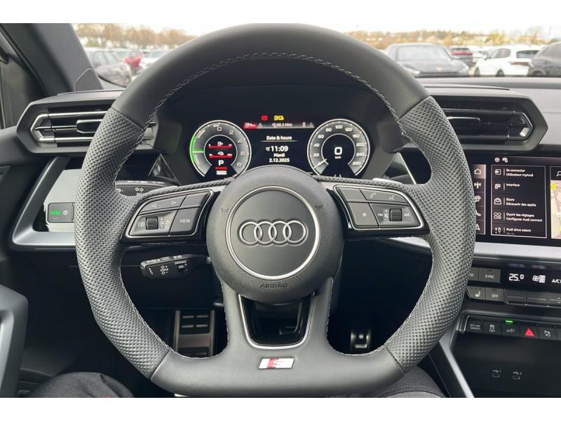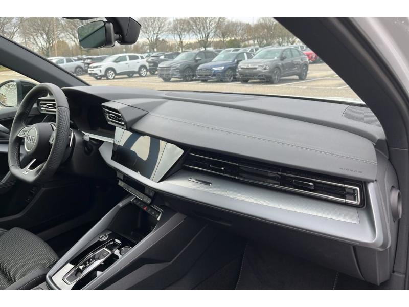 2 ports de charge USB ARABSAccoudoir central coulissant en longueur, avec inclinaison réglableAirbags latéraux à l'AV et système d'airbags de têteAppel d'urgenceApplications décoratives en aluminium Spectre foncé (au tableau de bord)Appui lombaire à 4 axes pour les sièges AV : réglages électrique, horizontal et verticalAssistant de maintien dans la voieAssistant de vitesse adaptatifAudi Drive SelectAudi Hold AssistAudi park assist plus avec caméra. L'aide au stationnement plus peut aider à entrer et à sortir des places de stationnement qui peuvent être limitées par des véhicules ou des objets. Le système prend le contrôle de la direction, de l'aAudi phone box lightAudi pre sense frontBoîte automatique S Tronic 6 vitessesBoîtiers de rétroviseurs extérieurs dans la couleur de la carrosserieBoîtiers de rétroviseurs extérieurs en NoirCâble de recharge mode 3 pour recharge publique 11kWCâble de recharge prise domestiqueClé à fréquence radio (sans safelock) Verrouillage central "Keyless-Go" verrouille et déverrouille les portes, le capot de coffre et la trappe à carburant ; incluant ouverture/fermeture confort des vitresClé confort incluant déverrouillage du coffre par capteur (sans safelock) - Accès et démarrage du véhicule mains libres (keyless access) - Déverrouillage du hayon via la touche "coffre" de la télécommande ou en simulant un mouvement Commande de désactivation de l'airbag passager AVCondamnation centralisée des portesContrôle de la pression des pneusContrôle de la traction (TCS)Détecteur de pluie et de luminositéDétection de signalisation routière par caméraDirection assistée électromécanique, asservie à la vitesseDispositif de limitation de vitesseESPEtriers de freins rougesI-Size et Top Tether pour les sièges AR extérieursJantes en alliage léger 18'', 5 branches en Y, Gris Graphite, tournées brillantes 8,0 J x 18" 225/40 R18Kit réparationMMI Radio PlusOutillage de bordPack éclairage d'ambiance plus 30 couleurs diff. pour le profil de couleur personnalisé. l'éclairage de contour du tableau de bord, l'éclairage d'ambiance des portes AV et AR, l'éclairage de contour des portes AV et AR, le compartiment de Pack assistance M Caméra de recul : Caméra de reculPack climatisation plus Sièges AV chauffants, Climatisation confort automatique 3 zones : Sièges AV chauffants Climatisation automatique Confort 3 zonesPack connectivité Audi virtual cockpit plus, MMI Navigation plus, Audi Connect, Audi sound system, Audi Smartphone Interface : Audi Sound System Audi Virtual Cockpit Plus MMI Navigation plus avec MMI touch Audi connect Navigation & Infotainment Audi smartphone interfacePack Esthétique Noir Plus Reprend tous les éléments de Pack Esthétique Noir + anneaux Audi en noir sur l'AV et l'AR du véhicule et identification du modèle/moteur en noir : Pack Esthétique Noir Anneaux Audi en noir AV et AR du véhicuPack extérieur S linePack intérieur S linePack intérieur sport combinaison tissu/matière synthétique Sièges sport à l'AV, Sellerie en combinaison tissu Pouls/similicuir avec estampagne S, Pédalier en acier inoxydable, Enjoliveurs de seuil de porte avec inserts en aluminium à lPare-brise à vitrage acoustiquePhares à LED avec clignotants dynamiques ARPhares AV halogènesRéception radio numérique (DAB)Rétroviseur intérieur jour/nuit automatique sans encadrementRétroviseurs extérieurs réglables, dégivrants, rabattables électriquement avec fonction rabat automatiqueRappel de ceinture de sécurité avec dispositif AR de détection d'occupation du siègeSécurité enfant électriqueSellerie tissu "Pouls" / Combinaison tissue pouls/en matière synthétiques avec estampage SSystème Start & Stop avec récupération d'énergie au freinageVitrage Privacy : lunette AR, vitres de portières AR et vitres latérales AR surteintéesVitres électriquesVitres AR surteintéesVolant cuir Sport multifonctions Plus 3 branches avec méplat et palettes de commande au volant