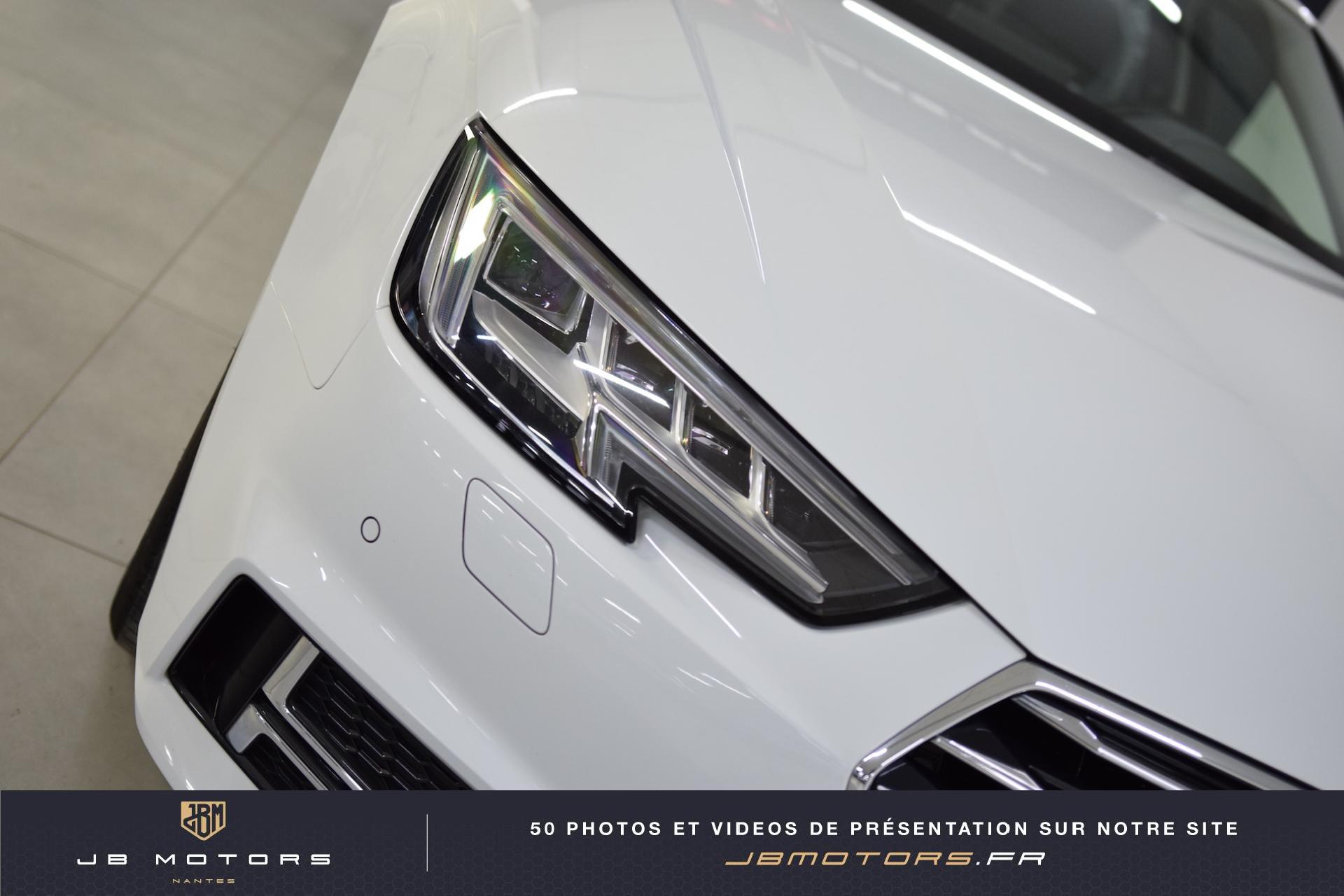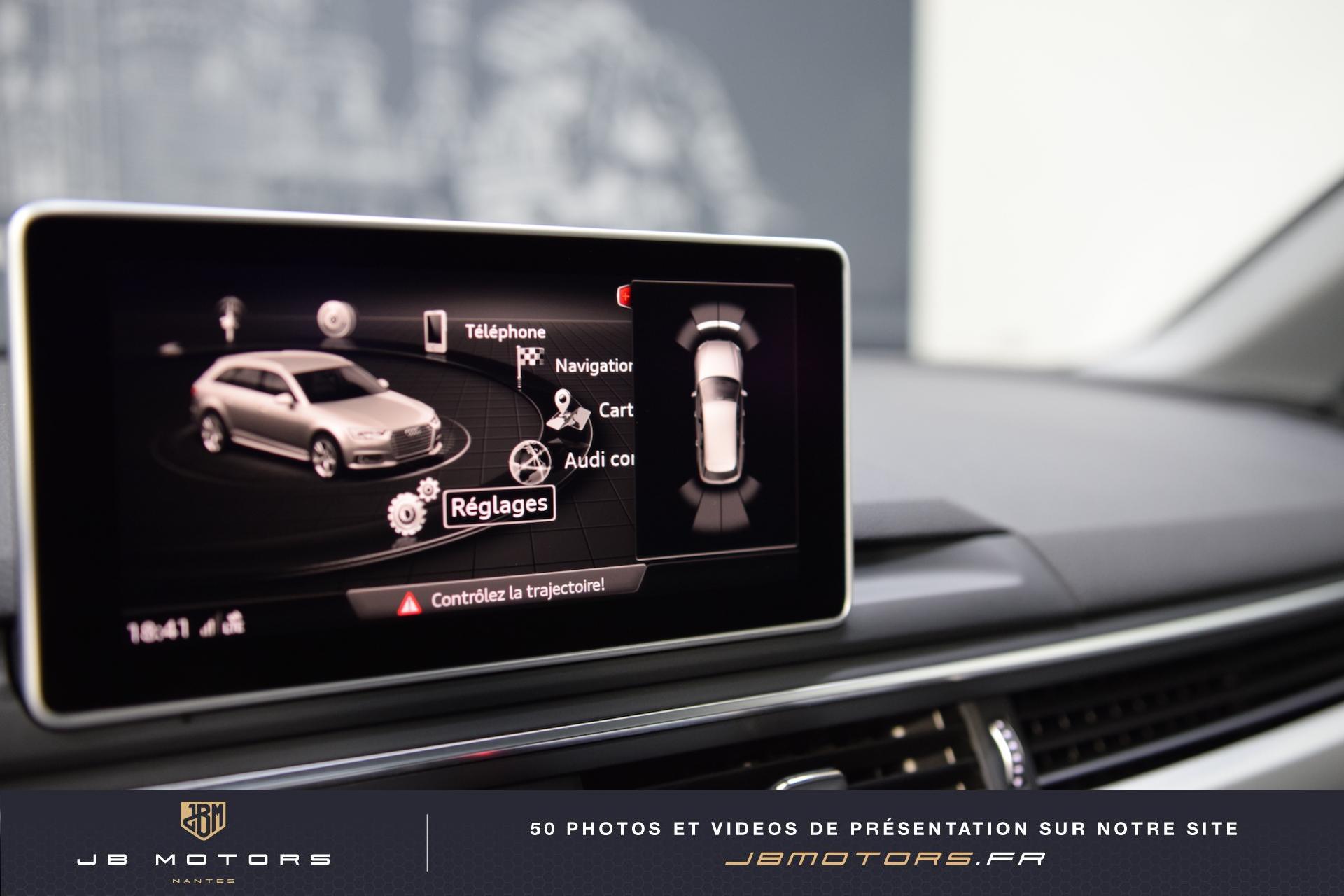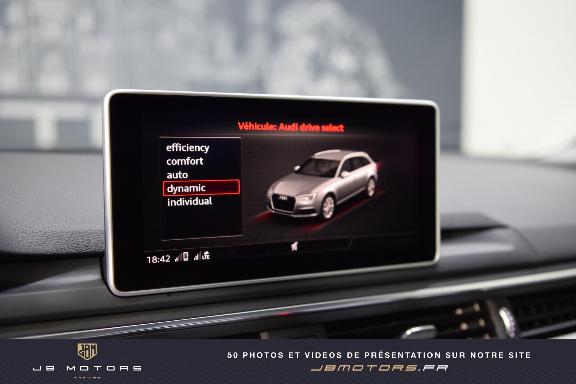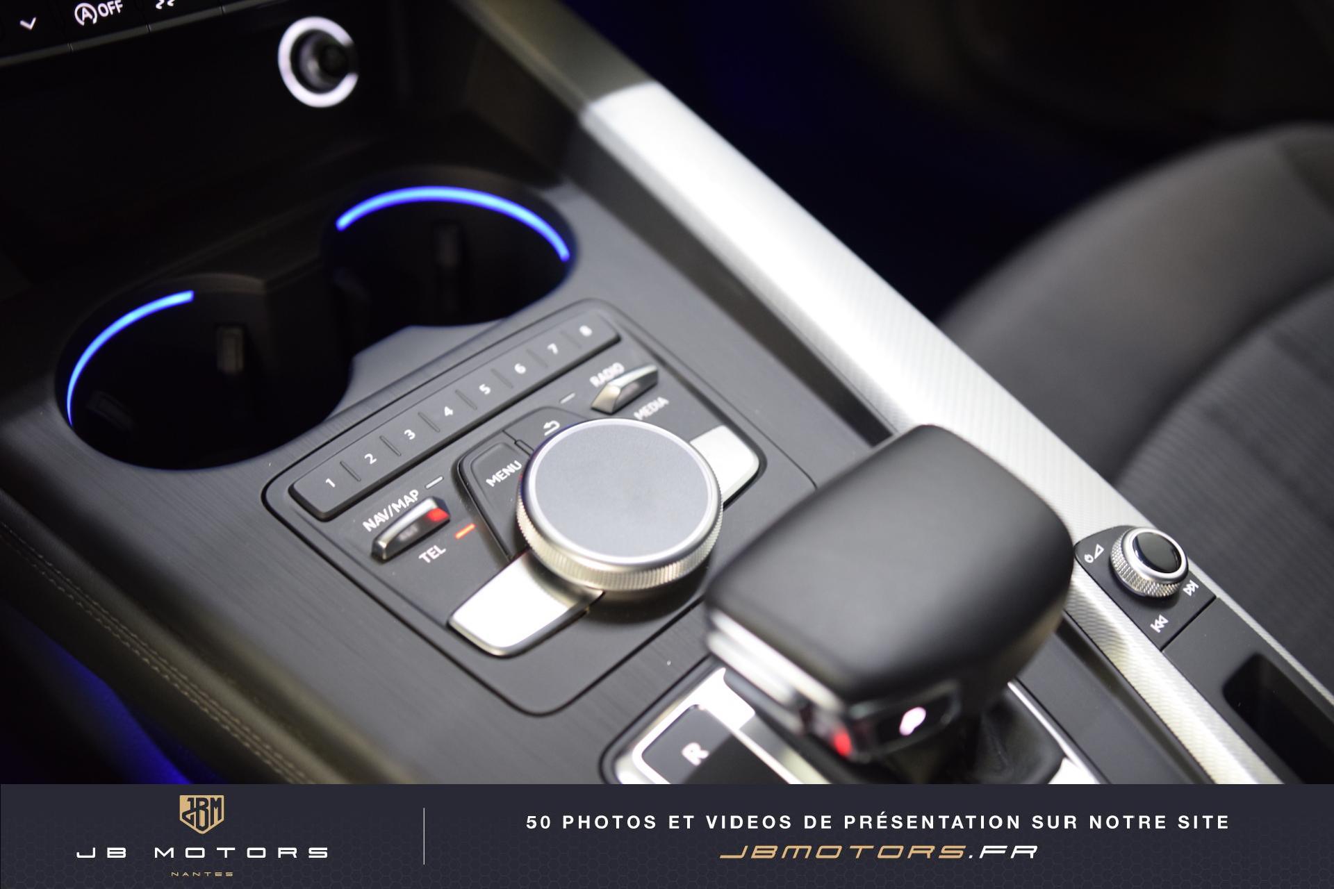 Volant 3 branches multifonction plus en cuir avec palettes de... 3 profils de couleur prédéfinis et un profil de... Accoudoir central AR Airbags latéraux AR Audi Connect avec une carte SIM de données intégrée... Audi Hold Assist (Assistant de démarrage en pente) Audi Parking System Plus: Signal sonore et visuel d'aide... Audi phone box Audi Pre Sense Basic Audi Sound System Audi Virtual Cockpit : Système d'information du conducteur... Boîte à gants verrouillable Clignotants AV/AR dynamiques Coffre : système de glissières avec kit de fixation... Coming Home / Leaving Home Commutation des phares Eclairage de carrefours Eclairage tout-temps Feux AR à LED Feux de virage dynamiques Filet de coffre Filet de rangement au dos des sièges AV Jantes en aluminium coulé style 5 branches parallèles,... Lave phares haute pression Navigation MMI Plus avec MMI Touch: Système de navigation Pack Eclairage Peinture métallisée Réglage automatique dynamique du site des phares Rétroviseurs extérieurs réglables et escamotables... Sangles de serrage à gauche et à droite dans le... Sièges AV chauffants Vide-poches côté conducteur