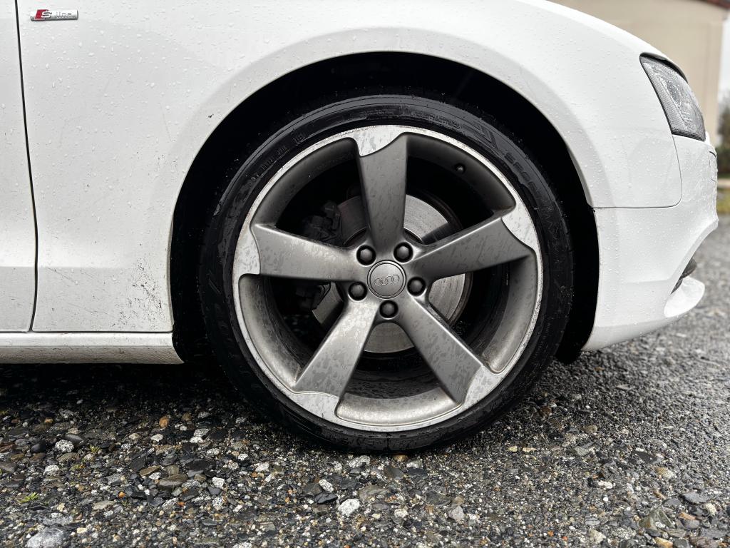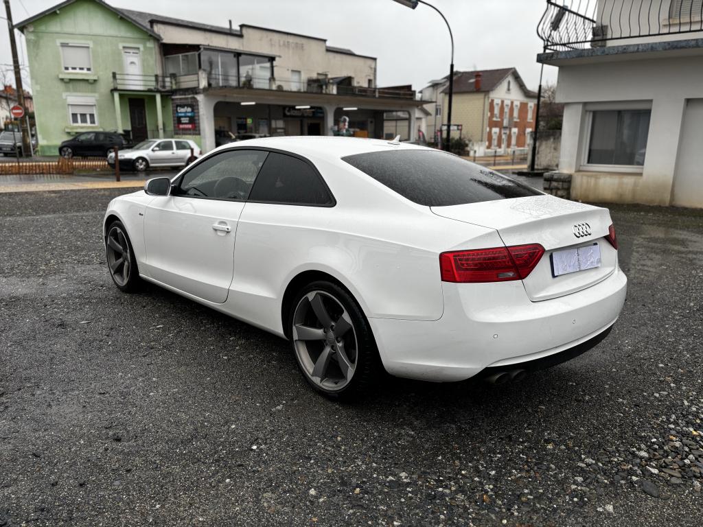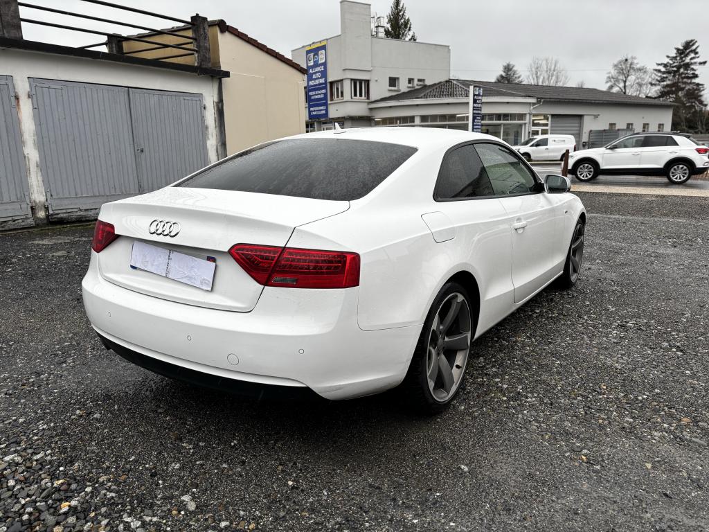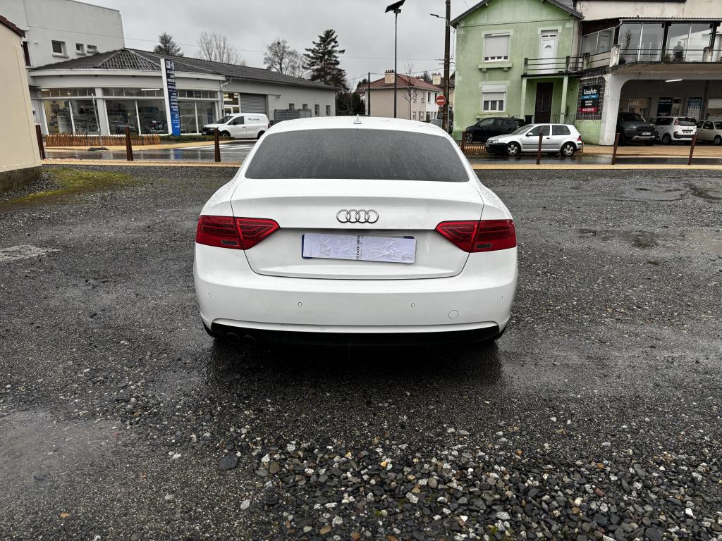 Accoudoir central avant relevable avec vide-poches fermé par abattant ; 2 prises 12 V dans la console centraleÉtui à lunettes, dans le module d'éclairage intérieur avant, au-dessus du rétroviseur intérieurAirbags grand volume pour conducteur et passager avant avec détecteur de la position d'assise ; airbag adaptatif pour le conducteur et passager avantAirbags latérauxAllume-cigare intégré dans le cendrier avantAntipatinage électronique ASRApplications décoratives en aluminium brossé matAppuie-tête réglables à l'avant et à l'arrièreAvertisseur deux tons avec commande au centre du volantBlocage électronique de différentiel EDS, aide au démarrage intervenant jusqu'à une vitesse d'environ 100 km/h, freinant automatiquement les roues motrices sur route glissante et inégalement adhérenteCalandre Singleframe avec lamelles horizontales noires brillantesCapot de coffre à ouverture automatique, lors du déverrouillage du coffre par la télécommande, par la touche située sur la portière ou par actionnement de la touche douce sur le capot du coffre, le capot s'ouvre automatiquementCarrosserie galvaniséeCeintures de sécurité, automatiques à trois points pour les quatre places, contrôle de port de ceinture, couleur assortie à celle de l'habitacleCendrier dans la console centrale à l'avant et à l'arrièreChâssis Sport avec amortissement plus ferme et suspensions renforcéesChargeur 6 CD compatible MP3 et WMA dans la boîte à gantsCiel de pavillon en tissu noirClimatisation automatique Confort Plus 3 zonesColonne de direction de sécurité : contient un système mécanique de déplacement avec fonction d'amortissement qui complète le potentiel de sécurité de la ceinture et de l'airbagContact d'allumage électronique ; clé de contact pouvant mémoriser différentes données d'entretienContrôle de pression des pneus : vérifie durant la marche la pression de chacune des roues en serviceCric dans le coffreDésactivation de l'airbag du passager avantDétecteur de pluie et de luminosité incluant fonction coming/leaving home et bande grise en haut du pare-briseDirection asservie à la vitesse servotronicDossier des sièges arrière rabattable séparément, avec déverrouillage à distance des dossiers depuis le coffreEclairage intérieur à extinction temporisée et contacteurs sur toutes les portières ; éclairage coffre, conducteur passager avant et arrière, deux spots de lecture à l'avant, éclairage intérieur de l'arrière, miroir de cEcran 6,5 pouces monochrome sur le tableau de bord pour l'affichage des fonctions radio, climatisation et menu du véhicule, ainsi que de l'heureEcrous antivolEntourages de vitre en aluminium, revêtement noir brillant sur les montants de pavillon centraux et les triangles des portières arrièreFonction Start/StopFrein de stationnement electromécaniqueGPS PlusIndicateur d'usure des disques à l'avant, affi chage sur le système d'information du conducteurIndicateur de rapport de vitesse dans le système d'information du conducteur : apporte assistance au conducteur dans le choix du rapport de vitesse adaptéIndicateur de température extérieure dans le système d'information du conducteur ; en cas de températures inférieures à +5 °C, un cristal de glace apparaît sur l'afficheur, avertissant de la possibilité de verglasInscriptions S line sur ailes avant et seuils de portesInstrumentation à éclairage réglable, tachymètre électronique avec compteur kilométrique totalisateur et journalier, compte-tours, horloge, indicateur de température du liquide de refroidissement et jauge de carburantJantes Audi exclusive en aluminium coulé style 5 branches, 8,5 J X 18” avec pneus 245 / 40 R 18Lève-vitres avant électriques avec protection antipincement et fonction confort d'ouverture/fermeture par impulsion ; vitres arrière fixesLave-glace, deux vitesses, réglage d'intermittence sur 4 niveaux, commande de balayage coup par coup, lavage-balayage automatiqueLave-phares haute pressionLimiteurs d'effort des ceintures de sécurité avantLunette arrière dégivrante, avec minuterieOrdinateur de bord couleur : affichage du média utilisé, du rapport de vitesse engagé, de la température extérieure et le cas échéant de la navigation ou du menu du téléphone. Le programme efficiency intégré assiste le condOutillage de bord dans le coffreParking System : système acoustique d'aide au stationnement arrièrePhares antibrouillard intégrés dans le pare-chocsPhares halogènes à projecteur ellipsoïdal sous vitre transparente, réglage électrique du site des phares et commande d'éclairage de stationnementPoignées de maintien, amorties, rabattables dans les deux sens, dans le ciel de pavillonPoignées de portières extérieures laquées dans la couleur de carrosserie, poignées cintrées agréables à utiliserPommeau de levier de vitesses en cuir perforé, surpiqûres de soufflet de levier de vitesses argentPré-équipement attelagePréparation ISOFIX pour sièges latéraux arrière et siège passager avantPréparation téléphone 2 W bi-bande (D et E), sans support pour adaptateur ni antenne de toit, commande sur volant multifonction, mains libres, interface BluetoothPrétensionneurs des ceintures de sécurité avantProgramme électronique de stabilisation ESP, relie ABS, ASR et EDSProtection antidémarrage électronique, intégrée à la gestion du moteur, activation automatique par la clé du véhiculeQuatre oeilletons de fixation, pour maintenir les bagages et objets dans le coffre, points de suspension pour le filet mixteRéglage d'appuis lombaires électriques sur 4 plans pour sièges avantRégulateur de vitesse électronique actif dès 30 km/h. Inclut fonction de freinage. Affichage de la vitesse paramétrée sur l'écran de l'ordinateur de bordRéservoir avec protection contre les erreurs de ravitaillementRétroviseur intérieur jour/nuit automatique incluant une bande grise en haut du pare-briseRétroviseurs exté