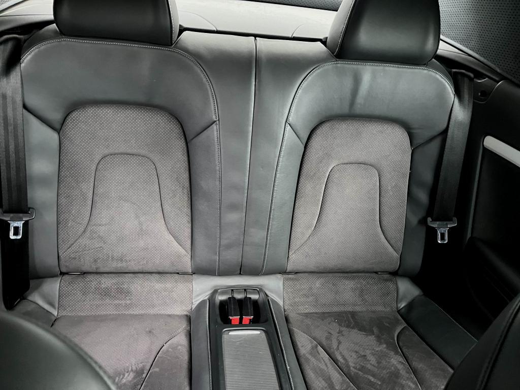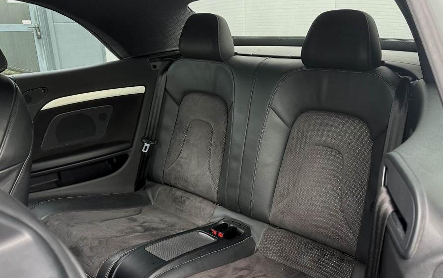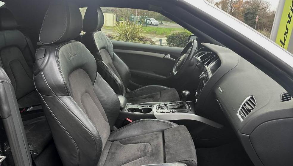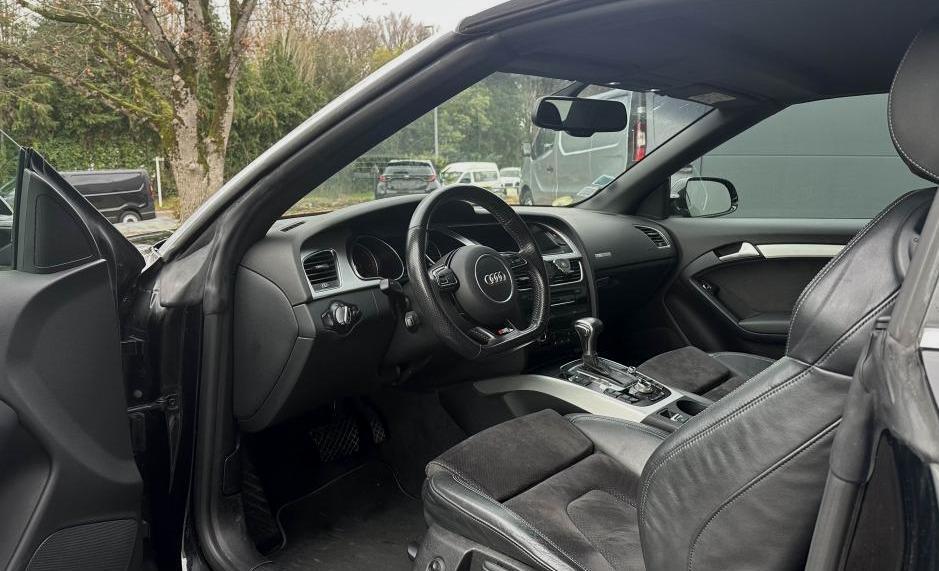 2 spots de lecture à l'avantAccoudoir central avant avec vide-poches et 2 prises 12 V dans la console centraleAirbags grand volume pour conducteur et passager avant avec détecteur de la position d'assise ; airbag adaptatif pour le conducteur et passager avantAirbags latéraux (airbag thorax et bassin à l'avant)Allume-cigare intégré dans le cendrier avantAntipatinage ASR pour une motricité optimale, empêche le patinage des roues motricesApplications décoratives en aluminium brossé matApproche-ceintures avant automatiqueAppuie-têtes, à l'avant et à l'arrière, réglables en hauteur à l'avantArceaux de sécurité actifs, système de protection à déclenchement automatique situé derrière les appuie-têtes arrièreAudi Music InterfaceAvertisseur deux tons avec commande au centre du volantBlocage électronique de différentiel EDS, aide au démarrage intervenant jusqu'à une vitesse d'environ 100 km/h, freinant automatiquement les roues motrices sur route glissante et inégalement adhérenteBoîte à gants verrouillableCapote entièrement automatique, en tissu isolant 3 couches, pouvant être activée jusqu'à 50 km/hCeintures de sécurité, automatiques à trois points pour les quatre places, contrôle de port de ceinture, couleur assortie à celle de l'habitacleCendrier dans la console centrale à l'avant et à l'arrièreCiel de capote en tissu, selon la couleur choisie, argent étoile, noir ou beige pashminaClimatisation automatique Confort Plus 3 zones à fonctionnalités étendues et affichage numériqueColonne de direction de sécurité, contient un système mécanique de déplacement avec fonction d'amortissement qui complète le potentiel de sécurité de la ceinture et de l'airbagContact d'allumage électronique ; clé de contact pouvant mémoriser différentes données d'entretienContrôle de pression des pneus ( TPMS )Contrôle électronique de stabilisation ESC, relie ABS, ASR et EDS à ses propres capteurs et compare les données de conduite avec les données de référenceCric dans le coffreDésactivation de l'airbag passager (désactive aussi l'airbag latéral passager)Détecteur de pluie et allumage automatique des projecteursDeux porte-gobelets intégrés à la console centraleDossier des sièges arrière rabattable séparément 50-50, avec déverrouillage à distance des dossiers depuis le coffreEclairage d’ambianceEclairage intérieur à extinction temporisée et contacteurs sur toutes les portièresEcrous antivolEncadrement de pare-brise en aluminiumÉtui à lunettes, dans le module d'éclairage intérieur avant, au-dessus du rétroviseur intérieurFilet coupe ventFonction Start/Stop : coupure et redémarrage automatiques du moteur en cas d'arrêt prolongé au point mort, désactivable par un bouton sur la console centraleFrein de stationnement électromécanique comprend la fonction de frein de stationnement à l'arrêtGPS PlusIndicateur d'usure des disques à l'avant, affichage sur le système d'information du conducteurIndicateur de rapport de vitesse dans le système d'information du conducteur : apporte assistance au conducteur dans le choix du rapport de vitesse adaptéIndicateur de température extérieure dans le système d'information du conducteur, en cas de températures inférieures à +5 °C, un cristal de glace apparaît sur l'afficheur, avertissant de la possibilité de verglasInstrumentation à éclairage réglable, tachymètre électronique avec compteur kilométrique totalisateur et journalier, compte-tours, horloge, indicateur de température du liquide de refroidissement et jauge de carburantLave-glace, deux vitesses, réglage d'intermittence sur 4 niveaux, commande de balayage coup par coup, lavage-balayage automatiqueLève-vitres avant et arrière électriques avec protection antipincement et fonction confort d'ouverture/fermeture par impulsionLimiteurs d'effort des ceintures de sécurité avantLogement de capote à configuration variableLunette arrière dégivrante avec minuterieMiroir de courtoisie éclairéOutillage de bord dans le coffrePack EclairagePack Extérieur S linePack RangementPhares antibrouillard intégrés dans le pare-chocsPommeau de levier de vitesse en cuir perforé, surpiqûres de soufflet de levier de vitesses argentPréparation ISOFIX pour sièges latéraux arrière et siège passager avantPréparation téléphone 2 W bi-bande (D et E), sans support pour adaptateur ni antenne de toit, commande sur volant multifonction, mains libres, interface BluetoothPrétensionneurs des ceintures de sécurité avantPrise de courant 12 volts, dans la garniture latérale droite du coffreQuatre oeilletons de fixation dans le coffre, pour maintenir les bagages et objets dans le coffre, points de suspension pour le filet mixteRangements dans la contre-porte à l'avant avec casier de rangement pour boissons, rangements à l'arrière sur les côtés du siège et dans les garnitures latérales arrièreRégulateur de vitesse électronique actif dès 30 km/hRéservoir avec protection contre les erreurs de ravitaillementRétroviseur intérieur jour/nuit automatique incluant une bande grise en haut du pare-briseRétroviseurs extérieurs avec clignotant latéral intégré à diodes, réglable électriquement, boîtiers dans la couleur de la carrosserie, miroir asphériqueRétroviseurs extérieurs et buses de lave-glace chauffantsRoue de secours temporaireSièges avant Sport incluant réglage de la longueur d'assise et appuis lombaires électriques sur 4 plans.Sortie d'échappement visible double, une double sortie à gaucheSystème acoustique d'aide au stationnement arrièreSystème audiophonique AudiSystème de freinage à double circuit en diagonale, système antiblocage ABS avec répartiteur de freinage EBV, avec assistant de freinage, servo-frein tandem, freins à disques avant et arrière, ventilés à l'avantTélécommande à fréquence radio pour le verrouillage centralisé, intégrée à la clé du véhiculeTriangle de pré-signalis