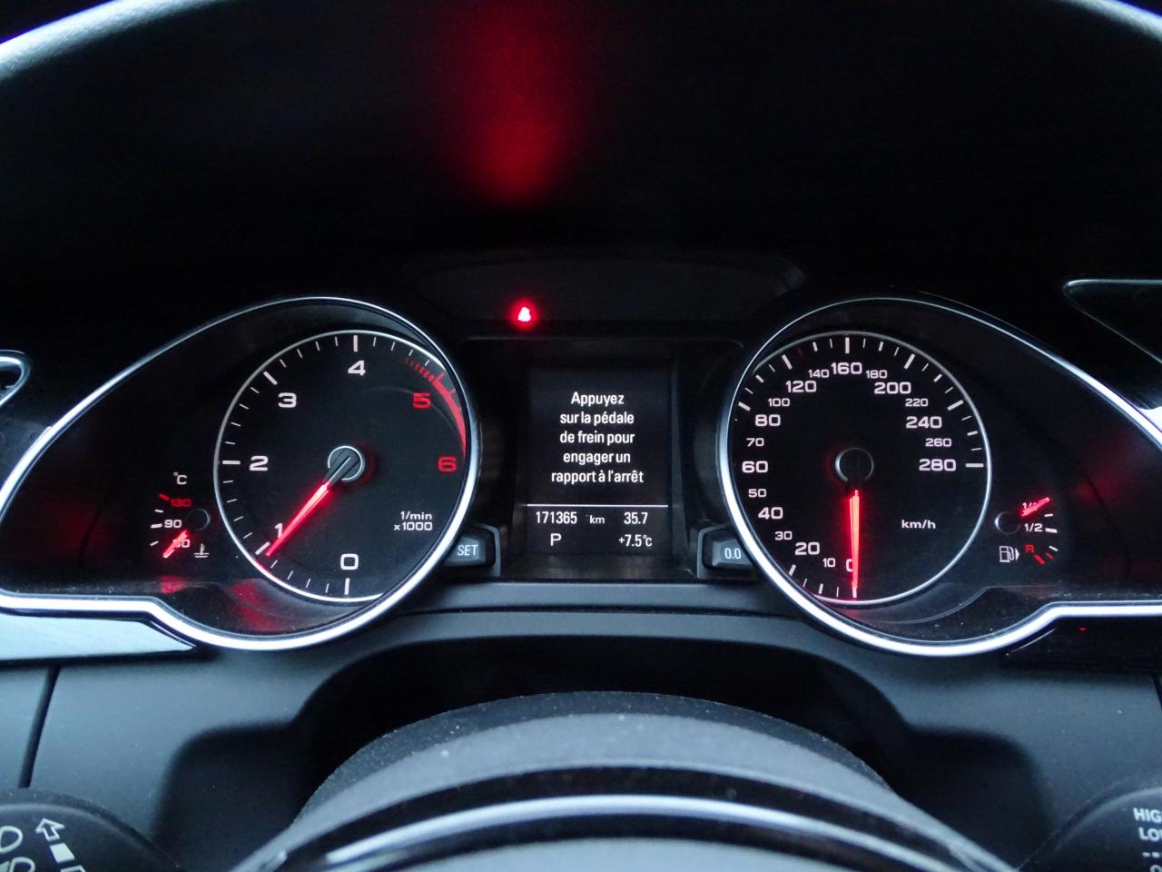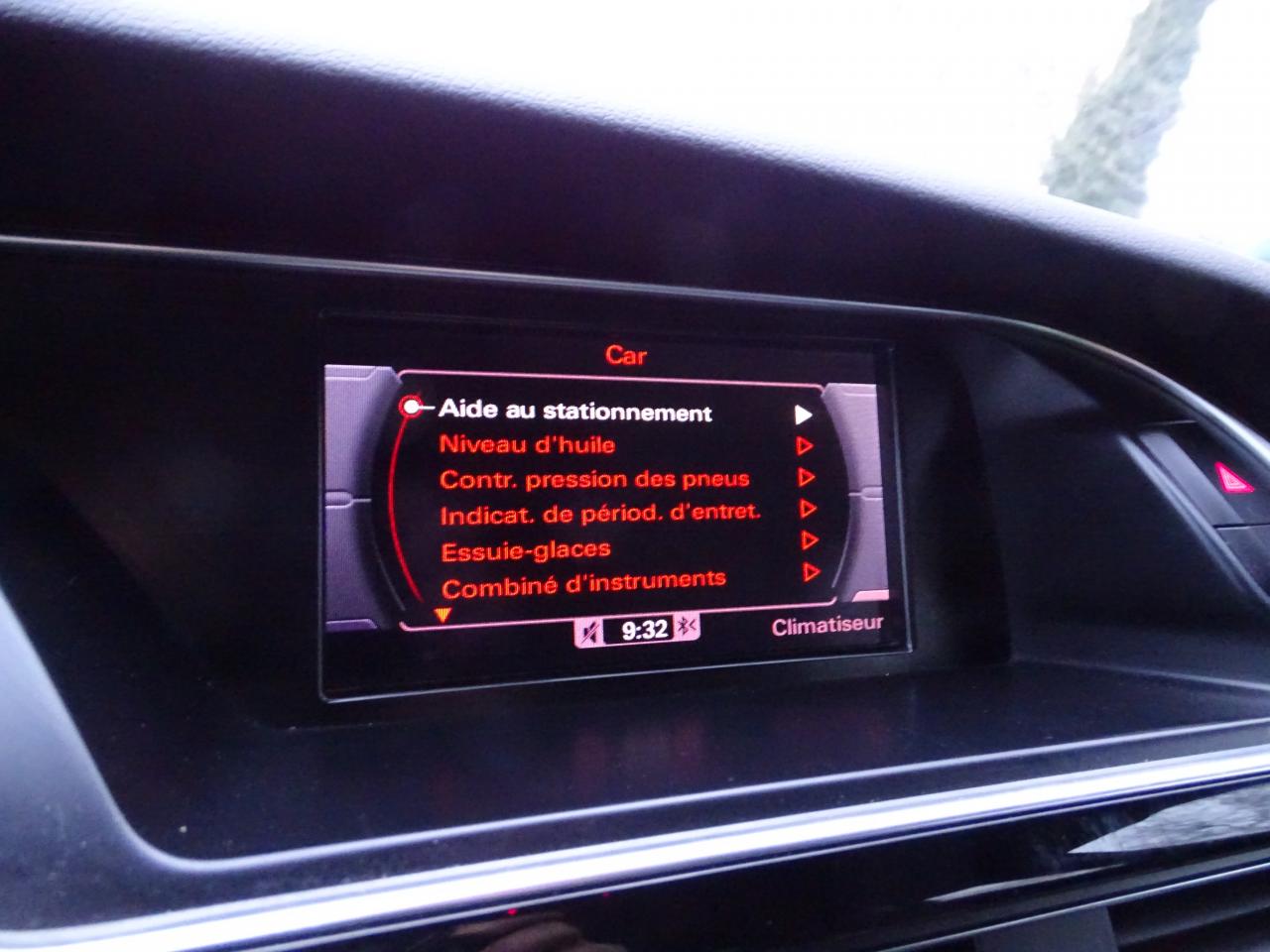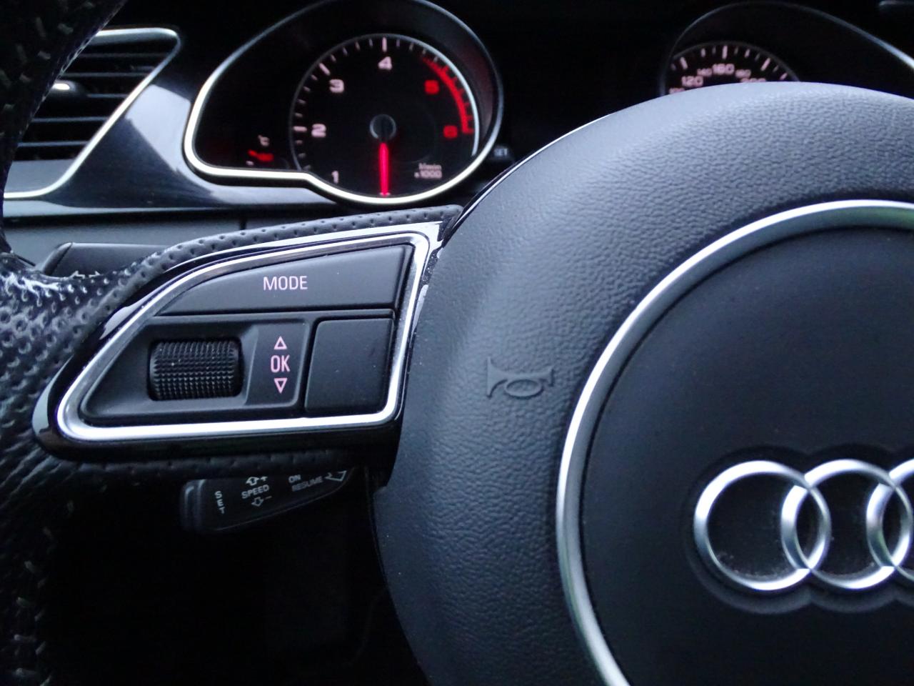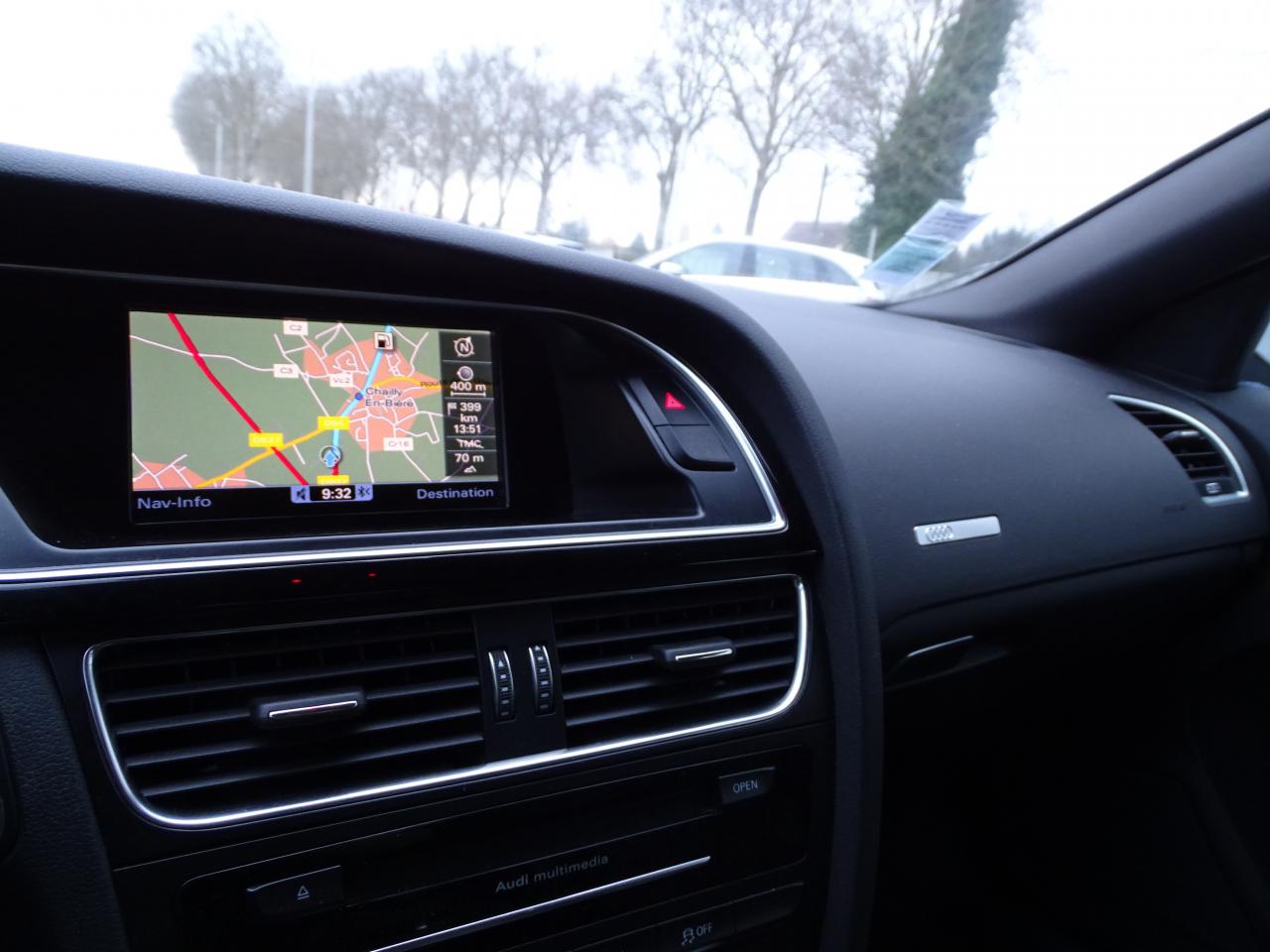 Accoudoir central avant avec vide-poches et 2 prises 12 V dans la console centraleÉtui à lunettes, dans le module d'éclairage intérieur avant, au-dessus du rétroviseur intérieurAirbags grand volume pour conducteur et passager avant avec détecteur de la position d'assise ; airbag adaptatif pour le conducteur et passager avantAirbags latérauxAllume-cigare intégré dans le cendrier avantAntipatinage ASR pour une motricité optimale, empêche le patinage des roues motricesApplications décoratives en aluminium brossé matAppuie-têtes réglables à l'avant et à l'arrièreAudi Music InterfaceAvertisseur deux tons avec commande au centre du volantBanquette arrière 3 placesBlocage électronique de différentiel EDS, aide au démarrage intervenant jusqu'à une vitesse d'environ 100 km/h, freinant automatiquement les roues motrices sur route glissante et inégalement adhérenteCalandre Singleframe avec lamelles horizontales noires brillantesCapot de coffre à déverrouillage par la télécommande ou par actionnement de la touche douce sur le capot du coffreCarrosserie galvaniséeCeintures de sécurité, automatiques à 3 points pour les 5 places, contrôle de port de ceinture, couleur assortie à celle de l'habitacleCendrier dans la console centrale à l'avant et à l'arrièreChâssis DynamiqueChâssis Sport avec amortissement plus ferme et suspensions renforcéesCiel de pavillon en tissu noirCiel de pavillon en tissu, selon la couleur choisie, argent lunaire, noir ou beige pashminaClimatisation automatique Confort Plus 3 zones à fonctionnalités étendues et affichage numériqueColonne de direction de sécuritéContact d'allumage électronique ; clé de contact pouvant mémoriser différentes données d'entretienContrôle électronique de stabilisation ESC, relie ABS, ASR et EDS à ses propres capteursContrôle de pression des pneus, vérifie durant la marche la pression de chacune des roues en serviceCric dans le coffreDésactivation de l'airbag passager (désactive aussi l'airbag latéral passager)Détecteur de pluie et allumage automatique des projecteursDirection asservie à la vitesse servotronicDossier des sièges arrière rabattable séparément 2/3 - 1/3, avec déverrouillage à distance des dossiers depuis le coffreEclairage intérieur à extinction temporisée et contacteurs sur toutes les portières ; éclairage coffre, conducteur passager avant et arrière, deux spots de lecture à l'avant, éclairage intérieur de l'arrière, miroir de cEcrous antivolEntourages de vitre en aluminium, revêtement noir brillant sur les montants de pavillon centraux et les triangles des portières arrièreFonction Start/StopFrein de stationnement electromécaniqueGPS PlusIndicateur d'usure des disques à l'avantIndicateur de température extérieure dans le système d'information du conducteurInstrumentation à éclairage réglable, tachymètre électronique avec compteur kilométrique totalisateur et journalier, compte-tours, horloge, indicateur de température du liquide de refroidissement et jauge de carburantJantes Audi Sport en aluminium coulé style 5 branches « Rotor », finition titane, polies, 9 J x 19”, avec pneus 255/35 R19Lève-vitres électriques à l'avant et à l'arrière avec protection antipincement et fonction ouverture/fermeture Confort par impulsionLave-glace, deux vitesses, réglage d'intermittence sur 4 niveaux, commande de balayage coup par coup, lavage-balayage automatiqueLimiteurs d'effort des ceintures de sécurité avantLunette arrière dégivrante avec minuterieOrdinateur de bord couleur et système de contrôle AutocheckOutillage de bord dans le coffrePack EclairagePack Extérieur S lineParking System : système acoustique d'aide au stationnement arrièrePhares antibrouillard intégrés dans le pare-chocsPoignées de maintien, amorties, rabattables dans les deux sens, dans le ciel de pavillonPoignées de portières extérieures laquées dans la couleur de carrosserie, poignées cintrées agréables à utiliserPommeau de levier de vitesses en cuir perforé, surpiqûres de soufflet de levier de vitesses argentPré-équipement attelagePréparation ISOFIX pour sièges latéraux arrière et siège passager avantPréparation téléphone 2 W bi-bande (D et E), sans support pour adaptateur ni antenne de toit, commande sur volant multifonction, mains libres, interface BluetoothPrétensionneurs des ceintures de sécurité avantProtection antidémarrage électronique, intégrée à la gestion du moteur, activation automatique par la clé du véhiculeQuatre oeilletons de fixation, pour maintenir les bagages et objets dans le coffre, points de suspension pour le filet mixteRégulateur de vitesse électronique actif dès 30 km/h. Inclut fonction de freinage. Affichage de la vitesse paramétrée sur l'écran de l'ordinateur de bordRéservoir avec protection contre les erreurs de ravitaillementRétroviseur intérieur jour/nuit automatique incluant une bande grise en haut du pare-briseRétroviseurs extérieurs avec clignotant latéral intégré à diodes, réglable électriquement, boîtiers dans la couleur de la carrosserie, miroir asphériqueRétroviseurs extérieurs et buses de lave-glace chauffantsRangements dans les contre-portes à l'avant avec casier de rangement pour boissons, rangements à l'arrière sur les côtés du siège et dans les garnitures latérales arrièreSellerie mixte cuir/Alcantara perforé Sprint avec logo S line sur le dossier des sièges avantSièges avant réglables manuellement en hauteur et en profondeurSièges avant Sport incluant réglage de la longueur d'assise et appuis lombaires électriques sur 4 plans.Sideguard, système d'airbags de tête grand formatSortie d'échappement visible double, une double sortie à gaucheStyle aluminium, dans l'habitacle sur les commutateurs d'éclairage, la commande de la climatisation, la commande MMI, les diffuseurs d'air et autour du soufflet et du levier de vitesseSystème audiophonique Audi : amplificateur