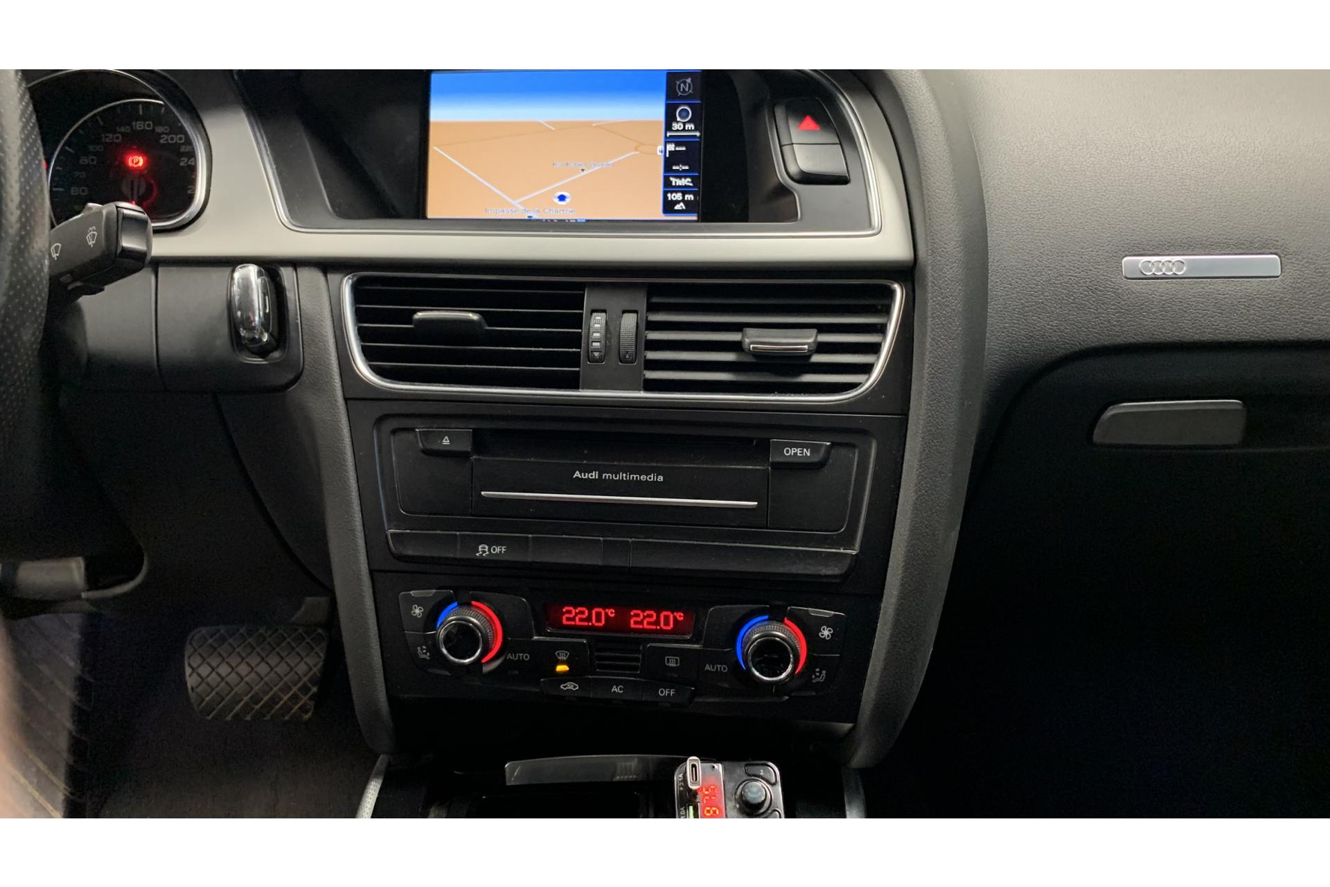 Climatisation automatique, GPS Advanced (système de navigation MMI 3e génération), projecteurs Xenon avec réglage automatique du site, projecteurs antibrouillard, pack éclairage (éclairages de seuils et lampes de lecture), écran 6,5 pouces pour radio et menu véhicule, sellerie cuir Milano, sièges avant électriques, volant sport cuir 3 branches, Parking System (aide au stationnement arrière), régulateur de vitesse, rétroviseur intérieur électrochrome, rétroviseurs extérieurs dégivrants et escamotables avec buses chauffantes, préparation téléphone, protection antidémarrage électronique, accoudoir central avant avec prises 12 V, système audiophonique Audi, verrouillage centralisé avec télécommande et fonction Autolock.