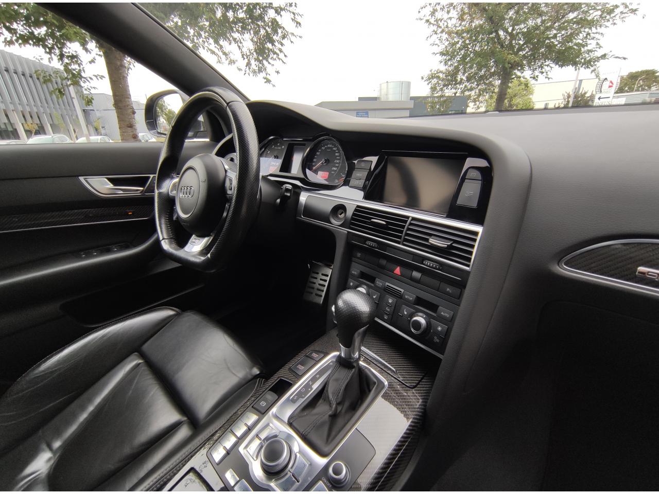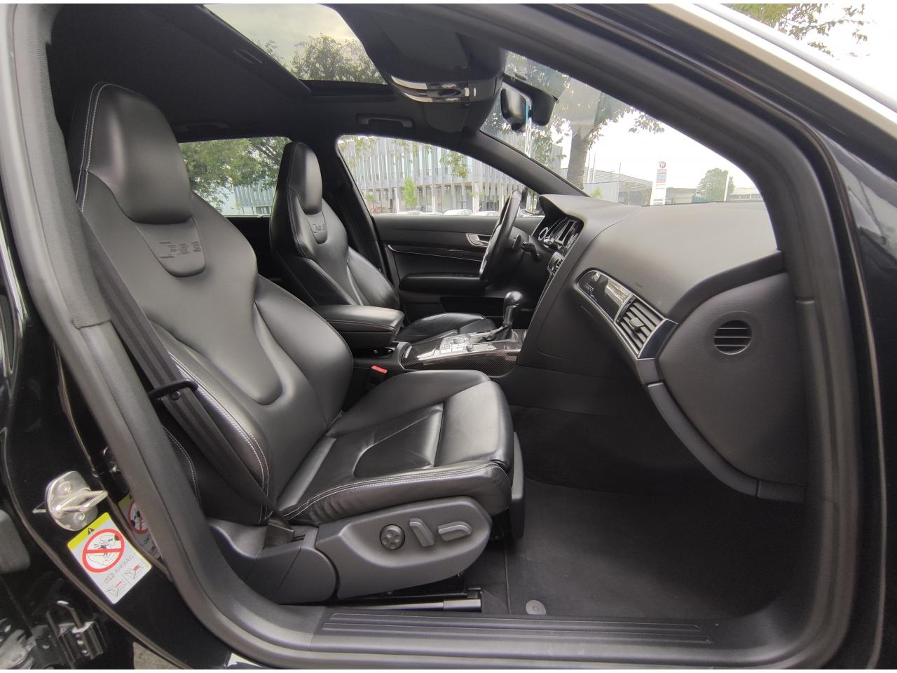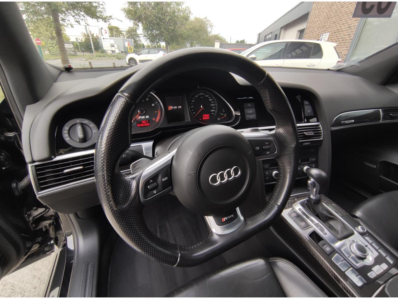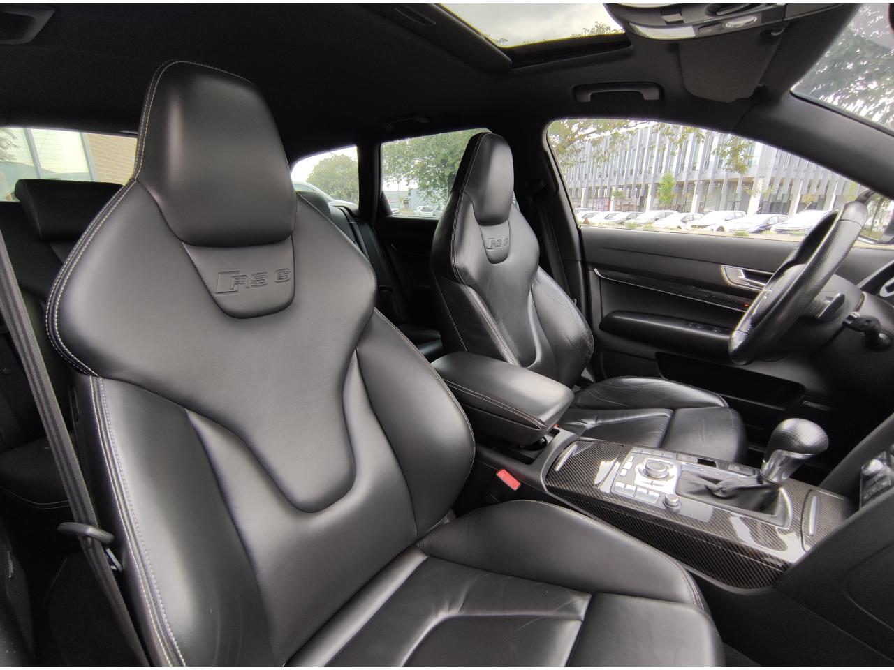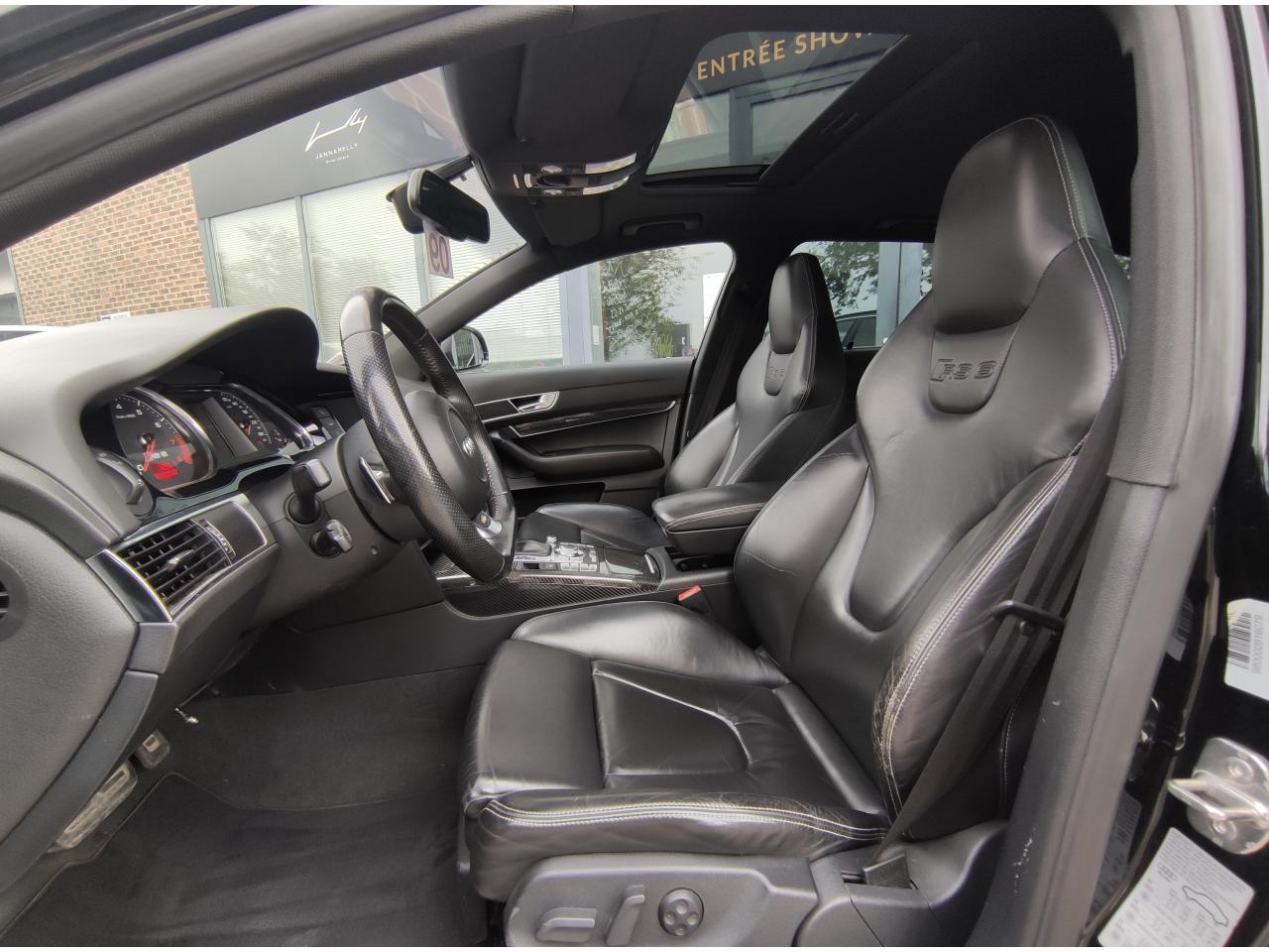 3ème feu stop arrièreAccoudoir central arrière intégré au dossier de banquette arrièreAccoudoir central avant rabattable, en une partie, avec vide-pochesAiles avant et arrière élargiesAirbags grand volume pour le conducteur et le passager avantAlarme antivol périmétrique, volumétrique et antisoulèvementAntipatinage ASR : empêche le patinage des roues motrices ; assure une motricité optimaleAudi Parking System Advanced avec caméra de reculBas de caisse élargi style RSBecquet de pavillon dans la couleur de la carrosserieBlocage électronique de différentiel (EDS)BOSE Surround Sound SystemBuses de lave-glace chauffantesCalandre spécifique en nid d'abeille avec emblème RS 6Capteur de pluieCeintures de sécurité trois points à enrouleur à toutes les placesChâssis : transmission quattro® à répartition asymétrique et dynamique de couple (40 % avant/60 % arrière en paramétrage de base)Châssis Sport spécifique RS 6 avec Dynamic Ride Control (DRC)Chauffage pour sièges conducteur et passager avant, ainsi que pour les places arrièreCiel de pavillon noirClimatisation automatique Confort PlusCompteurs spécifiques RS 6Couvre-bagages manoeuvrable d'une seule mainDéclenchement automatique des feux de detresse en cas de freinage d'urgenceDétecteur de luminosité et de pluie + fonction Coming Home/Leaving HomeDiffuseur arrièreDirection assistée ServotronicDouble vérin pneumatique d'ouverture de hayon avec blocage intermédiaireDouble vitrage : meilleure isolation phonique et protection anti-effraction complémentaireEclairage au niveau des pieds à l'avant et dans le coffreEssuie-glace deux vitesses avec commande automatiqueFeux de jour avant à diodes électroluminescentes (LED)Finition style aluminium dans l'habitacleFrein de stationnement electromécaniqueGestionnaire de batterie : optimise l'alimentation électrique du véhicule durant la marche et à l'arrêtHabillage de porte-instruments en piano laqué noirInserts carbone sur contre-portes, tableau de bord et console centraleInterface multimédia MMI avec navigation DVD EuropeJantes en aluminium coulé style 10 branches, 9 J x 19”, avec pneus 255/40 R 19, écrous antivolMMI : fond d'écran RS 6, écran couleur 7”Ordinateur de bord couleur et contrôle AutocheckPack BrillancePack EclairagePack RangementPare-chocs avant et arrière spécifique type RSPare-soleil rabattables et pivotants, côtés conducteur et passager avant, avec miroir de courtoisie occultablePédales en aluminiumPeintures métallisées et nacréesPoignées de portière affleurantes dans la couleur de carrosserie, avec inserts style aluminiumPommeau de levier de vitesses spécifique mixte cuir perforé et aluminiumPréparation pour téléphone 2 W BluetoothPrise 12V dans le coffreProgramme de stabilité électronique (ESP)Projecteurs au Xénon, lave phares et réglage de site des phares automatiqueRégulateur de vitesseRepose-piedRéservoir de carburant dans une zone protégée ; volume de 80 litresSécurité enfant sur les portières arrière et les vitres électriques arrièreSellerie mixte cuir Nappa perlé/Alcantara, contreportes garnies d' AlcantaraSeuils de porte avec emblème RS 6Sièges avant à réglage électriques , y compris appuis lombaires réglables sur 4 plansSièges avant Sport spécifiques RS 6 avec dossier et appuie-tête solidairesSignal sonore pour oubli d'extinction des feuxSorties d'échappement : 2 sorties ovales intégréesSystème de contrôle et de mesure de la pression et de la température des pneumatiquesTableau de bord capitonnéTire Mobility System : compresseur et produit de colmatage en cas de crevaisonTraitement protecteur permanent sous le plancher et dans les passages de rouesTrappe à skisTrousse de secoursVérins pneumatiques sur le capot moteur et double pour le capot de coffreVide-poches sur les contre-portes avant et arrière, ainsi que sur la console centraleVitres athermiques teintées vertesVolant Sport RS en cuir multifonction 3 branches avec emblème RS 6, avec section plate et surpiqûres contrastées