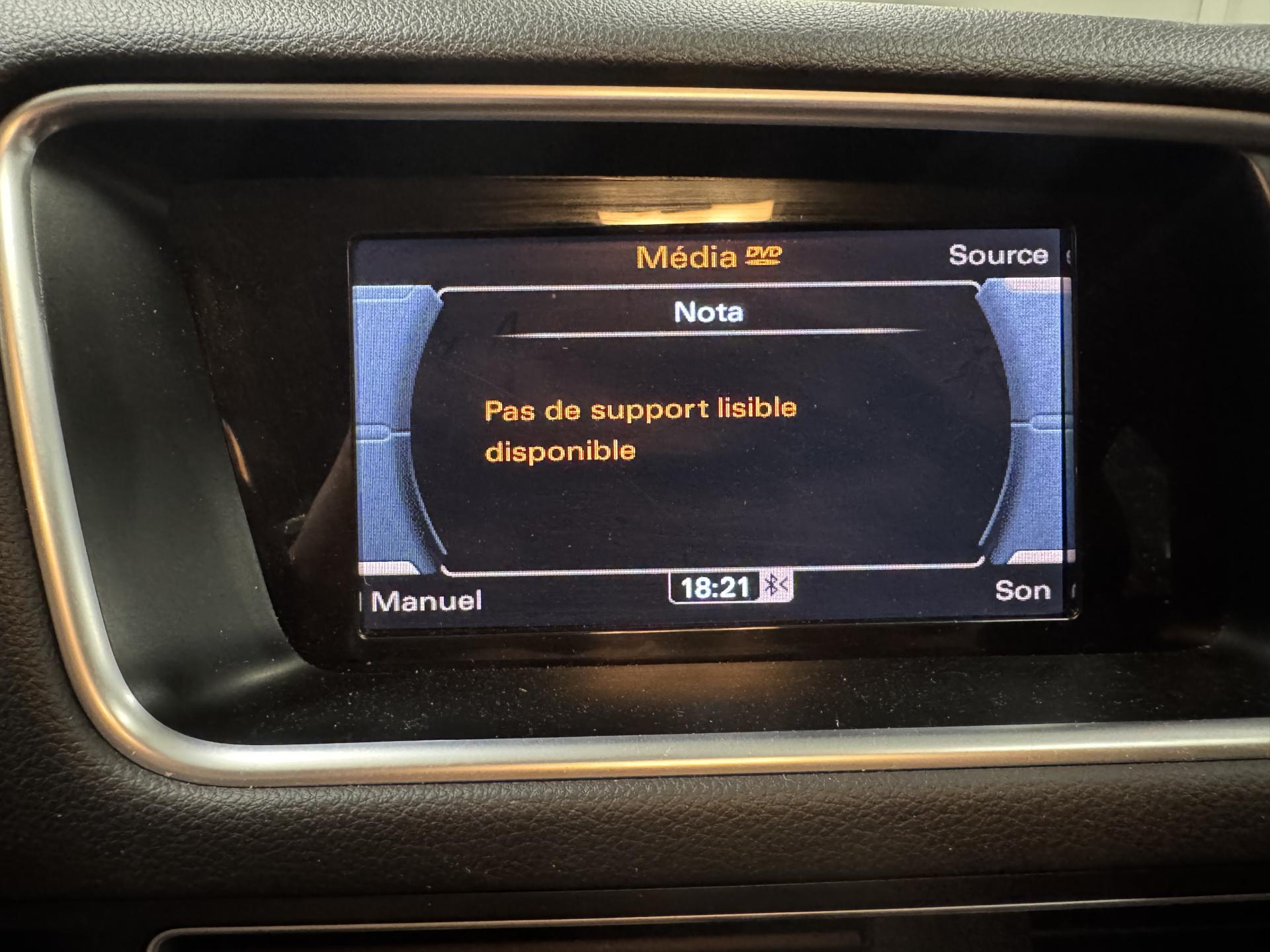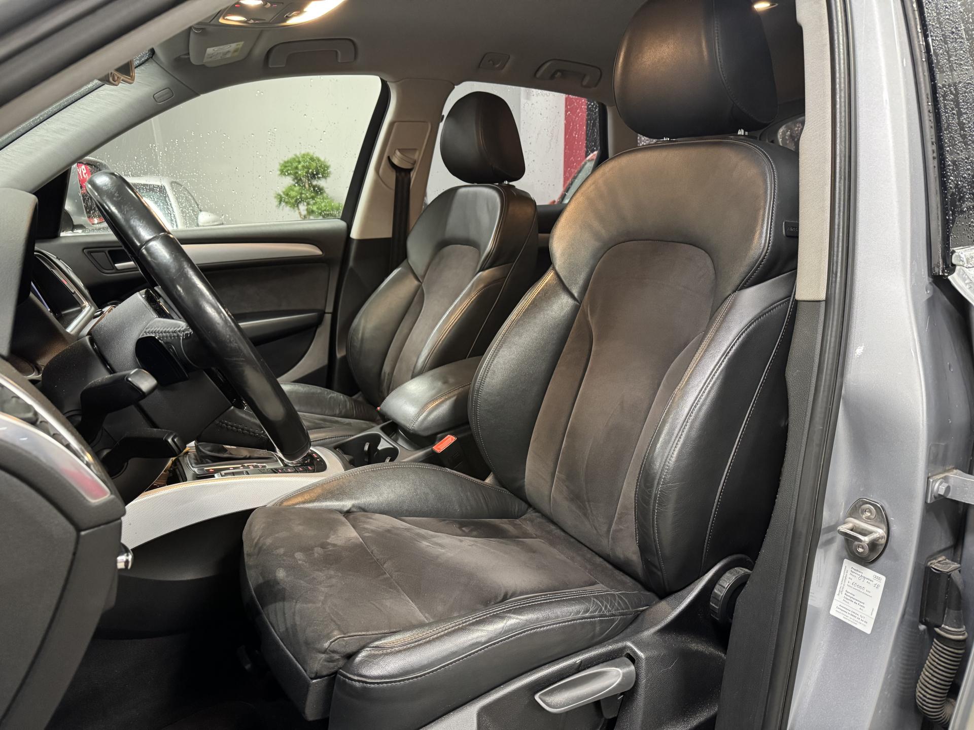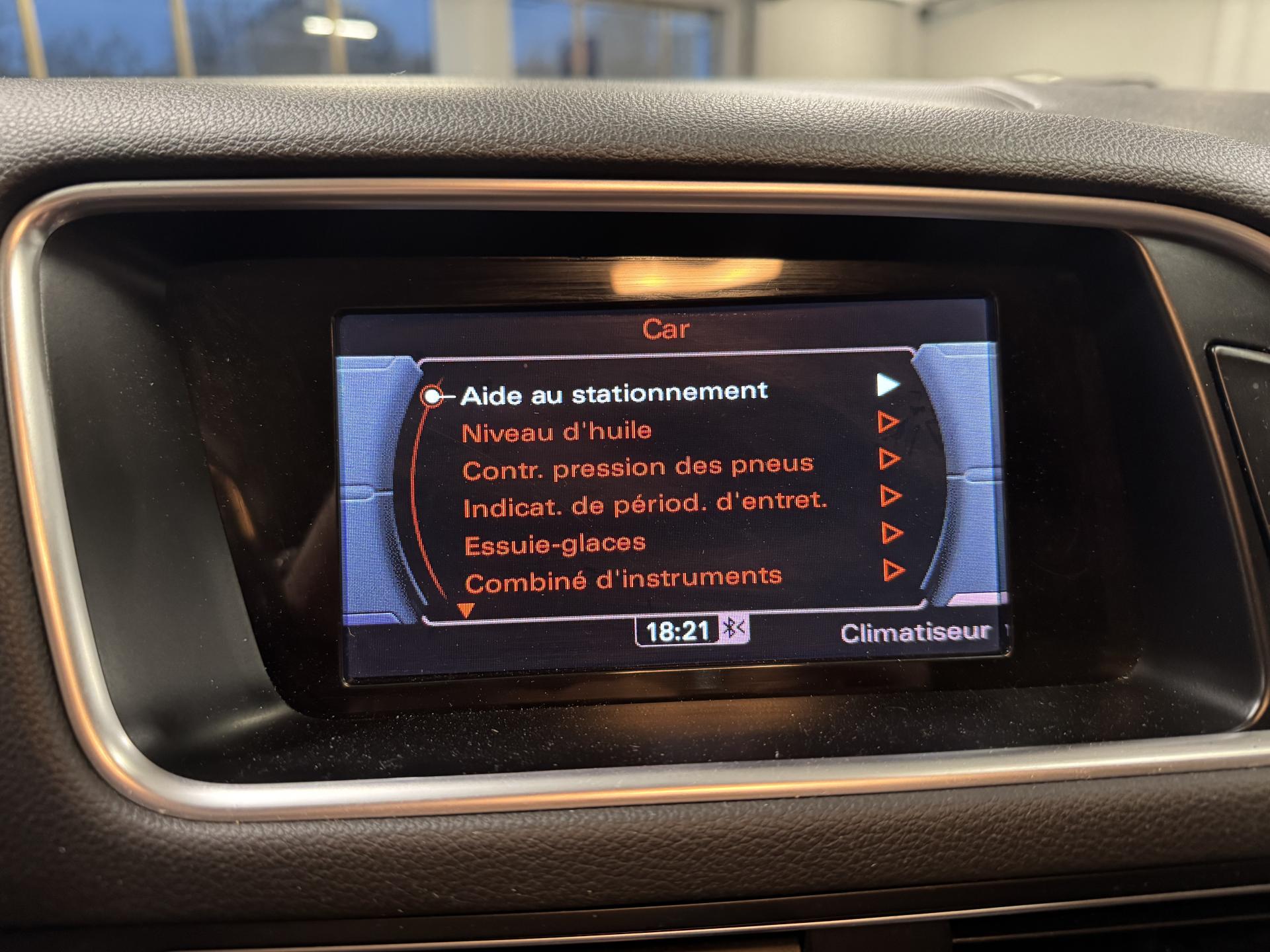Accoudoir central à l'avant, pour conducteur et passager avant, coulissant en longueur de 65 mm, inclinaison réglable rabattable, avec vide-poches sous l'accoudoir central, incluant deux porte-boissons et prise de 12 V dans la console centraleÉtui à lunettes, dans le module d'éclairage intérieur avant, au-dessus du rétroviseur intérieurAccoudoir central dans le dossier des sièges arrière, rabattableAirbag grand volume conducteur et le passager avant, détection de la position du siège, airbag adaptatif conducteur et passager avantAirbags latéraux (airbag thorax et bassin à l'avant)Anti-démarrage électronique intégré à la commande du moteur ; activation automatique par la clé du véhiculeAntipatinage électronique ASR : pour une bonne traction, empêche le patinage des roues motricesApplications en aluminium dimension argent sur tableau de bord, contre-portes et console centraleAppuie-têtes, réglables à l'avant et à l'arrièreAssistance au freinage d'urgenceAudi BackguardAutoradio Concert lecteur CD MP3, carte SD MP3, 8 HP et prise AUX-INAvertisseur deux tons sur le moyeu du volantBanquette arrière rabattable 60/40, déverrouillage à distance des dossiers via un levier dans la garniture latérale du coffreBecquet de pavillonCarrosserie galvaniséeCeintures de sécurité : ceintures trois points à enrouleur pour tous les sièges, avec contrôle du port à l'avant, assorties à la couleur de l'habitacleCendrier dans la console centrale à l'avant et à l'arrière, allume-cigare à l'avantChâssis DynamiqueCiel de pavillon en tissu : couleur gris lumière ou beige lin selon la couleur choisie pour la garniture intérieureClimatisation automatique Confort PlusColonne de direction de sécurité : complète le potentiel de protection de la ceinture de sécurité et de l'airbagConsole centrale, surélevée, avec compartiment de rangement et volet roulantContact d'allumage électronique, clé de contact mémorisant différentes données d'entretienContrôle électronique de stabilisation ESC 8.1 avec détection de barres de toitContrôle de pression des pneus ( TPMS )Détecteur de pluie et de luminosité incluant rétroviseur intérieur jour/nuit automatiqueDéverrouillage de coffre par touche douce : déverrouillage avec assistance électriqueDirection assistée électromécanique, direction à crémaillère sans entretien avec asistance asservie à la vitesseEclairage intérieur, à temporisation avec contacteur sur toutes les portièresEcran 6,5 pouces couleur intégré au tableau de bord, pour l'affichage des fonctions de la radio, de la climatisation et des fonctions du menu du véhicule, ainsi que de l'heureEcran central avec affichage monochromeEcrous de roues antivol ; ne s'enlèvent qu'au moyen de l'adaptateur fourniEssuie-glace arrière avec déclenchement automatique en marche arrièreEssuie-glace deux vitesses : réglage d'intermittence sur 4 niveaux, commande de balayage coup par coup, lavage-balayage automatiqueFeux arrière, rouges, avec feux de recul blancs, feux arrière de brouillard intégrés, avec capot de coffre ouvert : fonction feux arrière dans le bandeau d'éclairage du pare-chocsFilet de séparation, vertical, amovibleFrein de stationnement électromécanique : comprend la fonction de frein de secours sur les quatre roues durant la marcheHill Descent Control (HDC) : contrôle de descente qui permet de maintenir une vitesse stabilisée entre 9 km/h et 30 km/h. Possibilité d'activer le système jusqu'à 60 km/hIdentification du modèle à l'arrière, inscription “quattro” à l'arrière, sur la calandre et sur le tableau de bord côté passager avant ; sur demande sans identification du modèleIndicateur de rapport de vitesse dans le système d'information du conducteur : apporte assistance au conducteur dans le choix du rapport de vitesse adaptéIndication de l'usure des garnitures de frein à l'avant ; affichage sur l'écran centralInstrumentation, avec éclairage réglableInterface BluetoothJantes en aluminium forgé style 7 branches 8 J X 17”, pneus 235/65 R17 104WLève-vitres électriques à l'avant et à l'arrière avec protection antipincement et fonction ouverture/fermeture Confort par impulsionLimiteurs d'effort sur les ceintures de sécurité avantLunette arrière dégivrante avec minuterieMiroir de courtoisieMoulures de seuils de portes en plastiqueOEilletons de fixation, quatre oeilletons dans le coffre pour arrimer le chargementOrdinateur de bord monochrome et système de contrôle Autocheck, incluant programme EfficiencyOutillage de bord dans le coffrePack Aluminium extérieurPare-chocs, laqués dans la couleur de carrosserie, bas de pare-chocs avant et arrière ainsi que bandeaux de portières en bas, noir, matPare-soleil, rabattables et pivotants, côté conducteur et passager avantParking System arrièrePhares antibrouillard intégrés dans le bouclier avantPhares halogènes à surfaces libres sous vitre transparentePoignées de maintien avec mécanisme amortisseur : quatre poignées encastrées dans le ciel de pavillonPoignées de portes couleur carrosseriePréparation pour crochet d'attelagePréparation pour siège enfant ISOFIX pour sièges latéraux arrièrePrétensionneurs des ceintures de sécurité avantQuattro, transmission intégrale permanente avec répartition asymétrique et dynamique de couple, différentiel central autobloquant, blocage électronique de différentiel EDS par intervention sur les freins des roues motricesRégulateur de vitesseRéservoir avec protection contre les erreurs de ravitaillementRétroviseurs extérieurs : avec clignotants à diodes intégrés, réglables et rabattable électriquement, dégivrants avec coques laquées dans la couleur de carrosserie, miroir asphérique à gaucheRétroviseurs extérieurs dégivrants et rabattables électriquementRampes de pavillon en aluminium poli incluant barres de toit transversalesSellerie en tissu HavaneSièges avant avec réglage manuel de la haut