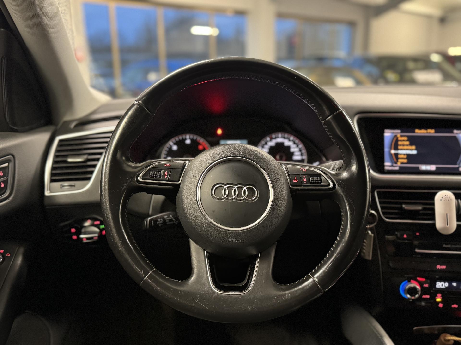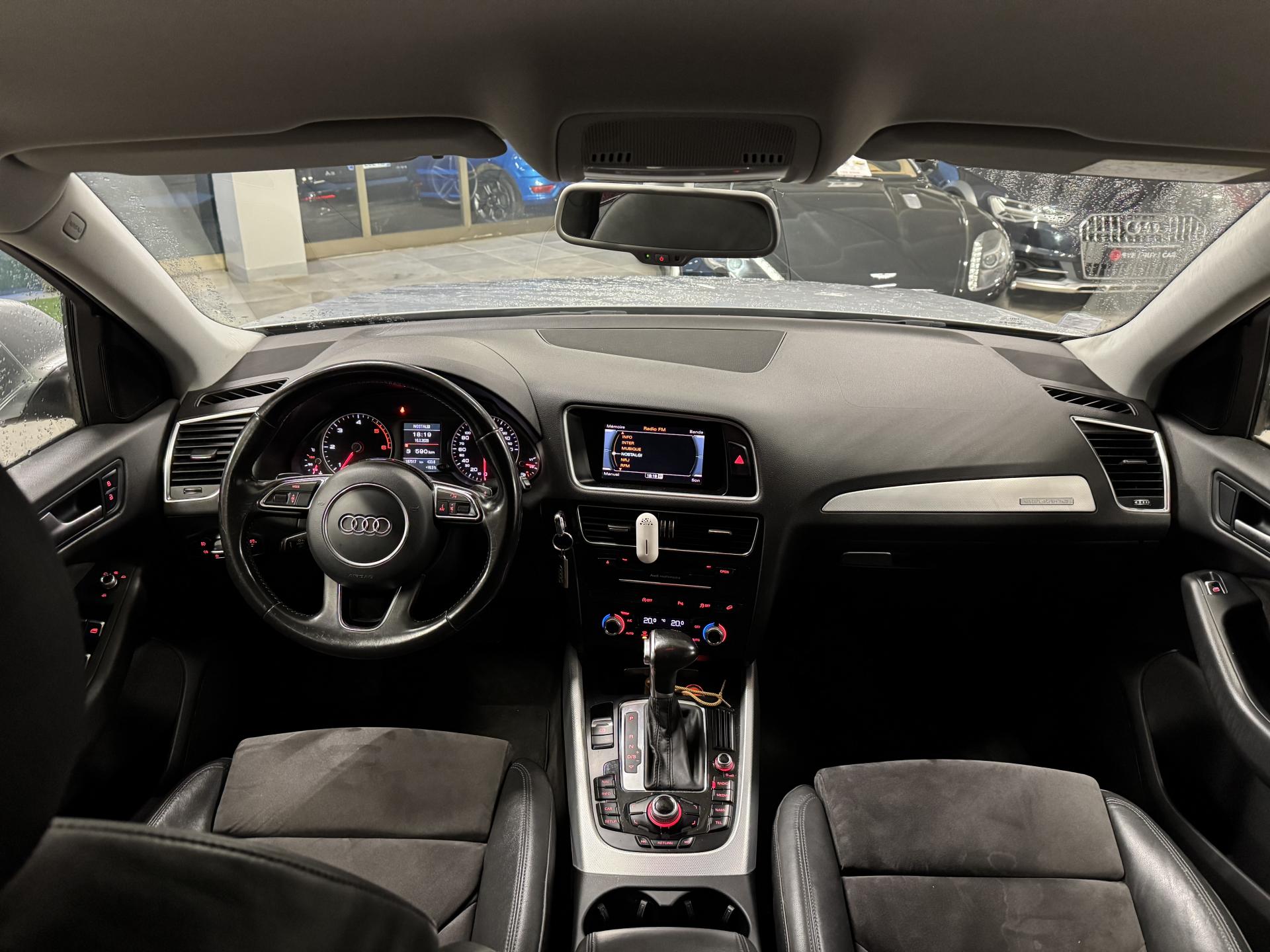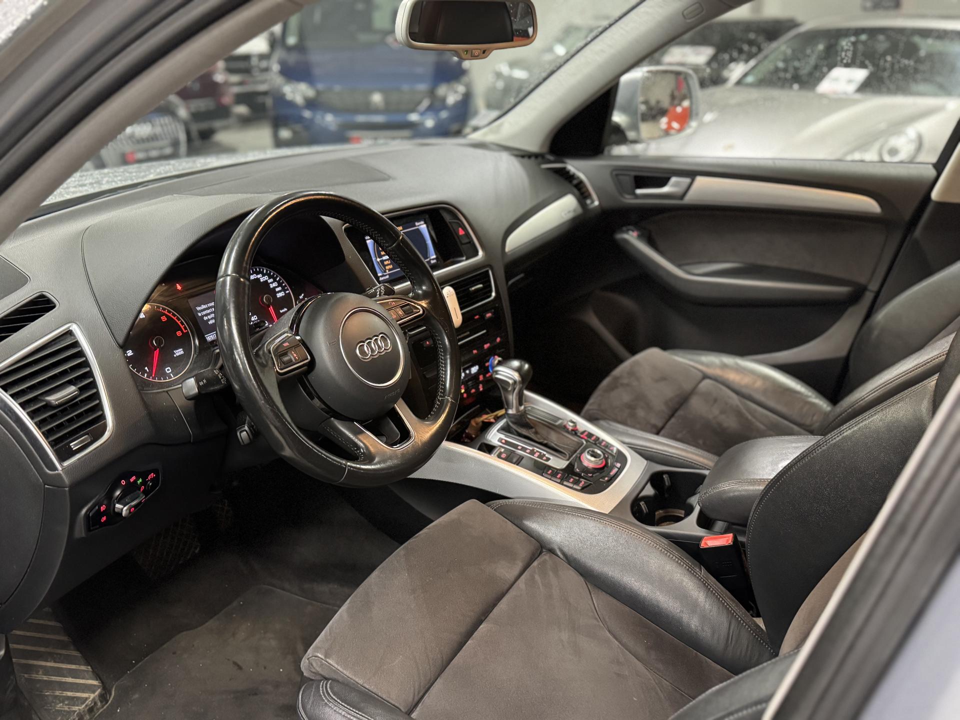 Accoudoir central à l'avant, pour conducteur et passager avant, coulissant en longueur de 65 mm, inclinaison réglable rabattable, avec vide-poches sous l'accoudoir central, incluant deux porte-boissons et prise de 12 V dans la console centraleÉtui à lunettes, dans le module d'éclairage intérieur avant, au-dessus du rétroviseur intérieurAccoudoir central dans le dossier des sièges arrière, rabattableAirbag grand volume conducteur et le passager avant, détection de la position du siège, airbag adaptatif conducteur et passager avantAirbags latéraux (airbag thorax et bassin à l'avant)Anti-démarrage électronique intégré à la commande du moteur ; activation automatique par la clé du véhiculeAntipatinage électronique ASR : pour une bonne traction, empêche le patinage des roues motricesApplications en aluminium dimension argent sur tableau de bord, contre-portes et console centraleAppuie-têtes, réglables à l'avant et à l'arrièreAssistance au freinage d'urgenceAudi BackguardAutoradio Concert lecteur CD MP3, carte SD MP3, 8 HP et prise AUX-INAvertisseur deux tons sur le moyeu du volantBanquette arrière rabattable 60/40, déverrouillage à distance des dossiers via un levier dans la garniture latérale du coffreBecquet de pavillonCarrosserie galvaniséeCeintures de sécurité : ceintures trois points à enrouleur pour tous les sièges, avec contrôle du port à l'avant, assorties à la couleur de l'habitacleCendrier dans la console centrale à l'avant et à l'arrière, allume-cigare à l'avantChâssis DynamiqueCiel de pavillon en tissu : couleur gris lumière ou beige lin selon la couleur choisie pour la garniture intérieureClimatisation automatique Confort PlusColonne de direction de sécurité : complète le potentiel de protection de la ceinture de sécurité et de l'airbagConsole centrale, surélevée, avec compartiment de rangement et volet roulantContact d'allumage électronique, clé de contact mémorisant différentes données d'entretienContrôle électronique de stabilisation ESC 8.1 avec détection de barres de toitContrôle de pression des pneus ( TPMS )Détecteur de pluie et de luminosité incluant rétroviseur intérieur jour/nuit automatiqueDéverrouillage de coffre par touche douce : déverrouillage avec assistance électriqueDirection assistée électromécanique, direction à crémaillère sans entretien avec asistance asservie à la vitesseEclairage intérieur, à temporisation avec contacteur sur toutes les portièresEcran 6,5 pouces couleur intégré au tableau de bord, pour l'affichage des fonctions de la radio, de la climatisation et des fonctions du menu du véhicule, ainsi que de l'heureEcran central avec affichage monochromeEcrous de roues antivol ; ne s'enlèvent qu'au moyen de l'adaptateur fourniEssuie-glace arrière avec déclenchement automatique en marche arrièreEssuie-glace deux vitesses : réglage d'intermittence sur 4 niveaux, commande de balayage coup par coup, lavage-balayage automatiqueFeux arrière, rouges, avec feux de recul blancs, feux arrière de brouillard intégrés, avec capot de coffre ouvert : fonction feux arrière dans le bandeau d'éclairage du pare-chocsFilet de séparation, vertical, amovibleFrein de stationnement électromécanique : comprend la fonction de frein de secours sur les quatre roues durant la marcheHill Descent Control (HDC) : contrôle de descente qui permet de maintenir une vitesse stabilisée entre 9 km/h et 30 km/h. Possibilité d'activer le système jusqu'à 60 km/hIdentification du modèle à l'arrière, inscription “quattro” à l'arrière, sur la calandre et sur le tableau de bord côté passager avant ; sur demande sans identification du modèleIndicateur de rapport de vitesse dans le système d'information du conducteur : apporte assistance au conducteur dans le choix du rapport de vitesse adaptéIndication de l'usure des garnitures de frein à l'avant ; affichage sur l'écran centralInstrumentation, avec éclairage réglableInterface BluetoothJantes en aluminium forgé style 7 branches 8 J X 17”, pneus 235/65 R17 104WLève-vitres électriques à l'avant et à l'arrière avec protection antipincement et fonction ouverture/fermeture Confort par impulsionLimiteurs d'effort sur les ceintures de sécurité avantLunette arrière dégivrante avec minuterieMiroir de courtoisieMoulures de seuils de portes en plastiqueOEilletons de fixation, quatre oeilletons dans le coffre pour arrimer le chargementOrdinateur de bord monochrome et système de contrôle Autocheck, incluant programme EfficiencyOutillage de bord dans le coffrePack Aluminium extérieurPare-chocs, laqués dans la couleur de carrosserie, bas de pare-chocs avant et arrière ainsi que bandeaux de portières en bas, noir, matPare-soleil, rabattables et pivotants, côté conducteur et passager avantParking System arrièrePhares antibrouillard intégrés dans le bouclier avantPhares halogènes à surfaces libres sous vitre transparentePoignées de maintien avec mécanisme amortisseur : quatre poignées encastrées dans le ciel de pavillonPoignées de portes couleur carrosseriePréparation pour crochet d'attelagePréparation pour siège enfant ISOFIX pour sièges latéraux arrièrePrétensionneurs des ceintures de sécurité avantQuattro, transmission intégrale permanente avec répartition asymétrique et dynamique de couple, différentiel central autobloquant, blocage électronique de différentiel EDS par intervention sur les freins des roues motricesRégulateur de vitesseRéservoir avec protection contre les erreurs de ravitaillementRétroviseurs extérieurs : avec clignotants à diodes intégrés, réglables et rabattable électriquement, dégivrants avec coques laquées dans la couleur de carrosserie, miroir asphérique à gaucheRétroviseurs extérieurs dégivrants et rabattables électriquementRampes de pavillon en aluminium poli incluant barres de toit transversalesSellerie en tissu HavaneSièges avant avec réglage manuel de la haut
