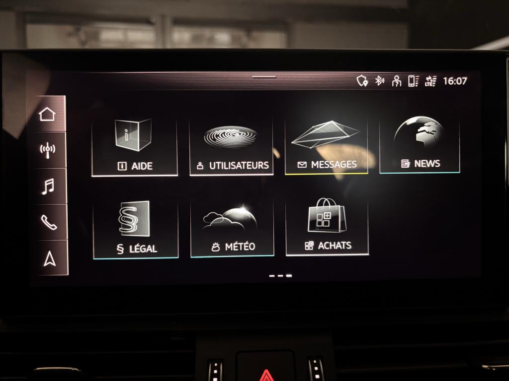 Cette version haut de gamme S-Line offre un look sportif et élégant : kit carrosserie spécifique, Virtual Cockpit, navigation MMI Touch, Carplay et Android Auto, caméra de recul et projecteurs LED.