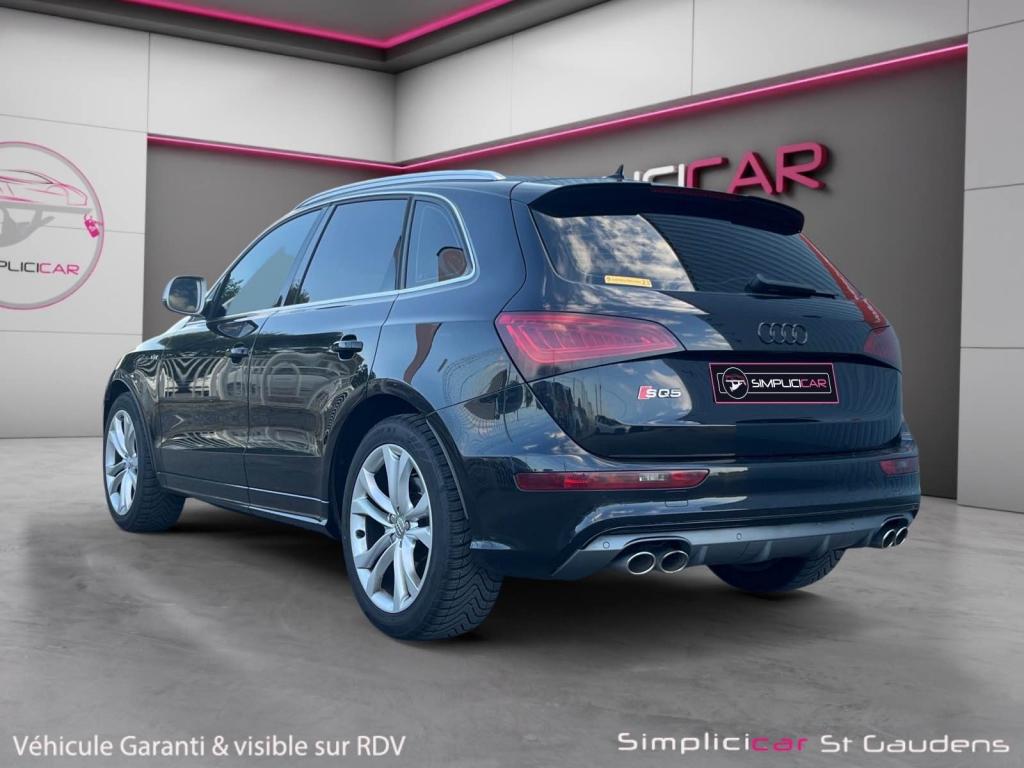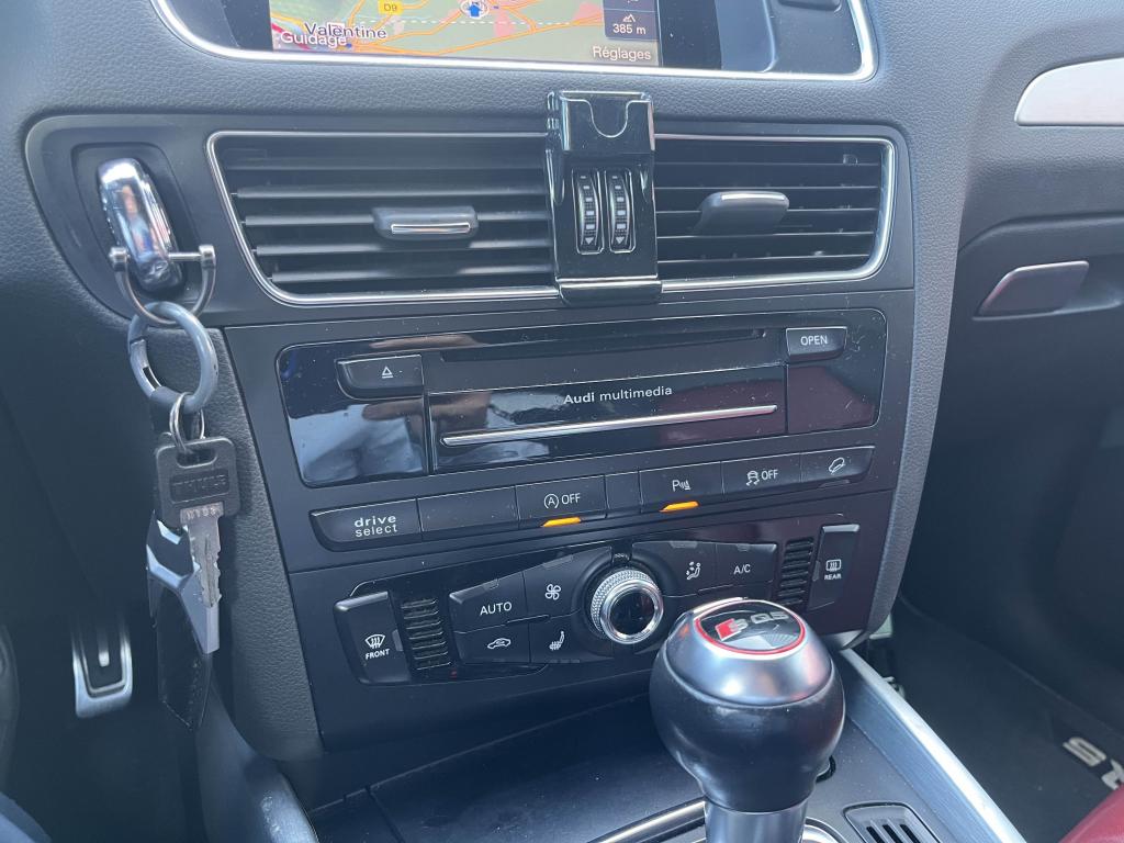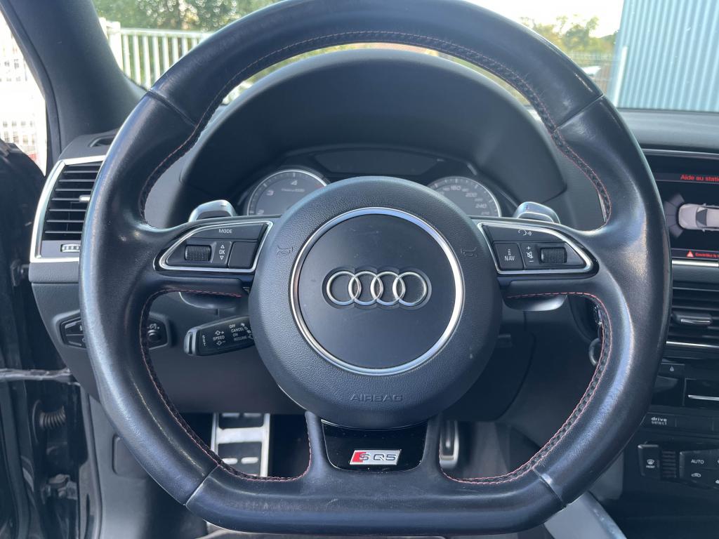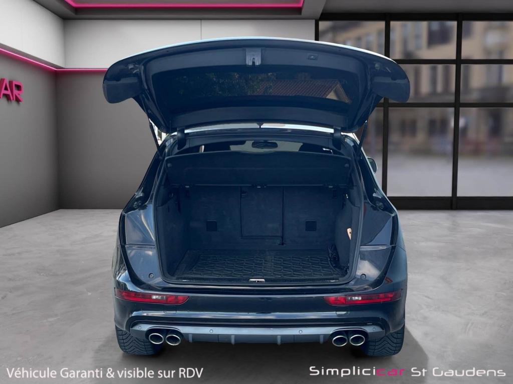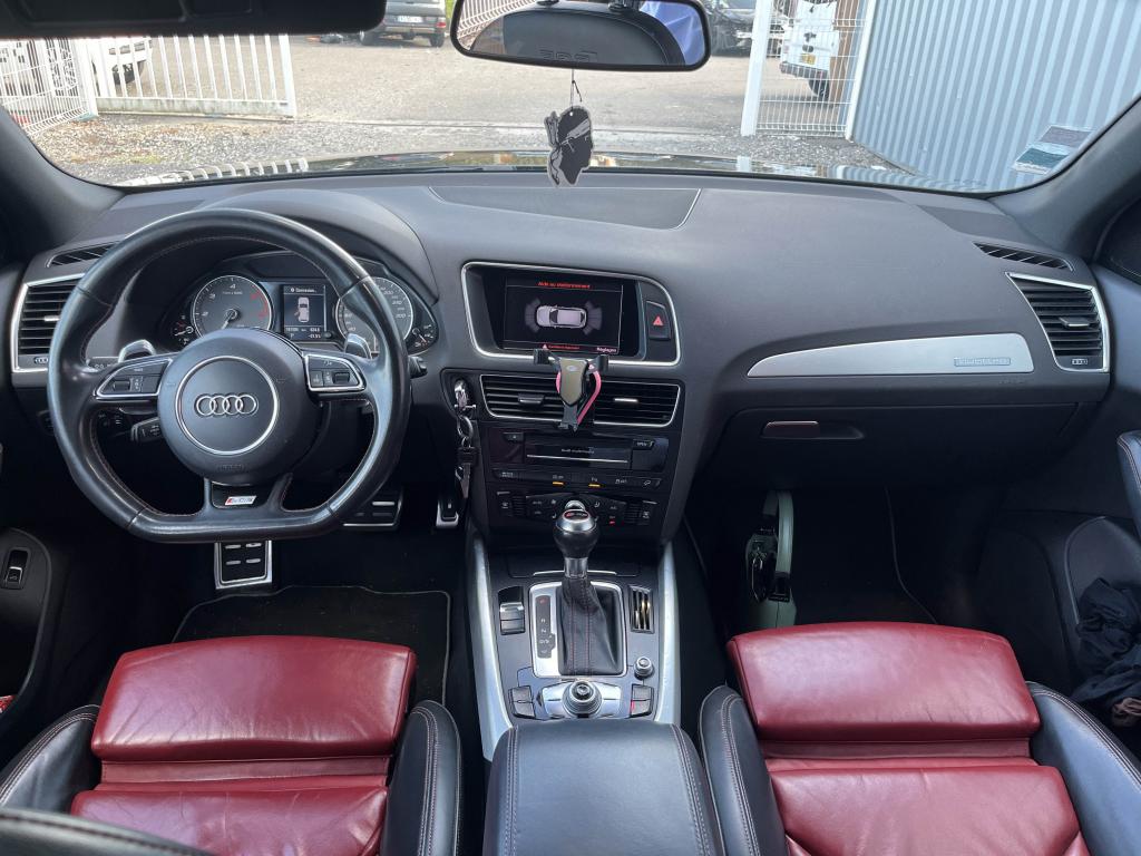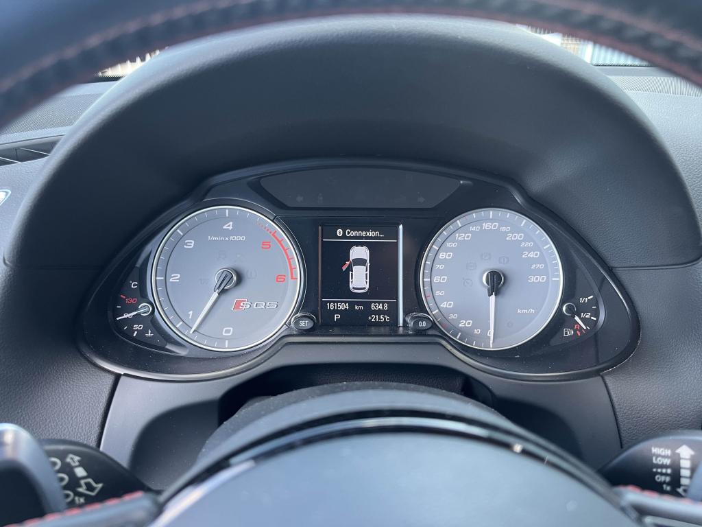 Accoudoir central à l'avant, pour conducteur et passager avant, coulissant en longueur de 65 mm, inclinaison réglable rabattable, avec vide-poches sous l'accoudoir central, incluant deux porte-boissons et prise de 12 V dans la console centraleÉtui à lunettes, dans le module d'éclairage intérieur avant, au-dessus du rétroviseur intérieurAccoudoir central avant avec vide-poches et 2 prises 12 VAccoudoir central dans le dossier des sièges arrière, rabattableAdaptive Light : projecteurs directionnelsAdvanced Key : système d'autorisation d'accès et de démarrage main libreAirbag grand volume conducteur et le passager avant, détection de la position du siège, airbag adaptatif conducteur et passager avantAirbags latéraux (airbag thorax et bassin à l'avant)Antidémarrage électronique intégré à la commande du moteur ; activation automatique par la clé du véhiculeAntipatinage électronique ASRApplications décoratives en aluminium brossé matAppuie-tête, réglables à l'avant et à l'arrièreAssistance au freinage d'urgence, amplificateurs de freins en tandemAudi BackguardAudi connect (inclut GPS Advanced et préparation téléphone 8W)Audi Hold AssistAudi Music InterfaceAudi Sound System (180 W)Audi Tracking SystemAvertisseur de freinage d'urgence et fonction de séchage de disques de freins automatiqueAvertisseur deux tons sur le moyeu du volantBadges “V6T” sur les ailes avant et emblème “SQ5” sur les étriers de freinsBanquette arrière rabattable 60/40, déverrouillage à distance des dossiers via un levier dans la garniture latérale du coffreBecquet de pavillonBoîte à gants éclairéeCarrosserie galvanisée: autoportante, soudée au groupe-plancher, zones de déformation définies à l'avant et à l'arrièreCeintures de sécurité : ceintures trois points à enrouleur pour tous les sièges, avec contrôle du port à l'avant, assorties à la couleur de l'habitacleCendrier éclairé à l'avantCendrier dans la console centrale à l'avant et à l'arrière, allume-cigare à l'avantChâssis DynamiqueClimatisation automatique confort 3 zonesCoffre et hayon éclairésColonne de direction de sécuritéConsole centrale, surélevée, avec compartiment de rangement et volet roulantContact d'allumage électroniqueContrôle électronique de stabilisation (ESC) avec détection de barres de toit et mode offroadContrôle de pression des pneus ( TPMS )Détecteur de pluie et de luminosité incluant rétroviseur intérieur jour/nuit automatiqueDéverrouillage de coffre par touche douce : déverrouillage avec assistance électriqueDirection assistée électromécanique, direction à crémaillère sans entretien avec asistance asservie à la vitesseEclairage intérieur, à temporisation avec contacteur sur toutes les portièresEcran central avec affichage en couleurEcrous antivolEssuie-glace arrière avec déclenchement automatique en marche arrièreEssuie-glace deux vitesses : réglage d'intermittence sur 4 niveaux, commande de balayage coup par coup, lavage-balayage automatiqueFeux arrière, rouges, avec feux de recul blancs, feux arrière de brouillard intégrés, avec capot de coffre ouvert : fonction feux arrière dans le bandeau d'éclairage du pare-chocsFeux de route assistés : gestion automatique du passage de feux de croisement à pleins phares et inversementFilet de séparation, vertical, amovibleFrein de stationnement electromécaniqueHayon assisté électriquement pour l'ouverture et la fermetureIdentification du modèle à l'arrière, inscription “SQ5” à l'arrière, sur la calandre et sur l'embase du volantIndicateur de rapport de vitesse dans le système d'information du conducteurIndication de l'usure des garnitures de freins à l'avant ; affichage sur l'écran centralInstrumentation, avec éclairage réglable : tachymètre électronique avec compteur kilométrique totalisateur et journalier, compte-tours, heure, affichage de la température du liquide de refroidissement et de la réserve de carburantJantes en aluminium coulé style 5 branches double S, 8,5 J x 20” avec pneus 255/45 R20 100WLève-vitres électriques à l'avant et à l'arrière avec protection antipincement et fonction ouverture/fermeture Confort par impulsionLampe à l'avant avec deux spots de lecture supplémentairesLampes à l'arrière avec fonction spots de lectureLimiteurs d'effort sur les ceintures de sécurité avantLunette arrière dégivrante avec minuterieMiroir de courtoisieOEilletons de fixation, quatre oeilletons dans le coffre pour arrimer le chargementOrdinateur de bord couleur, système de contrôle Autocheck et programme efficiencyOutillage de bord dans le coffrePack Éclairage intérieurPack Aluminium extérieurPack RangementPare-soleil, rabattables et pivotants, côté conducteur et passager avantParking System Plus avec caméra de reculPeinture intégrale : pare-chocs avant et arrière et bas de caisse en couleur carrosseriePhares antibrouillard intégrés dans le bouclier avantPoignées de maintien avec mécanisme amortisseur : quatre poignées encastrées dans le ciel de pavillonPoignées de portes couleur carrosseriePorte-boissons double dans la console centralePréparation pour crochet d'attelagePréparation pour siège enfant ISOFIX pour sièges latéraux arrièrePrétensionneurs des ceintures de sécurité avantProjecteurs antibrouillardProjecteurs Xénon Plus incluant lave-phares, feux de jour à LEDQuattro, transmission intégrale permanente avec répartition asymétrique et dynamique de couple, différentiel central autobloquant, blocage électronique de différentiel EDS par intervention sur les freins des roues motricesRégulateur de vitesseRéservoir avec protection contre les erreurs de ravitaillementRétroviseurs extérieurs : avec clignotants à diodes intégrés, réglables et rabattable électriquement, dégivrants avec coques laquées dans la couleur de carrosserie, miroir asphérique à gaucheRétroviseurs extérieurs dégivrants + buses de lave-glace c