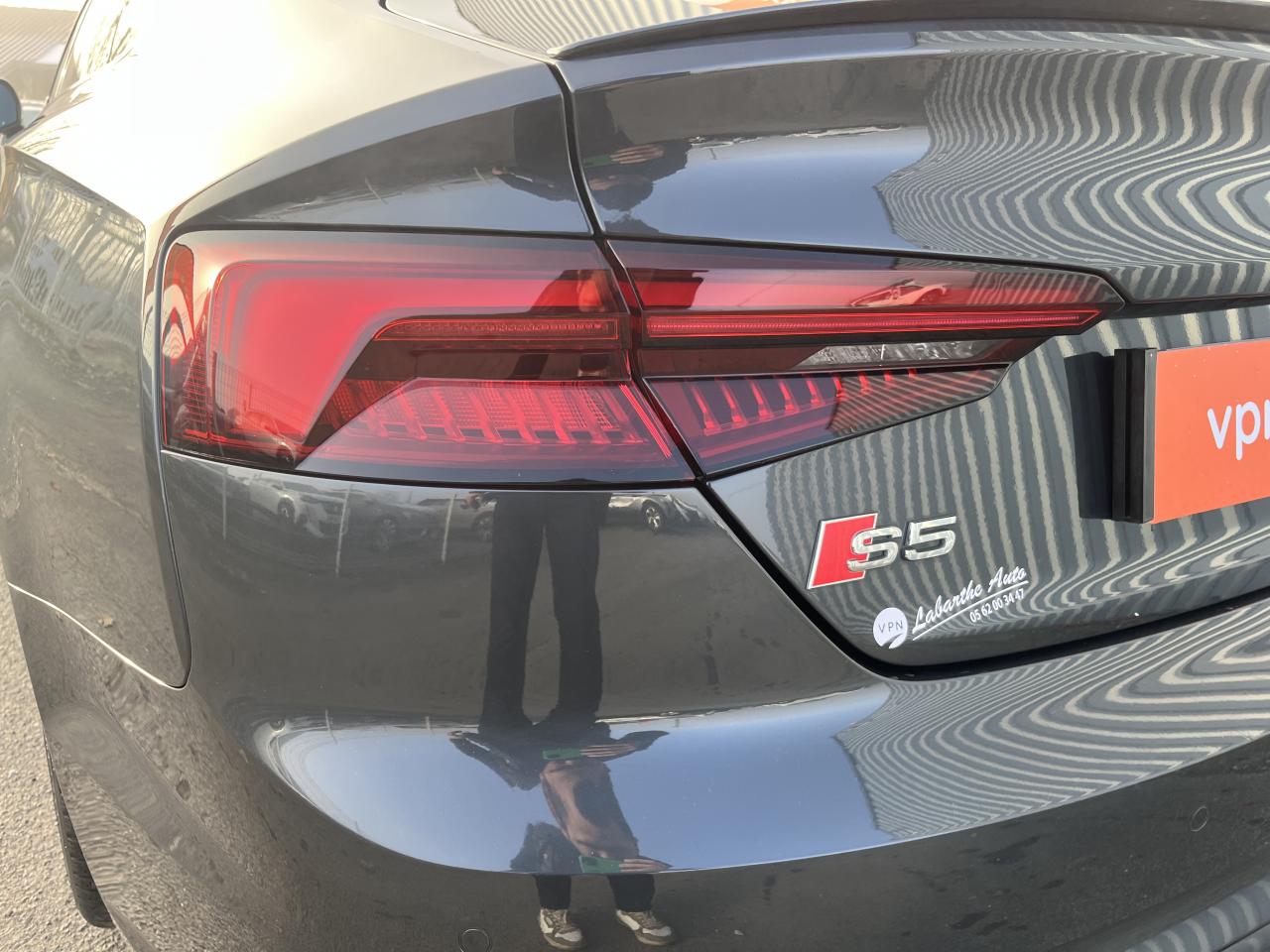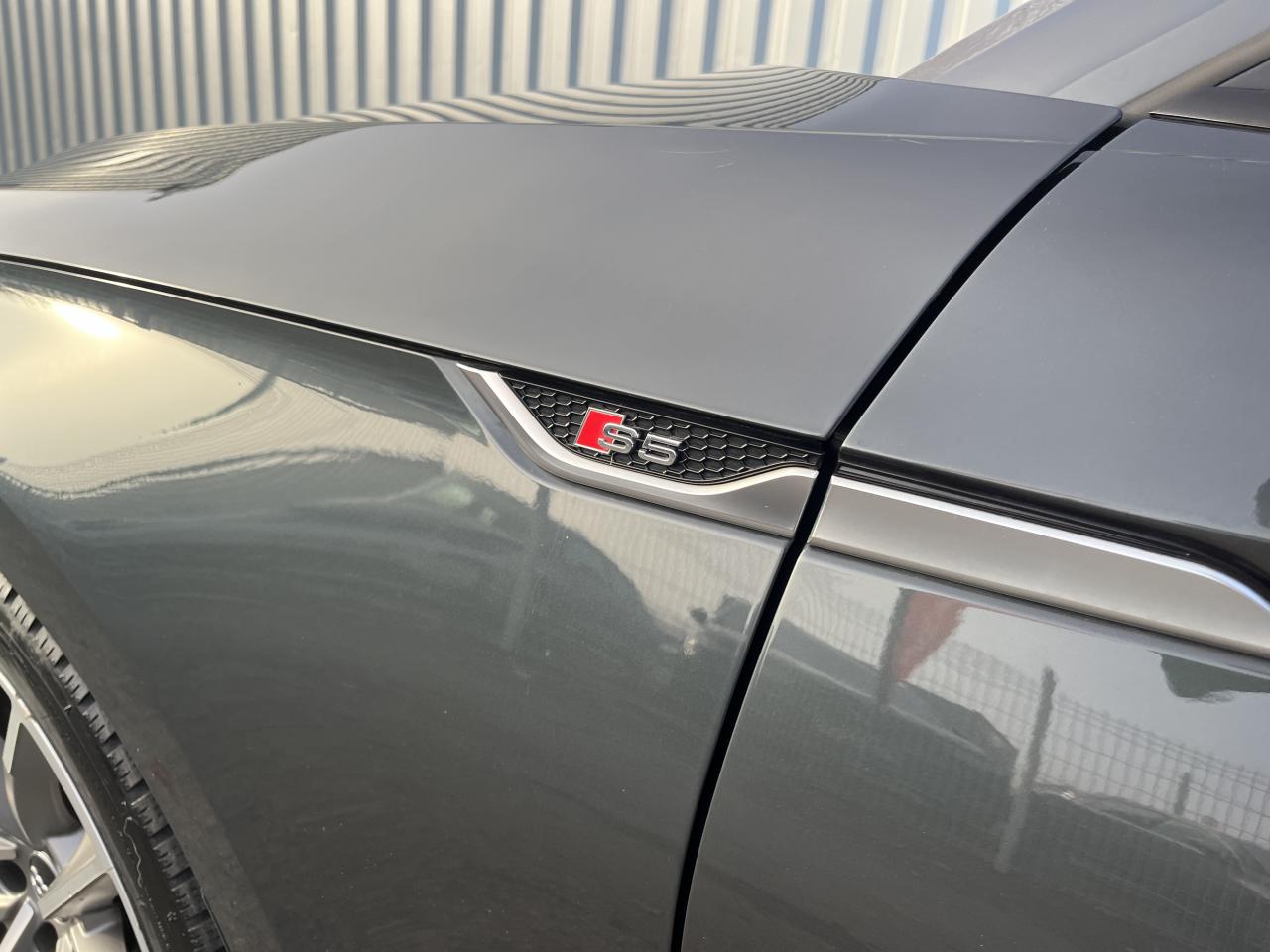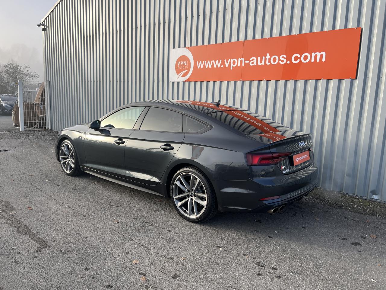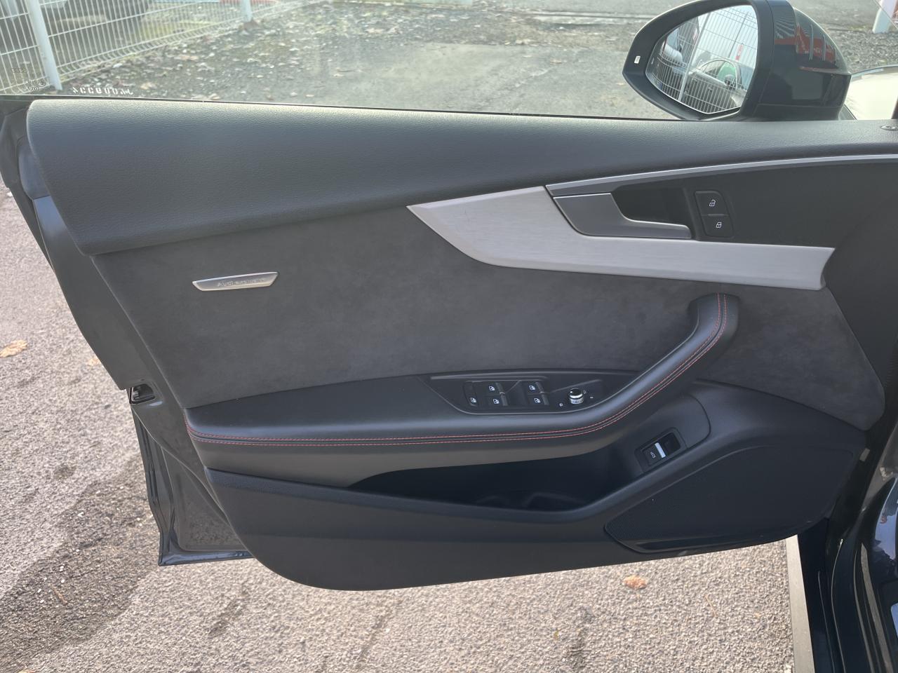 Accoudoir central confort à l'avant avec inclinaison réglable et coulissant en longueurAffichage du contrôle de la pression des pneumatiquesAirbags grand volume pour le conducteur et le passagerAirbags latéraux à l'avant et système d'airbags de têteAllume cigare et cendrierAntipatinage ASR pour une motricité optimale, empêche le patinage des roues motricesApplications décoratives en aluminium brossé matAppui lombaire à 4 axes pour les sièges avant, réglage électrique, horizontal et verticalAudi connectAudi connect "Sécurité et Service"Audi Drive SelectAudi Hold AssistAudi phone box avec chargeur sans filAudi smartphone interfaceAudi sound system : 10 haut-parleurs incluant un haut-parleur central et un subwoofer ; amplificateur à 6 canaux avec une puissance totale de 180 wattsAudi Tracking System : système d'immobilisation et de localisation du véhicule par satelliteAudi virtual cockpitBlocage électronique de différentiel (EDS)Carrosserie galvaniséeCeintures de sécurité, automatiques à trois points pour les quatre places, contrôle de port de ceinture à l'avantChâssis sport SCiel de pavillon en tissu noirClé confortClimatisation automatique Confort Plus 3 zones à fonctionnalités étendues et affichage numériqueColonne de direction de sécuritéCoques de rétroviseurs extérieurs en aluminiumDésactivation de l'airbag du passager avantDétecteur de pluie et allumage automatique des projecteursDirection assistée électromécaniqueDispositif anti-erreur de carburantDossier de banquette arrière 2 places, rabattable à distance et en trois parties 40 : 20 : 40 ou complètementEclairage intérieurEclairage intérieur : module de pavillon incluant spots de lecture, éclairage d'ambiance sur la console arrière, boîte à gants éclairée, éclairage passif des portières, éclairage du coffreEcrous antivolEléments extérieurs spécifiques S : calandre singleframe avec lamelles aluminium avec logo S5, grilles d'entrée d'air latérales en chrome foncé avec applications aluminium, étriers de frein noir avec logo S5, diffuseur arrière noir avESC (contrôle électronique de stabilisation)Fixation pour sièges enfants ISOFIX et Top Tether pour les places arrière extérieuresFixation pour sièges enfants ISOFIX sur le siège passager AV avec commande de désactivation d'airbag passager AVFrein de stationnement electromécaniqueHayon à ouverture et fermeture automatiquesInterface BluetoothJantes en aluminium coulé Audi Sport style 5 branches doubles, finition titane mat, polies brillant, 8,5 J x 19"Navigation MMI plus avec MMI touchOutillage de bord et cricPack Assistance CityPack brillance : entourages de vitres en aluminiumPare-chocs spécifiques S style dynamique et sportifPare-soleilPeinture verniePhares à LED avec clignotants arrière à LED dynamiquesPréparation pour crochet d'attelageQuattro : transmission intégrale permanenteRéglage en hauteur des ceintures de sécuritéRégulateur et limiteur de vitesseRétroviseur intérieur électrochrome sans contourRétroviseurs extérieurs avec clignotants à LED intégrésRétroviseurs extérieurs réglables et escamotables électriquement, jour/nuit automatique, dégivrants des deux côtés et buses de lave-glaces dégivrantesRecommandation de repos qui analyse le comportement routier au moyen de différents capteursRoue de secours à encombrement réduitSécurité enfantsSellerie Cuir / Alcantra avec surpiqûres contrastées et embossé SSièges avant chauffantsSièges avant réglables électriquement avec fonction mémoires pour le siège conducteurSièges Sport à l'avantSorties d'échappement chromées, visibles et doubles, une double sortie à gauche et une sortie à droiteSystème Start/Stop réduit la consommation de carburant ainsi que les émissions de CO2Tapis complémentaires à l'avant et à l'arrièreTiptronic : boîte automatique 8 rapports avec programme de commande dynamique (DSP)Triangle de présignalisation et trousse de secoursVide-pochesVitres athermiquesVolant 3 branches multifonction plus en cuir avec méplat avec logo S5