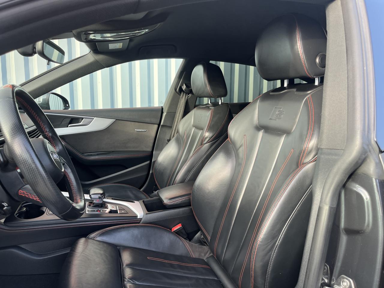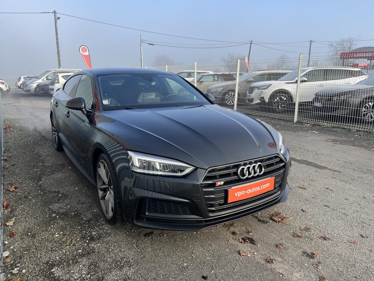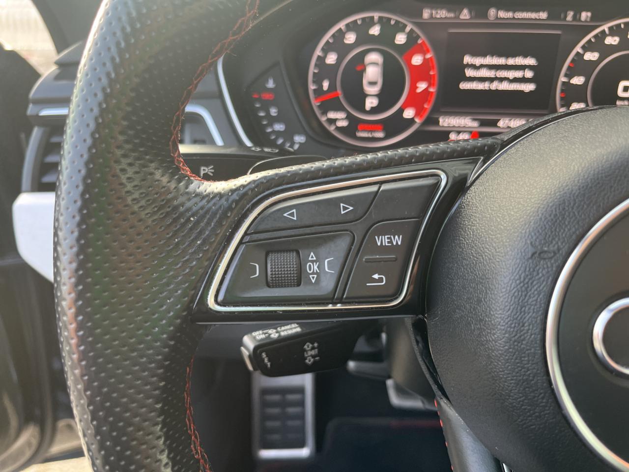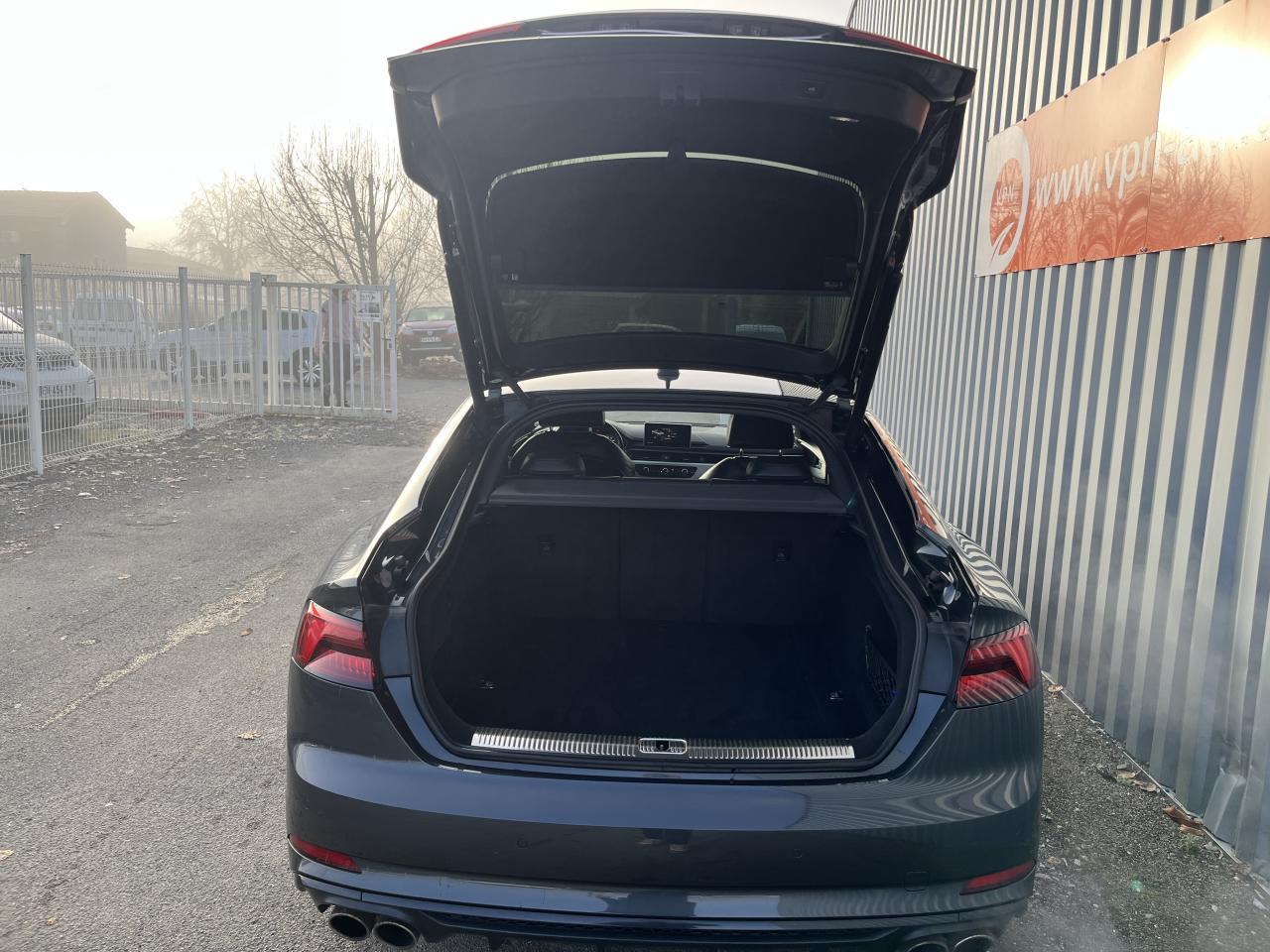 Accoudoir central confort à l'avant avec inclinaison réglable et coulissant en longueurAffichage du contrôle de la pression des pneumatiquesAirbags grand volume pour le conducteur et le passagerAirbags latéraux à l'avant et système d'airbags de têteAllume cigare et cendrierAntipatinage ASR pour une motricité optimale, empêche le patinage des roues motricesApplications décoratives en aluminium brossé matAppui lombaire à 4 axes pour les sièges avant, réglage électrique, horizontal et verticalAudi connectAudi connect "Sécurité et Service"Audi Drive SelectAudi Hold AssistAudi phone box avec chargeur sans filAudi smartphone interfaceAudi sound system : 10 haut-parleurs incluant un haut-parleur central et un subwoofer ; amplificateur à 6 canaux avec une puissance totale de 180 wattsAudi Tracking System : système d'immobilisation et de localisation du véhicule par satelliteAudi virtual cockpitBlocage électronique de différentiel (EDS)Carrosserie galvaniséeCeintures de sécurité, automatiques à trois points pour les quatre places, contrôle de port de ceinture à l'avantChâssis sport SCiel de pavillon en tissu noirClé confortClimatisation automatique Confort Plus 3 zones à fonctionnalités étendues et affichage numériqueColonne de direction de sécuritéCoques de rétroviseurs extérieurs en aluminiumDésactivation de l'airbag du passager avantDétecteur de pluie et allumage automatique des projecteursDirection assistée électromécaniqueDispositif anti-erreur de carburantDossier de banquette arrière 2 places, rabattable à distance et en trois parties 40 : 20 : 40 ou complètementEclairage intérieurEclairage intérieur : module de pavillon incluant spots de lecture, éclairage d'ambiance sur la console arrière, boîte à gants éclairée, éclairage passif des portières, éclairage du coffreEcrous antivolEléments extérieurs spécifiques S : calandre singleframe avec lamelles aluminium avec logo S5, grilles d'entrée d'air latérales en chrome foncé avec applications aluminium, étriers de frein noir avec logo S5, diffuseur arrière noir avESC (contrôle électronique de stabilisation)Fixation pour sièges enfants ISOFIX et Top Tether pour les places arrière extérieuresFixation pour sièges enfants ISOFIX sur le siège passager AV avec commande de désactivation d'airbag passager AVFrein de stationnement electromécaniqueHayon à ouverture et fermeture automatiquesInterface BluetoothJantes en aluminium coulé Audi Sport style 5 branches doubles, finition titane mat, polies brillant, 8,5 J x 19"Navigation MMI plus avec MMI touchOutillage de bord et cricPack Assistance CityPack brillance : entourages de vitres en aluminiumPare-chocs spécifiques S style dynamique et sportifPare-soleilPeinture verniePhares à LED avec clignotants arrière à LED dynamiquesPréparation pour crochet d'attelageQuattro : transmission intégrale permanenteRéglage en hauteur des ceintures de sécuritéRégulateur et limiteur de vitesseRétroviseur intérieur électrochrome sans contourRétroviseurs extérieurs avec clignotants à LED intégrésRétroviseurs extérieurs réglables et escamotables électriquement, jour/nuit automatique, dégivrants des deux côtés et buses de lave-glaces dégivrantesRecommandation de repos qui analyse le comportement routier au moyen de différents capteursRoue de secours à encombrement réduitSécurité enfantsSellerie Cuir / Alcantra avec surpiqûres contrastées et embossé SSièges avant chauffantsSièges avant réglables électriquement avec fonction mémoires pour le siège conducteurSièges Sport à l'avantSorties d'échappement chromées, visibles et doubles, une double sortie à gauche et une sortie à droiteSystème Start/Stop réduit la consommation de carburant ainsi que les émissions de CO2Tapis complémentaires à l'avant et à l'arrièreTiptronic : boîte automatique 8 rapports avec programme de commande dynamique (DSP)Triangle de présignalisation et trousse de secoursVide-pochesVitres athermiquesVolant 3 branches multifonction plus en cuir avec méplat avec logo S5
