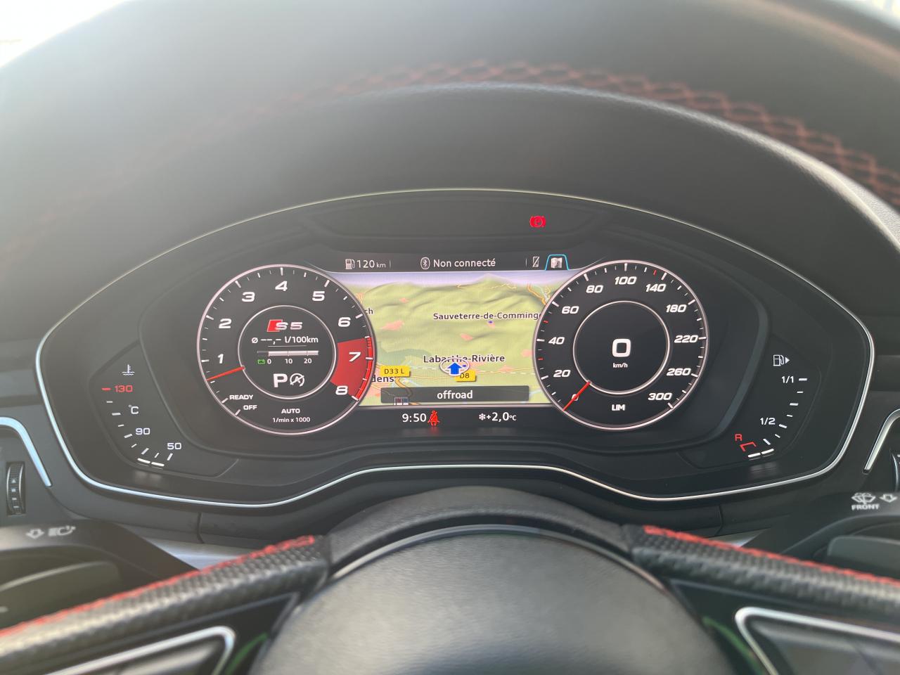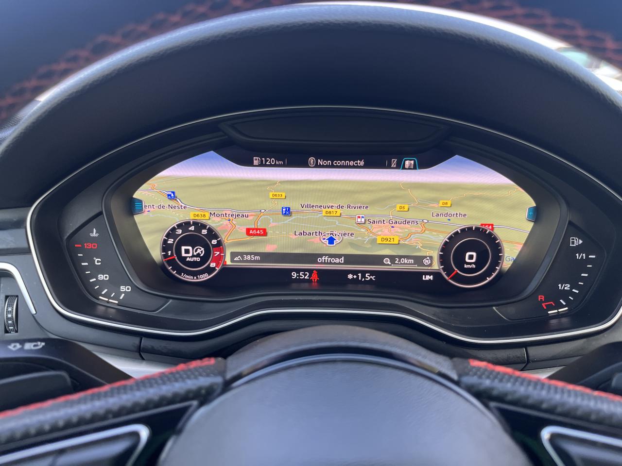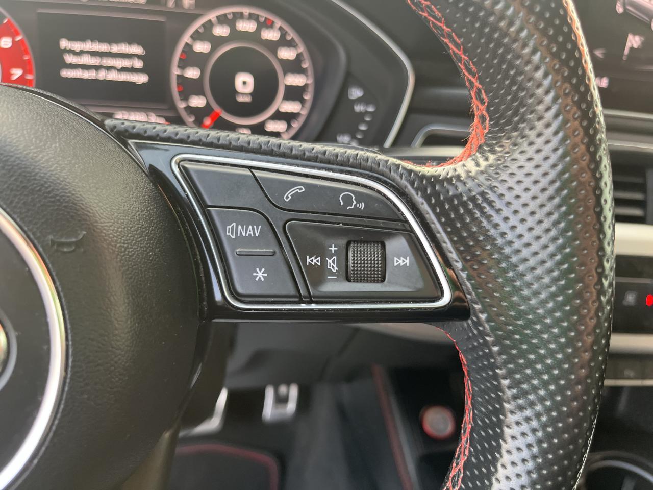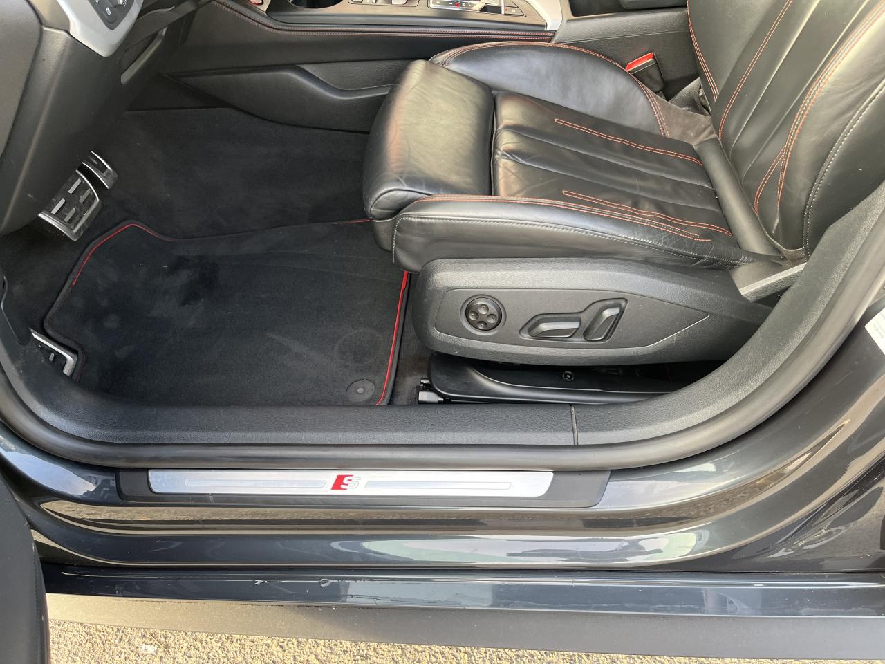 Accoudoir central confort à l'avant avec inclinaison réglable et coulissant en longueurAffichage du contrôle de la pression des pneumatiquesAirbags grand volume pour le conducteur et le passagerAirbags latéraux à l'avant et système d'airbags de têteAllume cigare et cendrierAntipatinage ASR pour une motricité optimale, empêche le patinage des roues motricesApplications décoratives en aluminium brossé matAppui lombaire à 4 axes pour les sièges avant, réglage électrique, horizontal et verticalAudi connectAudi connect "Sécurité et Service"Audi Drive SelectAudi Hold AssistAudi phone box avec chargeur sans filAudi smartphone interfaceAudi sound system : 10 haut-parleurs incluant un haut-parleur central et un subwoofer ; amplificateur à 6 canaux avec une puissance totale de 180 wattsAudi Tracking System : système d'immobilisation et de localisation du véhicule par satelliteAudi virtual cockpitBlocage électronique de différentiel (EDS)Carrosserie galvaniséeCeintures de sécurité, automatiques à trois points pour les quatre places, contrôle de port de ceinture à l'avantChâssis sport SCiel de pavillon en tissu noirClé confortClimatisation automatique Confort Plus 3 zones à fonctionnalités étendues et affichage numériqueColonne de direction de sécuritéCoques de rétroviseurs extérieurs en aluminiumDésactivation de l'airbag du passager avantDétecteur de pluie et allumage automatique des projecteursDirection assistée électromécaniqueDispositif anti-erreur de carburantDossier de banquette arrière 2 places, rabattable à distance et en trois parties 40 : 20 : 40 ou complètementEclairage intérieurEclairage intérieur : module de pavillon incluant spots de lecture, éclairage d'ambiance sur la console arrière, boîte à gants éclairée, éclairage passif des portières, éclairage du coffreEcrous antivolEléments extérieurs spécifiques S : calandre singleframe avec lamelles aluminium avec logo S5, grilles d'entrée d'air latérales en chrome foncé avec applications aluminium, étriers de frein noir avec logo S5, diffuseur arrière noir avESC (contrôle électronique de stabilisation)Fixation pour sièges enfants ISOFIX et Top Tether pour les places arrière extérieuresFixation pour sièges enfants ISOFIX sur le siège passager AV avec commande de désactivation d'airbag passager AVFrein de stationnement electromécaniqueHayon à ouverture et fermeture automatiquesInterface BluetoothJantes en aluminium coulé Audi Sport style 5 branches doubles, finition titane mat, polies brillant, 8,5 J x 19"Navigation MMI plus avec MMI touchOutillage de bord et cricPack Assistance CityPack brillance : entourages de vitres en aluminiumPare-chocs spécifiques S style dynamique et sportifPare-soleilPeinture verniePhares à LED avec clignotants arrière à LED dynamiquesPréparation pour crochet d'attelageQuattro : transmission intégrale permanenteRéglage en hauteur des ceintures de sécuritéRégulateur et limiteur de vitesseRétroviseur intérieur électrochrome sans contourRétroviseurs extérieurs avec clignotants à LED intégrésRétroviseurs extérieurs réglables et escamotables électriquement, jour/nuit automatique, dégivrants des deux côtés et buses de lave-glaces dégivrantesRecommandation de repos qui analyse le comportement routier au moyen de différents capteursRoue de secours à encombrement réduitSécurité enfantsSellerie Cuir / Alcantra avec surpiqûres contrastées et embossé SSièges avant chauffantsSièges avant réglables électriquement avec fonction mémoires pour le siège conducteurSièges Sport à l'avantSorties d'échappement chromées, visibles et doubles, une double sortie à gauche et une sortie à droiteSystème Start/Stop réduit la consommation de carburant ainsi que les émissions de CO2Tapis complémentaires à l'avant et à l'arrièreTiptronic : boîte automatique 8 rapports avec programme de commande dynamique (DSP)Triangle de présignalisation et trousse de secoursVide-pochesVitres athermiquesVolant 3 branches multifonction plus en cuir avec méplat avec logo S5