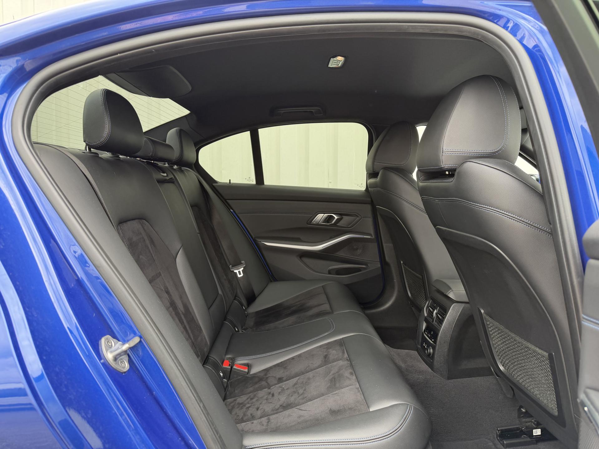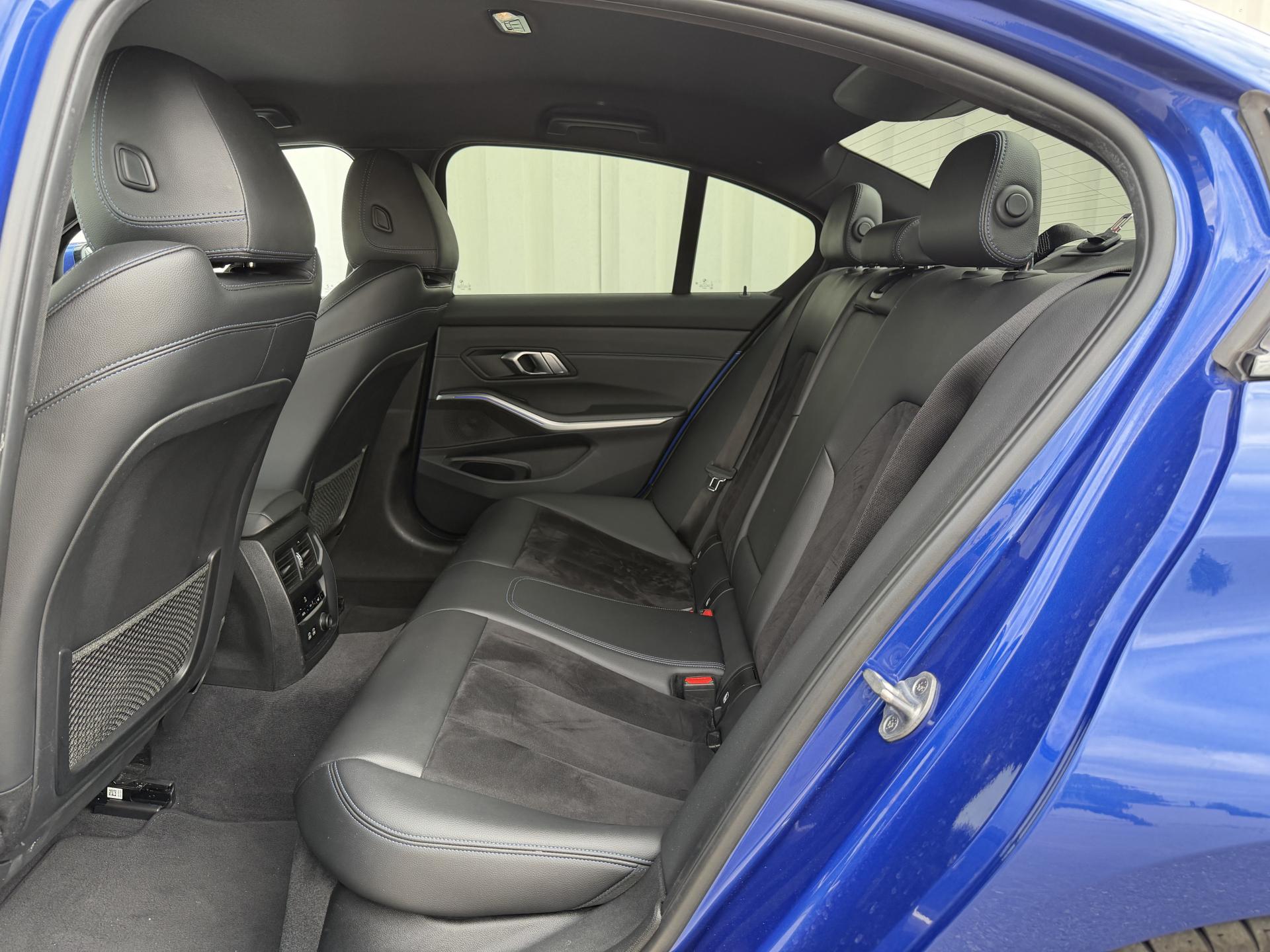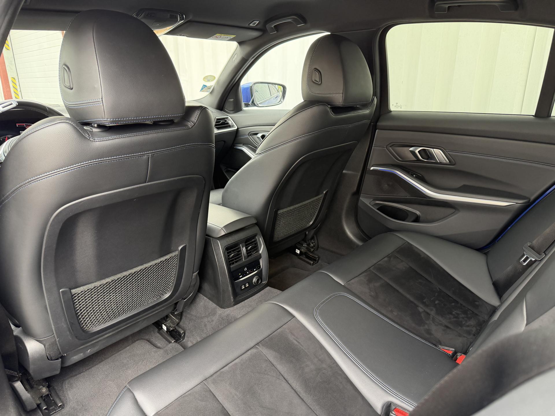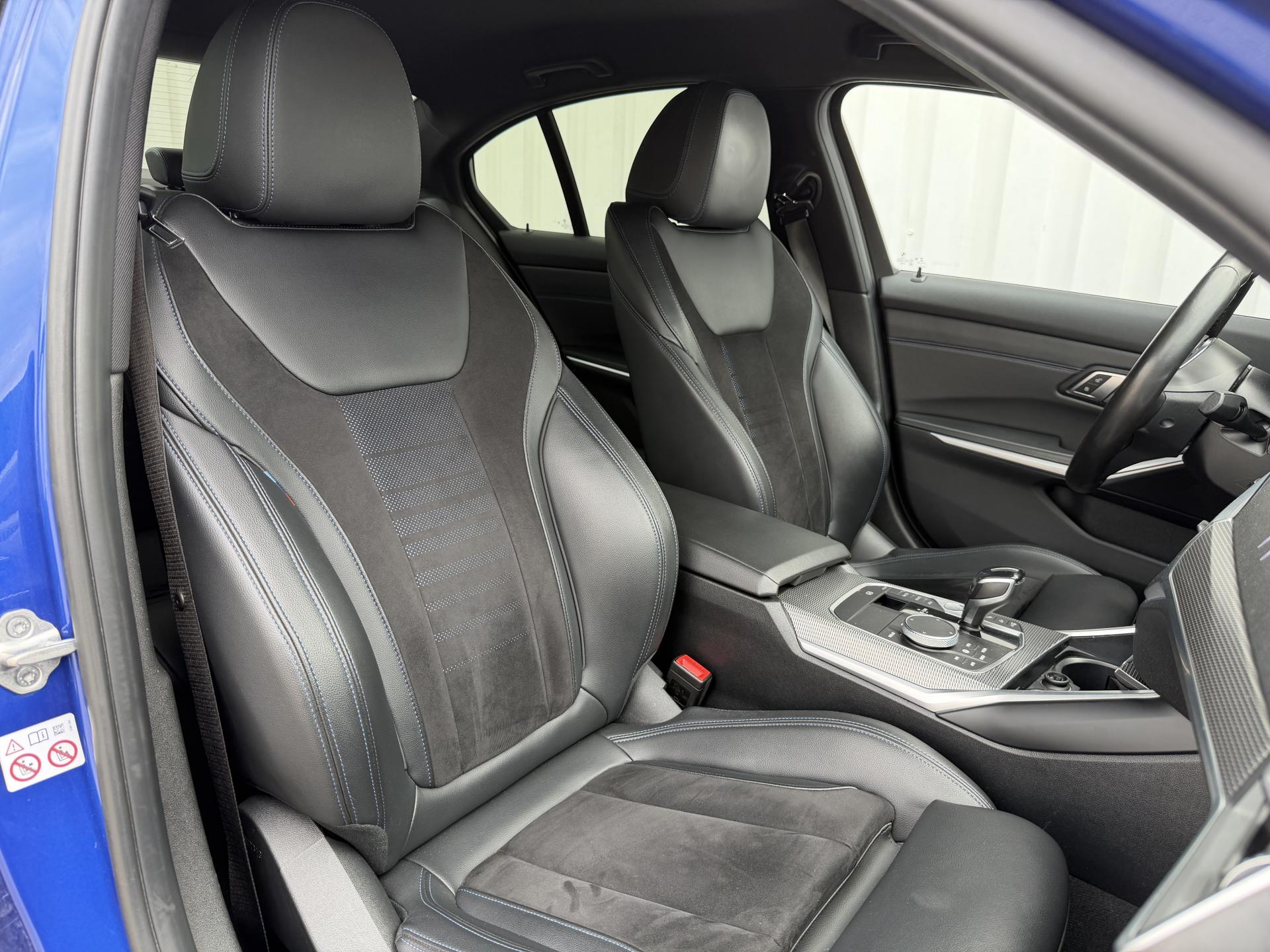 - Sellerie Alcantara / Similicuir Sensatec Schwarz avec surpiqûres bleues