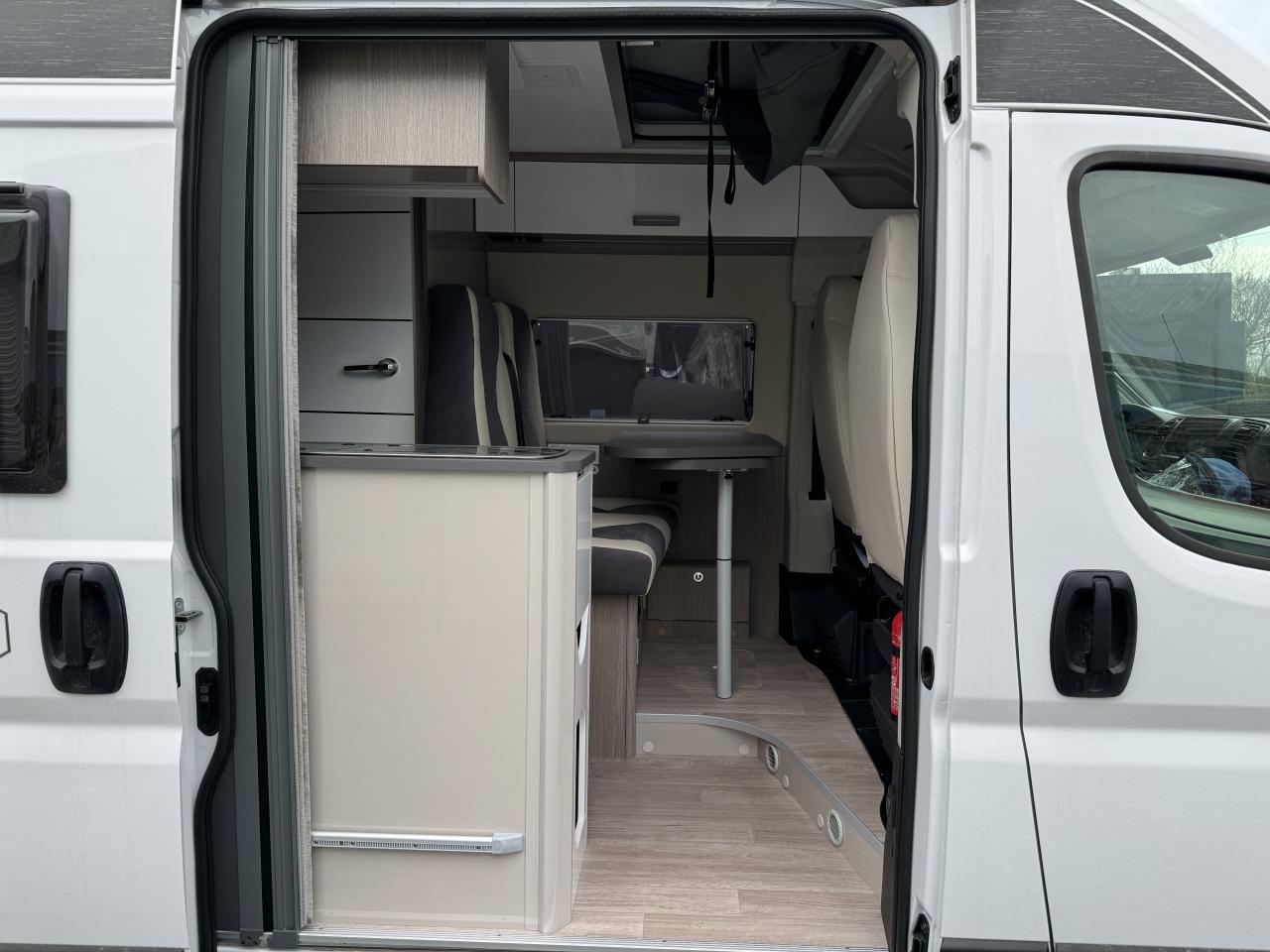 Clim manuelleAccoudoirs pour les sièges du compartiment passageAirbags conducteur et passagerBaies arrières ouvrantesChauffage au gazEco pack FIATESPExtension table dinetteFenêtres double-vitrage avec combiné stores moustiquaireFix and Go kitFourgon toit relevableJantes acier Dark Grey 16''Lanterneau panoramique (ou double lanterneau)Marchepied électriquePré-équipement TVPrécâblage caméra de reculPrécâblage pour panneau solairePrise USBRégulateur et limiteur de vitesseRétroviseurs électriquesRétroviseurs dégivrantsRideaux d’isolation thermique des baies de cabineSalle d'eau avec fenêtreSièges conducteur & passager pivotantsSupport table extérieure