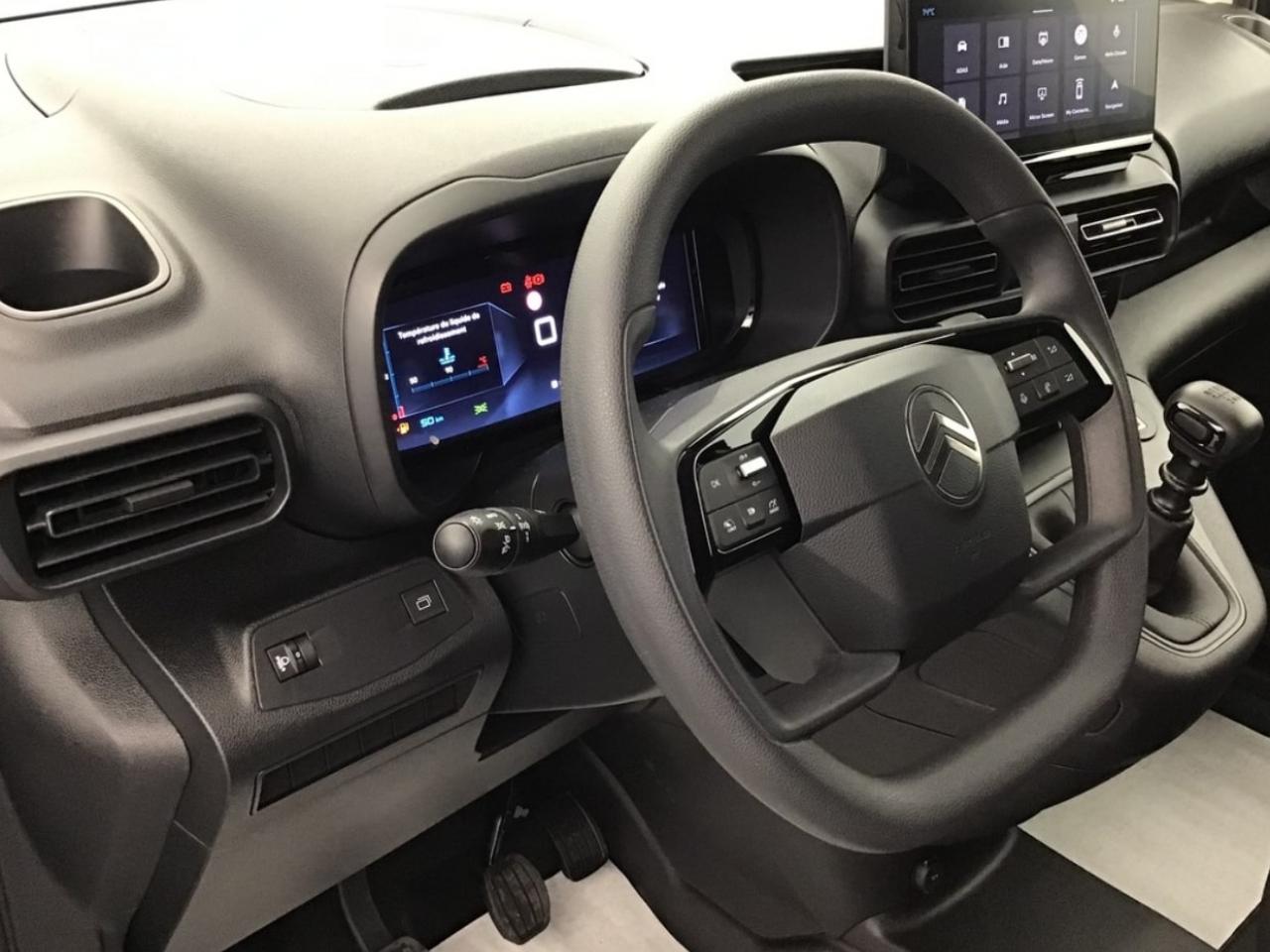 2 ports USB-C6 anneaux d'arrimage en zone de chargementAide au démarrage en côteAide au stationnement arrièreAirbag frontal conducteurAirbag passager avec airbags latéraux et rideaux avantAllumage automatique des projecteursApplication radio avec streaming audio (2HP)Appuis-tête passager réglable en hauteurBoîte à gant ouverte en partie basseBoîte à gants fermée et réfrigérée en partie hauteCapucineClimatisation manuelleCloison pleine fixeCommutation automatique des feux de routeCondamnation centralisée avec 1 plip HF + 1 cléConnect Box avec Pack SOS et assistance inclusContrôle dynamique de conduite (ESP) avec fonction anti-patinage (ASR)Détecteurs de sous-gonflageEssuie-vitre avant avec système de lavage 'Magic Wash'Jantes tôle 16" grises avec cabochonKit de dépannage provisoire de pneumatiquesKit mains libres BluetoothLève-vitres avant électriquesPack SafetyPeinture opaque Blanc IcyPneumatiques 205/60 R16Porte latérale droite coulissante tôléePortes arrières battantes tôlées 60/40 avec ouverture à 180°Preventive Maintenance (abonnement 4 ans inclus)Prise 12 V sur planche de bordRégulateur et limiteur de vitesseRétroviseurs extérieurs réglables électriquement et dégivrantsRevêtement moquette dans l'habitacleSellerie tissu Curitiba Triton MeltemSiège conducteur avec réglage en longueur et dossier inclinableSiège passager réglable en inclinaisonStation d'accueil pour smartphone compatibleSystème antiblocage des roues (ABS) & Assistance au freinage d'urgence (AFU)Volant multifonctionsVolant réglable en hauteur et en profondeur