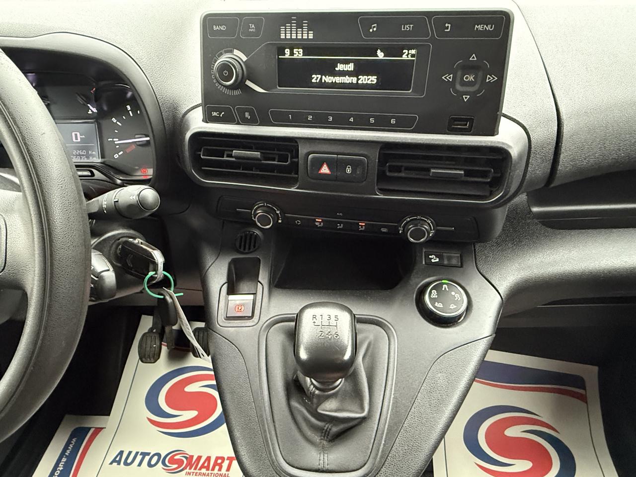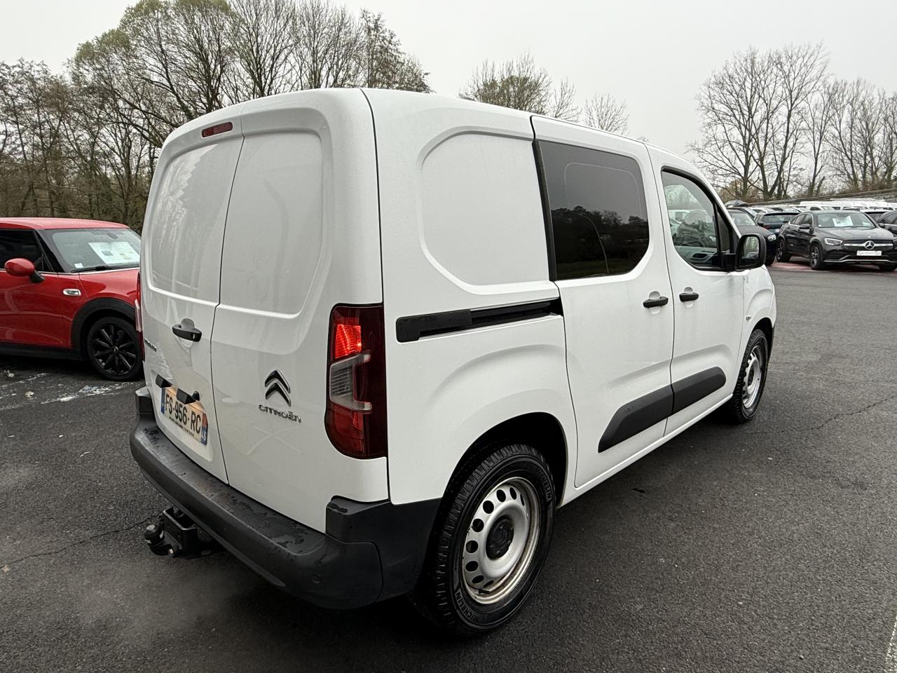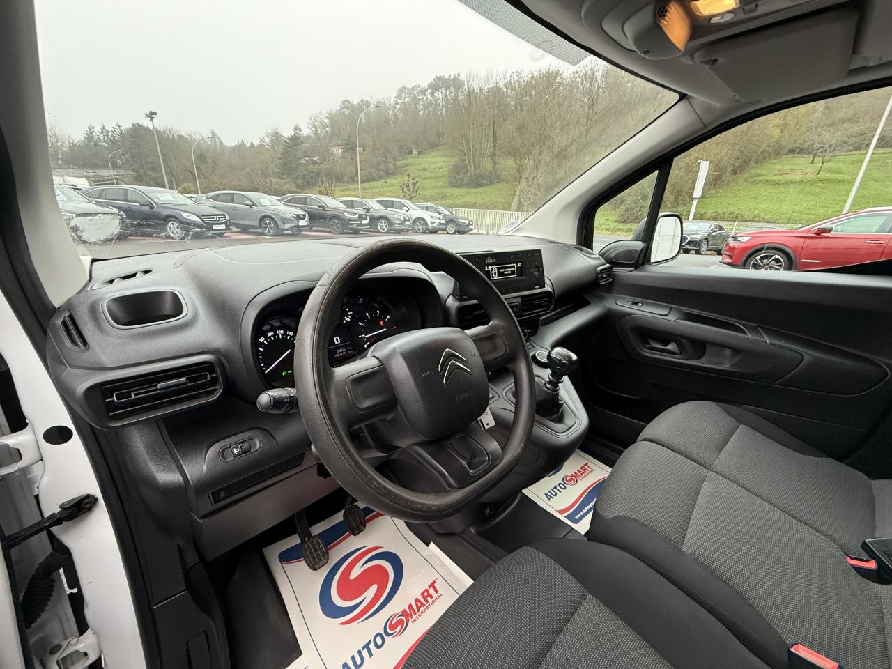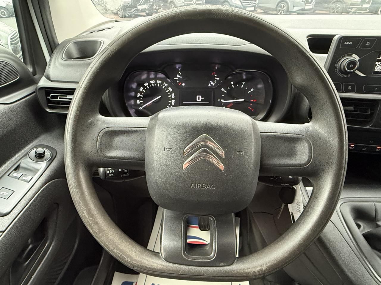 6 anneaux d'arrimage en zone de chargementABS avec répartiteur électronique de freinage (REF) et aide au freinage d'urgence (AFU)Aide au démarrage en côteAirbag frontal conducteurAllumage automatique des projecteursBac de porte avantBaguettes de protection latérales noires teintées masseBoîte à gants inférieure ouverteBoîte à gants supérieure Top Box fermée (réfrigérée si climatisation)Bouchon / trappe à carburant verrouillablesCabine Extenso (banquette 2 places, place centrale avec dossier rabattable et tablette écritoire orientable, rangement sécurisable sous siège central, place latérale escamotable pour charge longue)Capucine transversale de rangement ouverteCITROËN Connect Box avec Pack SOS et assistance inclusClimatisation manuelleCloison pleine fixe (avec crochet porte-habit)Commande du système audio au volantCondamnation centralisée avec plip 3 boutonsContrôle dynamique de conduite (ESP) avec fonction anti-patinage (ASR)Coques de rétroviseurs noires teintées masseDétection de sous-gonflage indirecteEclairage d'accueil et d'accompagnementEssuie-vitre avant avec système de lavage 'Magic Wash'Frein de stationnement électriqueKit mains libres Bluetooth et prise USBLève-vitres avant électriquesOrdinateur de bordPack ChantierPack Zone de chargementPare-chocs avant et arrière noirs teintés massePeinture opaque Blanc BanquisePneumatiques 215/65 R16 Mud & SnowPoignées de portes extérieures noires teintées massePorte latérale droite coulissante tôléePortes arrières battantes tôlées 60/40 avec ouverture à 180°Prise 12 V sur planche de bordProjecteurs antibrouillardRails de PLC avec enjoliveurs noirs teintés masseRégulateur et limiteur de vitesseRétroviseurs extérieurs réglables électriquement et dégivrantsRevêtement de sol en TPO dans l'habitacleRoue de secours homogèneSellerie tissu Mica GreySiège conducteur confort avec réglage en hauteur, réglage lombaire, rangement sous siège et accoudoirSiège passager individuel réglable en inclinaison et en longueurSystème audio MP3 (2 HP + 2 tweeters) avec commandes sous volantVolant mousséVolant réglable en hauteur et en profondeurZone de dépose pour smartphone