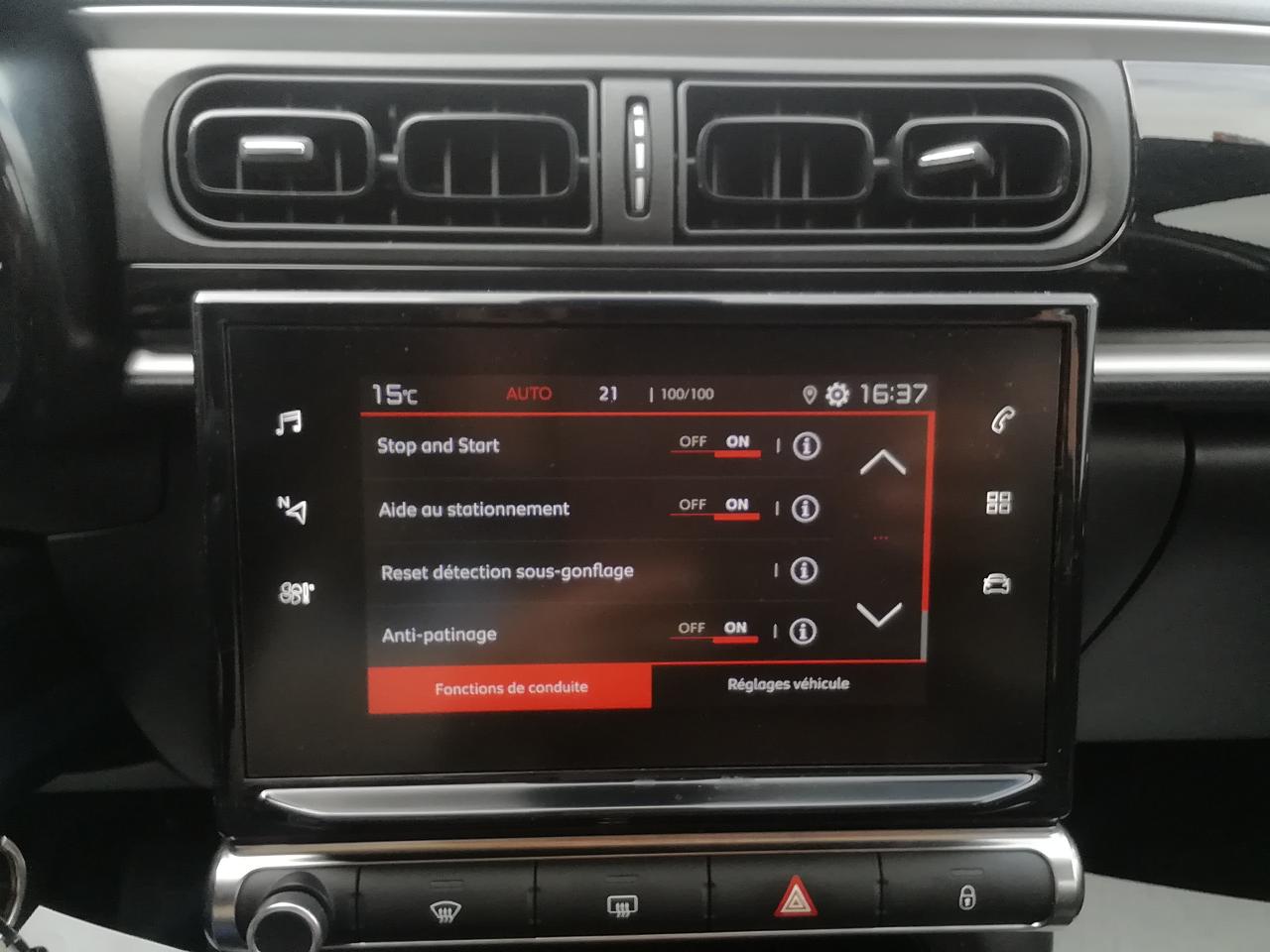 ABS avec répartiteur électronique de freinage (REF) et aide au freinage d'urgence (AFU)Allumage des feux de détresse en cas de forte décélérationBanquette arrière fractionnable 2/3 - 1/3CITROËN Connect Radio sur tablette tactile 7"Climatisation automatique avec fonction filtrage de l'airCommandes au volant du système audioCondamnation centralisée avec plipDétecteur de sous GonflageKit mains libres Bluetooth et prise USBLève-vitres avant électriquesMirror ScreenPavillon bi-ton avec coques de rétroviseurs extérieurs couleur pavillonPersonnalisation extérieure Graphic (adhésifs de custode, de toit et sur les portes avant spécifiques)Prises 12 volts AVRégulateur et limiteur de vitesseRétroviseurs extérieurs rabattables électriquementSystème de fixation ISOFIX sur les sièges arrièreTeinte de caisse opaque biton Almond Green/toit Noir Onyx