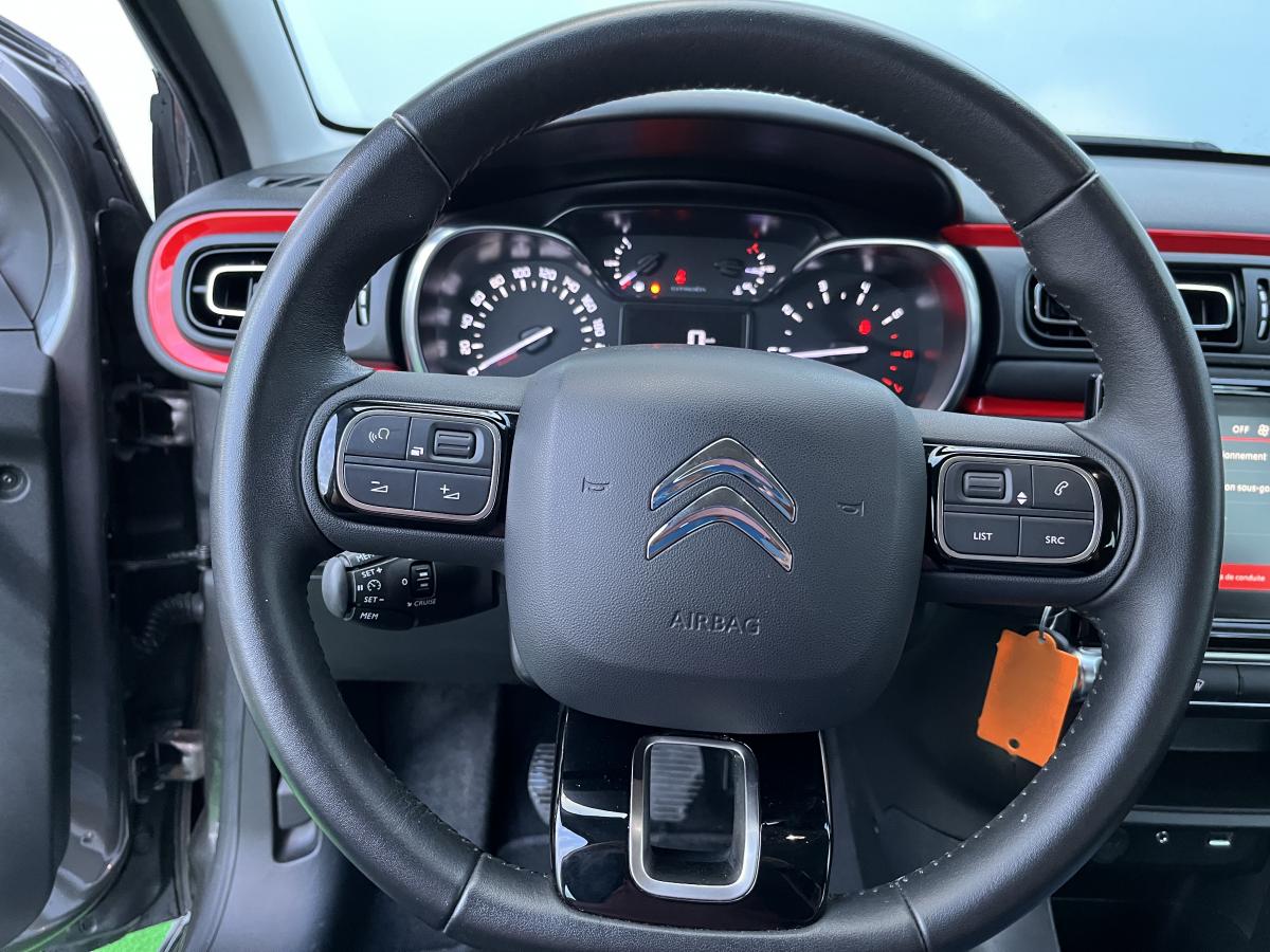 ABS avec répartiteur électronique de freinage (REF) et aide au freinage d'urgence (AFU)Accoudoirs de panneaux de portes textile avec sangleAdhésifs de custodes avec liseré blanc ou rouge si toit rougeAide au démarrage en penteAide au stationnement arrièreAirbags frontaux, latéraux AV et rideauxAirbump Black avec ponctuelle colorée (blanc ou rouge si toit rouge)Allumage des feux de détresse en cas de forte décélérationBandeau de planche de bord Noir Brillant avec cerclage Chrome SatinBanquette arrière fractionnable 2/3 - 1/3CITROËN Connect Radio sur tablette tactile 7"Clignotants impulsionnelsClimatisation automatique avec fonction filtrage de l'airCommandes au volant du système audioCondamnation centralisée avec plipContrôle dynamique de stabilité (ESP)Détecteur de sous GonflageDirection à assistance électriqueElargisseurs d'ailes et bas de caisse noir matEnjoliveurs d'antibrouillard couleur pavillonEnjoliveurs de montant central et custode Noir MatFeux arrière a effet 3DFeux diurnes à LEDJantes Steel & Design 16’’Kit de dépannage provisoire de pneumatiquesKit mains libres Bluetooth et prise USBLève-vitres arrière manuelsLève-vitres avant électriques et séquentielsMirror ScreenOrdinateur de bordPack SafetyPack VisibilitéPare-soleil avec miroir de courtoisie occultable côtés conducteur et passagerPavillon bi-ton avec coques de rétroviseurs extérieurs couleur pavillonPlafonnier avant avec lecteurs de carte et LED d'ambiancePoignées de portes extérieures couleur caissePrises 12 volts AVProjecteurs antibrouillard avantRégulateur et limiteur de vitesseRétroviseurs extérieurs réglables électriquement et dégivrantsRétroviseurs extérieurs rabattables électriquementSécurité enfants manuelleSellerie tissu Mica GreySiège conducteur réglable en hauteurSystème Audio mp3 6HPSystème de fixation ISOFIX sur les sièges arrièreTémoin et alerte de débouclage des ceintures passagers avant et arrièreTeinte de caisse opaque monoton Almond GreenToit peint en Noir OnyxVolant en croûte de cuirVolant réglable en hauteur et en profondeur