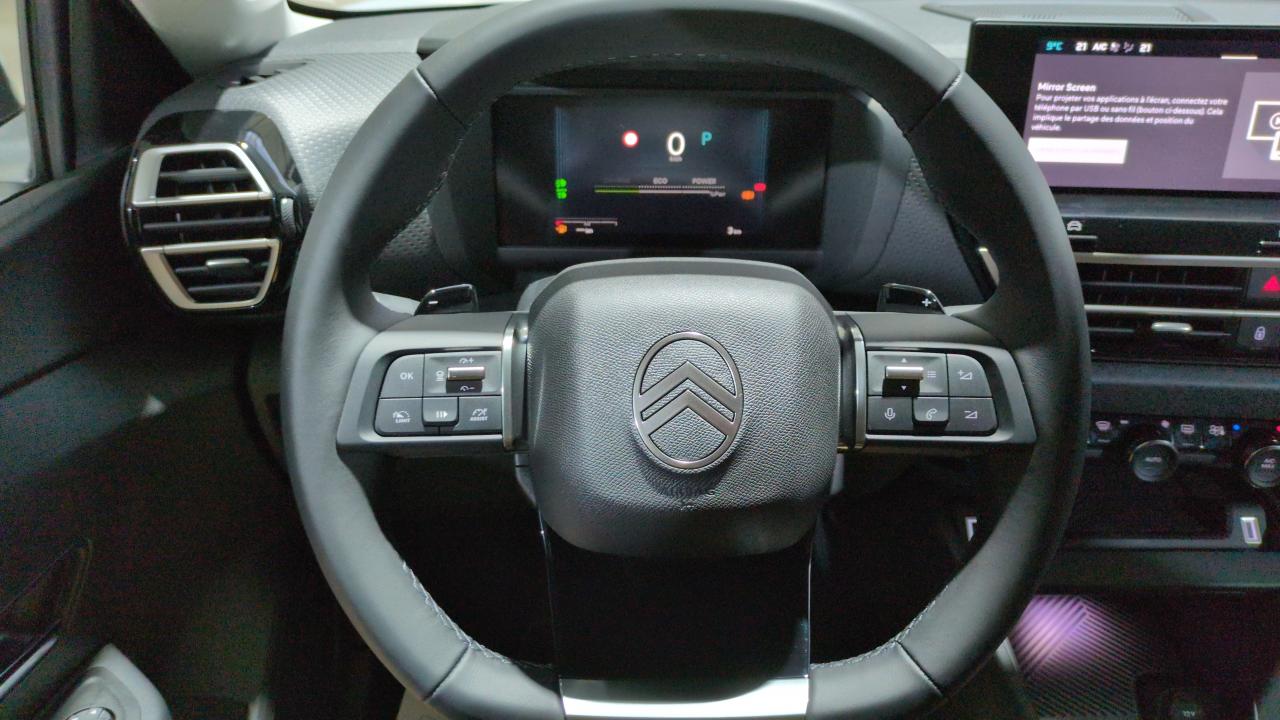 2 prises usb au rang 1 (1 type c + 1 type a) + 1 prise usb en rang 2 (type a)Abs + afu + esp + refAccès et démarrage mains libres proximityAccoudoir central ar avec trappe à skisAérateurs centraux en rang 2Aide au démarrage en penteAide au stationnement arAide au stationnement av et latéralAirbags frontauxBanquette ar fractionnable 2/3 - 1/3Boîte automatique 6 rapportsCaméra de reculClimatisation automatique bi-zoneConsole centrale haute avec rangements et accoudoirCoques de rétroviseurs extérieurs noir brillantDétection de sous-gonflageDirection assistéeEclairage d'accompagnement sous les rétroviseurs extérieursEcran central 10" tactile : système audio numérique (dab) 6 hps + apple carplay et android auto sans fil + kit mains libres bluetoothElargisseurs d'aile et bas de caisse noir matEssuie-vitre av automatiqueFeux ar à led avec signature lumineuseFeux diurnes à led avec signature lumineuseFrein de stationnement électrique automatiqueGarnissage toile enduite noir/toile enduite gris clair ambiance metropolitan grey + sièges advanced comfortJantes alliage 18" amber diamantéesLatéraux av et rideauxLécheurs de vitres latérales noirLève-vitres av et ar électriques et séquentielsPack drive assist : active safety brake 2.0 + commutation automatique des feux de route + reconnaissance étendue des panneaux et recommandation de vitesse + régulateur de vitesse adaptatif avec fonction stop & go + système de surveillance d'angle mortPack navigation connectée : navigation 3d connectée sur écran central 10'' tactile + combiné numérique couleur 7'' tftPack safety : alerte de franchissement involontaire de ligne + alerte attention conducteur + alerte risque collision + allumage automatique des feux de croisement + coffee break alertPlancher de coffre à 2 positionsPoche aumônière au dos des sièges avPoignées de portes extérieures couleur caisseProjecteurs ledRétroviseur intérieur électrochromeRétroviseurs extérieurs électriques et dégivrantsRétroviseurs extérieurs rabattables électriquementSiège conducteur avec réglage lombaireSièges conducteur et passager réglables en hauteurSuspension citroën advanced comfortTeinte de caisse métallisée blanc okéniteToit bi-ton noir perla neraVitres ar et lunette ar surteintéesVolant cuir pleine fleur