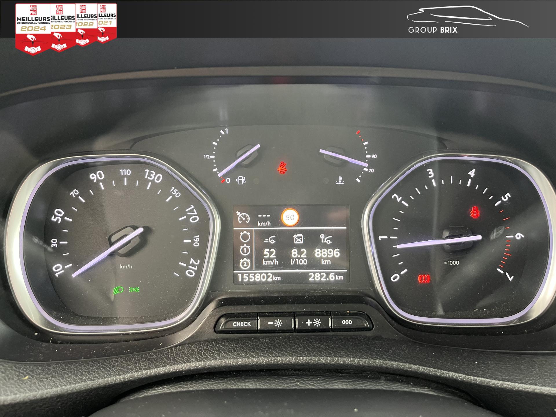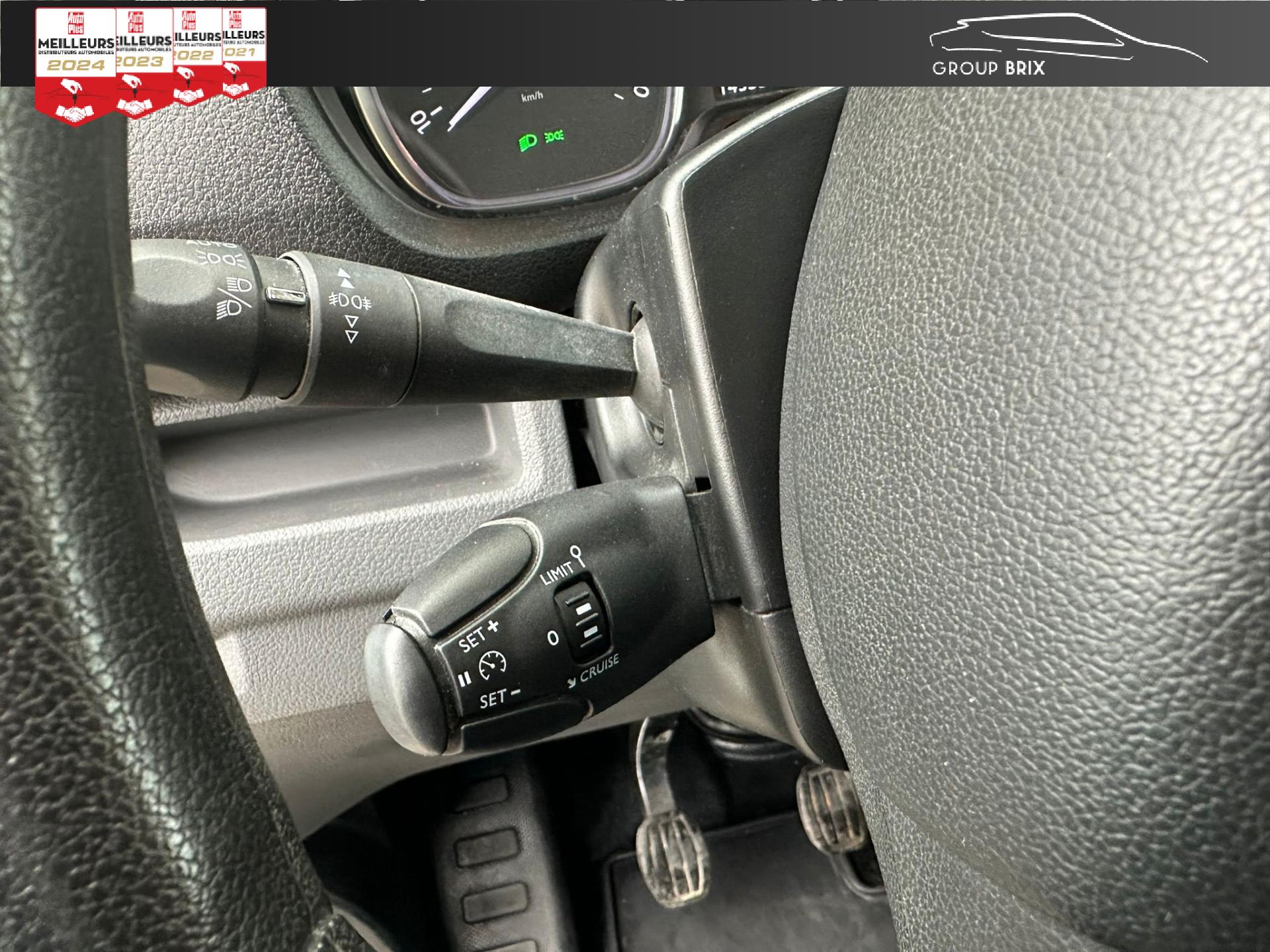 Bac de porte avantBaguettes latérales noires teintées masseBanquette passager 2 places avec rangement sous l'assiseCloison tôléeCoffee Break AlertPoignées de portes extérieures noires teintées masseRégulateur et limiteur de vitesseSiège conducteur avec accoudoir, réglage lombaire et hauteurTémoins de non-bouclage des ceintures conducteur et passager avantVolant réglable en hauteur et profondeur