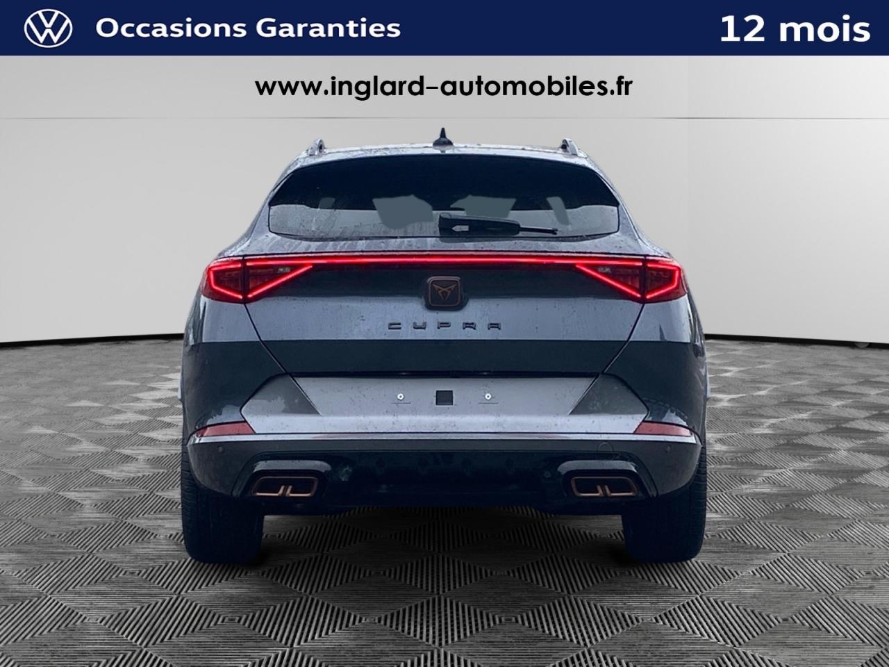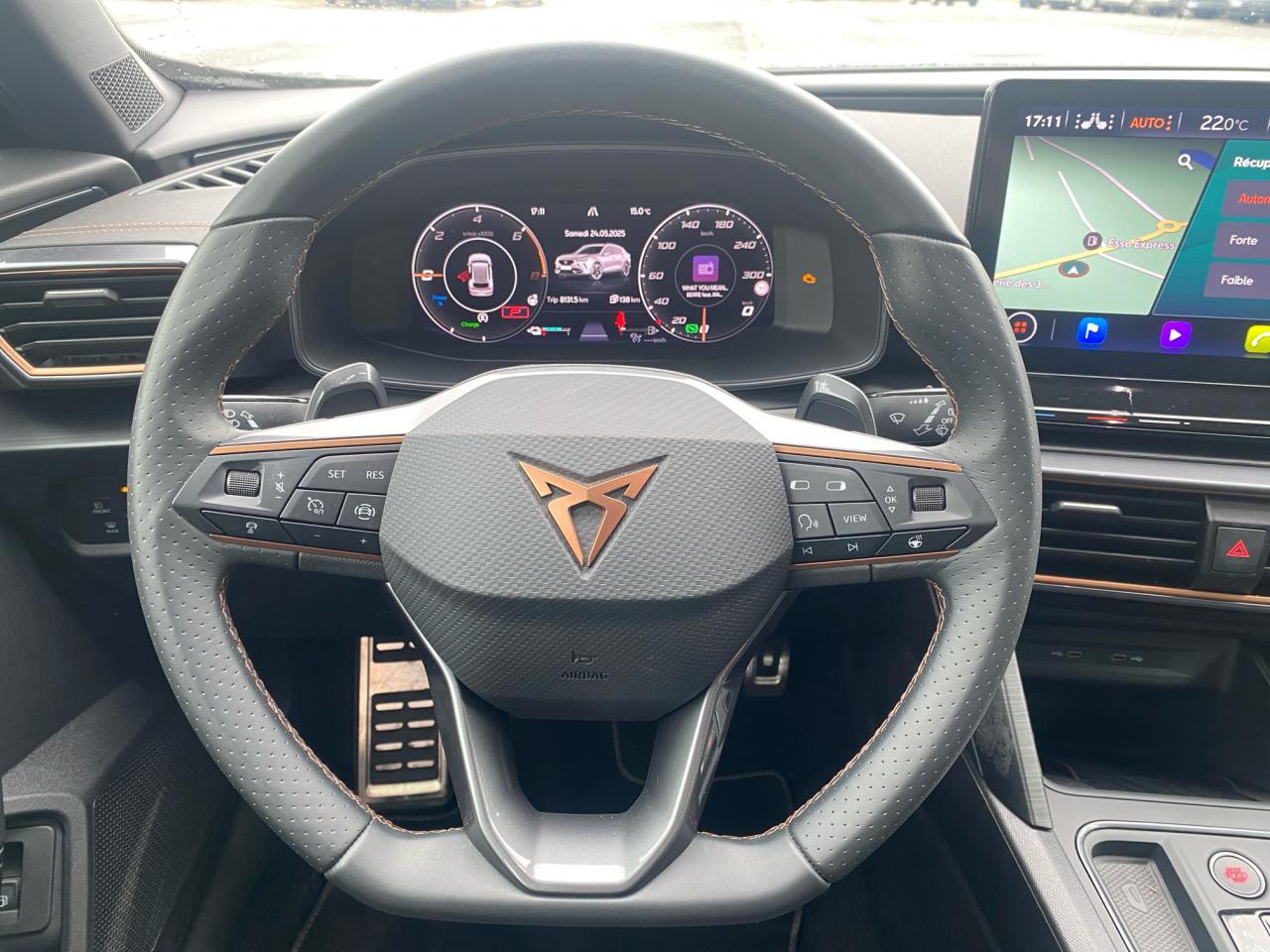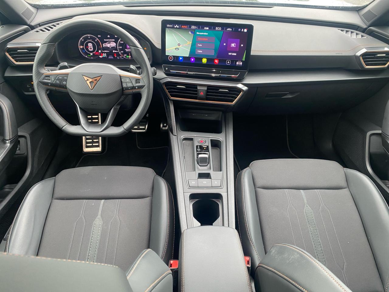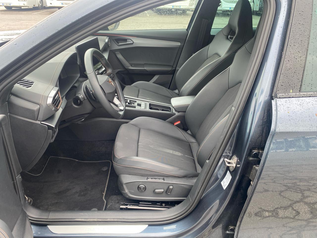 2 prises USB-C éclairées à l'AV et 2 à l'ARAccès et démarrage mains-libresAccoudoir centralAide au stationnement arrièreAirbag central avantAirbags latérauxAirbags rideauxAppel d'urgence - EcallBandeau arrière "Infinite Light" à LED avec clignotants à défilement et cérémonie de bienvenueCâble de recharge pour prise domestiqueCaméra de reculCiel de pavillon noirClimatisation automatique Climatronic tri-zoneConnectivity Box avec chargeur à inductionContre-portes en similicuir noir surpiquéCouleur contrastante Dark Alu (soubassements, élargisseurs d'ailes et coques de rétroviseurs)CUPRA BoxCupra connect Media & InternetDétecteur de pluie et allumage automatique des projecteursDigital Cockpit : combiné d’instruments digital haute résolution couleur de 10,25"Direction dynamiqueDossier AR rabattable 2/3 - 1/3Double-sortie d'échappement Copper styliséeEclairage d'ambiance intérieur intelligentEclairage de bienvenue avec projection du logo CUPRA au solFeux de route intelligentsFixations Isofix et Toptether aux sièges arrièreJante alliage 19" Black SilverLampes de lecture à l'avant et à l'arrièreMiroirs de courtoisie éclairés conducteur et passagerPack Drive Assist LPack extérieur Cupra avec entourages de vitres Noir PianoPack intérieur Copper avec inserts Dark AluPark Assist avec aide au stationnement avantProjecteurs antibrouillard avec Cornering Light et Coming HomeProjecteurs Full LEDRadio Numérique DABRails de toit Noir PianoRéglage en hauteur et lombaire des sièges avantRégulateur de vitesse adaptatif et prédictif 'ACC' jusqu’à l’arrêt completRégulation adaptative du chassis DCCRétroviseur intérieur électrochromeSeuils de porte CUPRA rétro-éclairésSièges baquets Cupra en textile Noir avec réglage électrique conducteur avec mémoireSign Assist (reconnaissance des panneaux de signalisation)Système audio 7 HP avec contrôle vocal "Hola Hola"Système de navigation 3D sur écran tactile HD 12"Tapis de sol spécifiques Premium CupraVitres arrière surteintéesVolant sport multifonction chauffant en cuir avec palettes