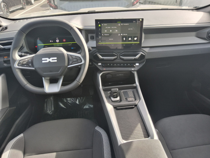 Airbag AV conducteur et passagerAirbag passager deconnectableAirbags lateraux AV et rideauxAlerte franchissement de ligne et assistant maintien dans la voieAllumage des feux automatique et essuie-glace automatiquesAntenne requinAppel SOS (E-call)Avertissement distance de securiteBanquette AR 40/20/40 et fonction Easy Fold 60/40Barres de toit longitudinalesBoite de vitesse automatique 6Boucliers ton carosserieCamera de reculCarte mains libresClimatisation automatique bi-zoneCommutation automatique feux de croisement/routeConsole Centrale avec porte-gobelets, accoudoir et rangement refrigereCoques de retroviseurs Gris MegalitheDetection de perte de pression des pneusFeux de croisement a LEDFrein de parking electriqueJantes alliage diamantees 18'' TAGASANKit de gonflageLeve-vitres AR electriquesLeve-vitres AV electriquesMedia Nav Live ( Navigation avec trafic en temps reel + Systeme audio 3D Arkamys, 6HP, ecram 10,1")Mode ecoMy Safety Switch (bouton de deconnexion des aides a la conduite)Peinture opaquePlancher de coffre platPrise 12V coffreRadars de reculRecharge smartphone par inductionReconnaissance des panneaux de signalisation avec alerte de survitesseRegulateur de vitesse adaptatifRepetiteurs lateraux a LEDRetroviseur interieur jour/nuitRetroviseurs exterieurs electriques, degivrants et rabattable electriquementSellerie tissu avec logo DaciaSiege conducteur semi - electriqueSignature lumineuse en "Y" a LEDSysteme anti-blocage des roues (ABS)Systeme de controle de traction (TCS)Systeme de controle de trajectoire (ESC) et aide au demarrage en coteSysteme de fixation IsofixSysteme de freinage d'urgence avance (pieton, deux-roues et intersection)Systeme de surveillance de l'attention du conducteurTableau de bord digital 10"Verrouillage centraliseeVitres AR surteinteesVolant reglable en hauteur et en profondeurVolant Soft Feel