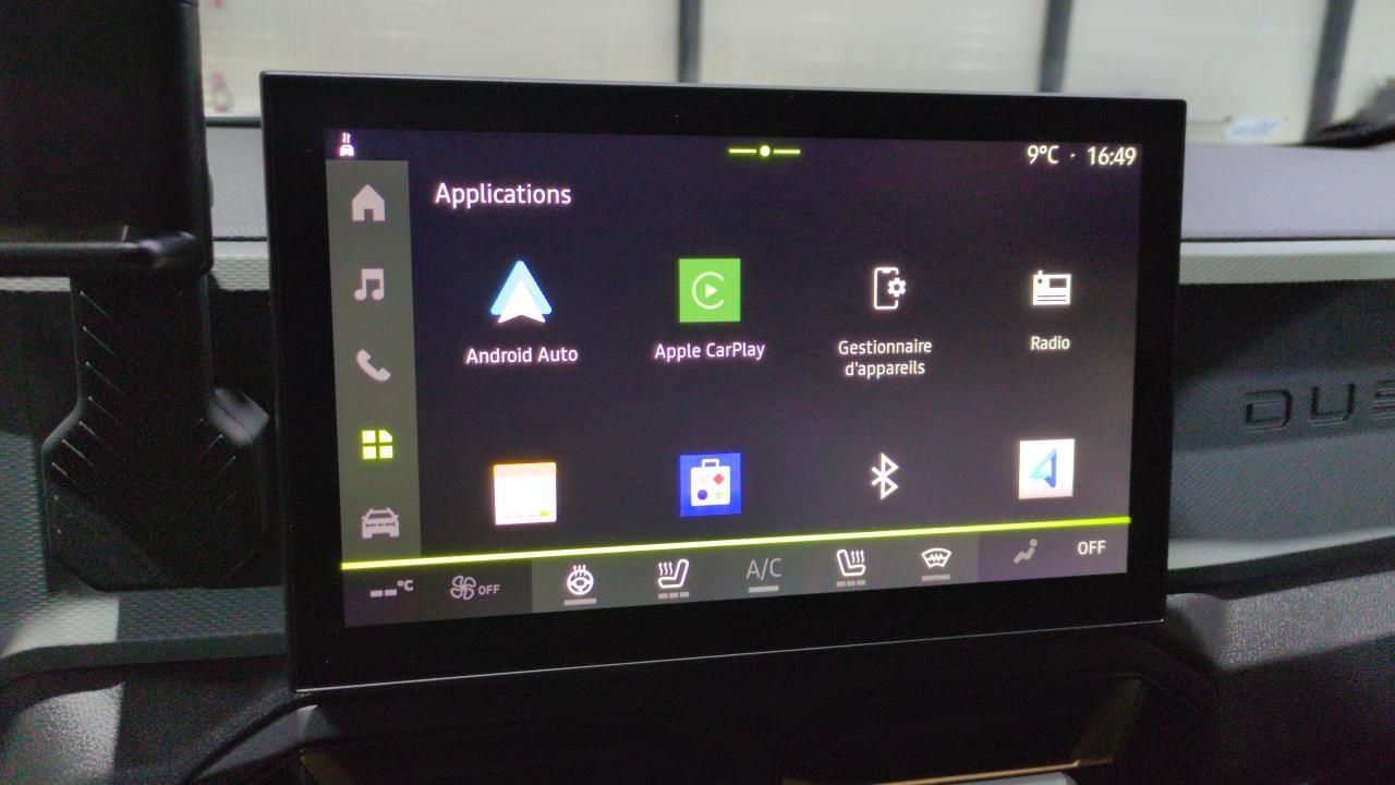 1'' + 4 hp + réplication smartphone sans filAirbag av conducteur et passagerAirbag passager déconnectableAirbags latéraux av et rideauxAlerte franchissement de ligne et assistant maintien dans la voieAllumage des feux automatique et essuie-glace automatiquesAvertissement distance de sécuritéAvertisseur d'angles mortsBanquette ar rabattable 40/60Barres de toit modulablesBoîte de vitesse automatique 6Boucliers ton carosserieCaméra multiview Climatisation automatiqueCommutation automatique feux de croisement/routeConsole centrale semi haute avec accoudoirContrôle de trajectoire en descente avancéCoques de rétroviseurs brun cuivréDégivrants et rabattable automatiquementDétection de perte de pression des pneusDeux-roues et intersection)Direction assistéeEspFeux de croisement à ledJantes alliage semi-diamantées 17"Kit de gonflageLève-vitres ar électriquesLève-vitres av électriquesMedia display : ecran 10Media nav live : navigation avec trafic en temps réelMode écoMy safety switch (bouton de déconnexion des aides à la conduite)Ouverture du hayon manuellePack city : caméra multiview + avertisseur d'angles morts + radars av-arPack hiver : sièges av chauffants + volant chauffant + pare-brise chauffantPack techno : media nav live : navigation avec trafic en temps réel + recharge smartphone par induction + frein de parking électriquePare-brise chauffantPeinture opaque kaki lichenPrise 12v coffreProjecteurs antibrouillardRadars av-arReconnaissance des panneaux de signalisation avec alerte de survitesseRégulateur et limiteur de vitesseRépétiteurs latéraux à ledRétroviseur intérieur jour/nuitRétroviseurs extérieurs électriquesSellerie tep "microcloud"avec logo daciaSiège passager réglable en hauteur + lombaire conducteurSièges av chauffantsSignature lumineuse en "y" à ledSystème anti-blocage des roues (abs)Système de contrôle de traction (tcs)Système de fixation isofixSystème de freinage d'urgence avancé (piétonSystème de surveillance de l'attention du conducteurTableau de bord numérique 7"Vitres ar surteintéesVolant chauffantVolant réglable en hauteur et en profondeurVolant soft feel