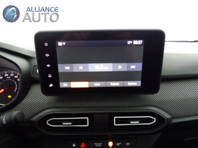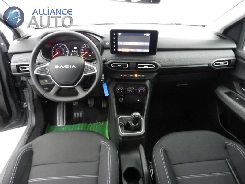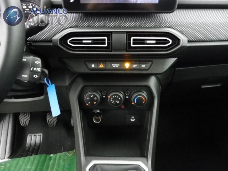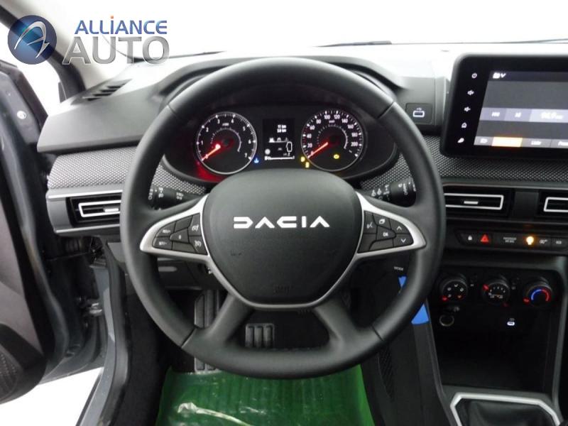 33 -23 appui-têtes ARAide au parking ARAirbag frontal conducteur et passagerAirbag frontal passager désactivableAirbag latéral AV : thorax + rideauAlerte franchissement de ligne et assistant maintien dans la voieAllumage des feux et essuie-glace automatiquesAssistance au freinage d'urgence + allumage des warningsBanquette AR avec dossier rabattable en portefeuille 1Barres de toit modulablesBoîte de vitesse manuelleBouton appel d'urgence E-callClé 3 boutonsClimatisation manuelleCluster TFTCondamnation centralisée des portesCondamnation des ouvrants en roulantConsole basse + rangement ouvertDétection de pression des pneusDirection assistéeEclairage du coffreEclairage plafonnier AREnjoliveur 16'' ATARAEnjoliveurs bas de porte coffreFeux anti brouillardFeux de jour à LEDFiltre à particulesKit de gonflageLève-vitre conducteur électrique impulsionnelLève-vitres AR électriquesMedia display (écran 8'', réplication smartphone, 4 haut-parleurs, 1 port USB)Mode éconuitOrdinateur de bordPeinture opaquePrédisposition EthylotestPrise accessoire en rang 3Régulateur de vitesseRétroviseur intérieur jourRétroviseurs extérieursRétroviseurs extérieurs réglables électriquement + dégivrantsRappel de bouclage de ceinturesReconnaissance des panneaux de signalisation avec alerte de survitesseSellerie avec surpiqures grisesSiège conducteur réglable en hauteur + accoudoir AVSignature lumineuse DACIA en Y à LEDSystème anti-blocage des roues (ABS)Système de contrôle de traction (TCS)Système de contrôle de trajectoire (ESC) et aide au démarrage en côteSystème de fixation IsofixSystème de freinage d'urgence avancé (pieton, deux-roues et intersection)Système de surveillance de l'attention du conducteurVitres, portes AR, custode et lunette AR surteintéesVolant réglable en hauteur et en profondeurVolant Soft Feel TEP