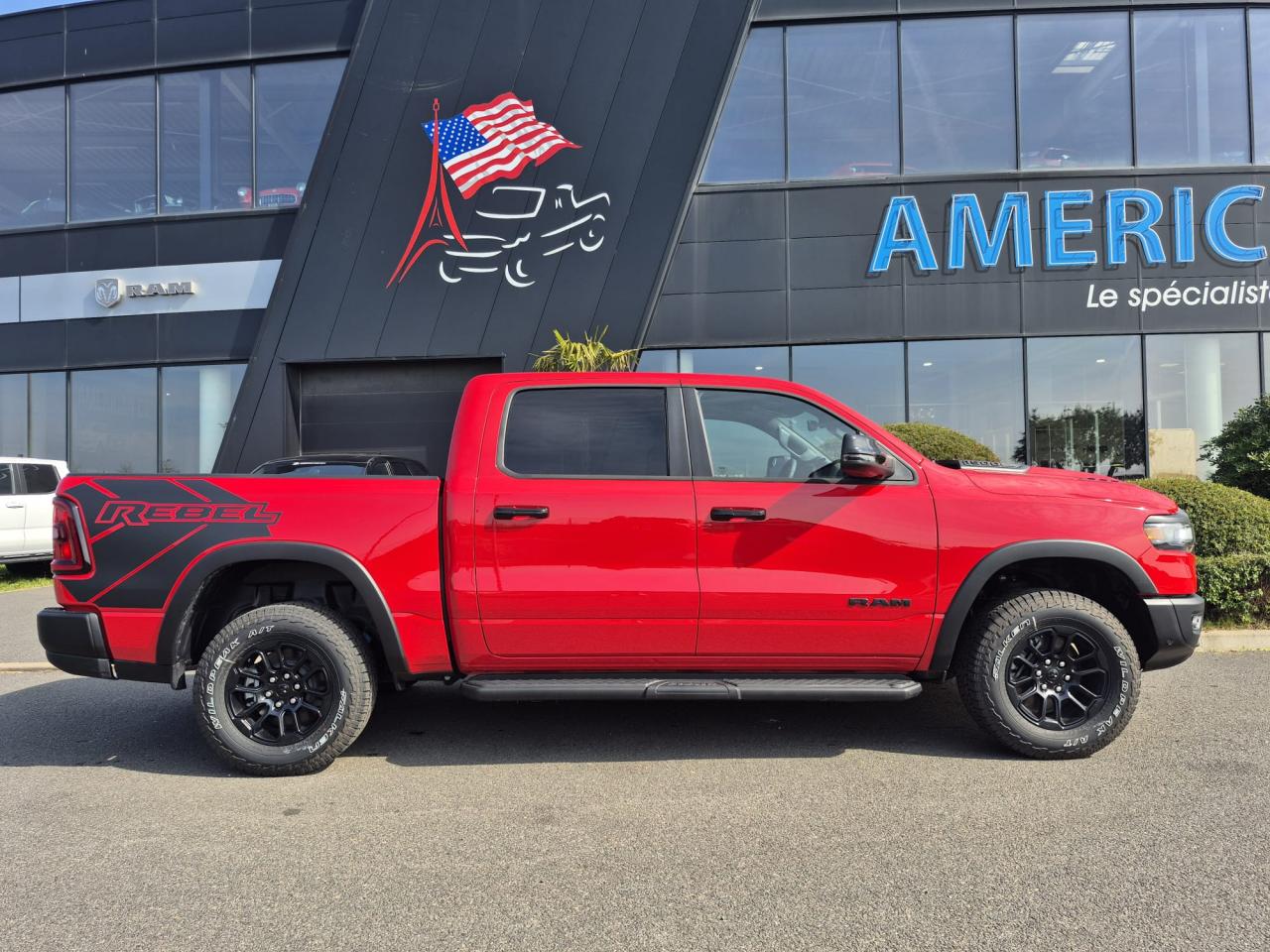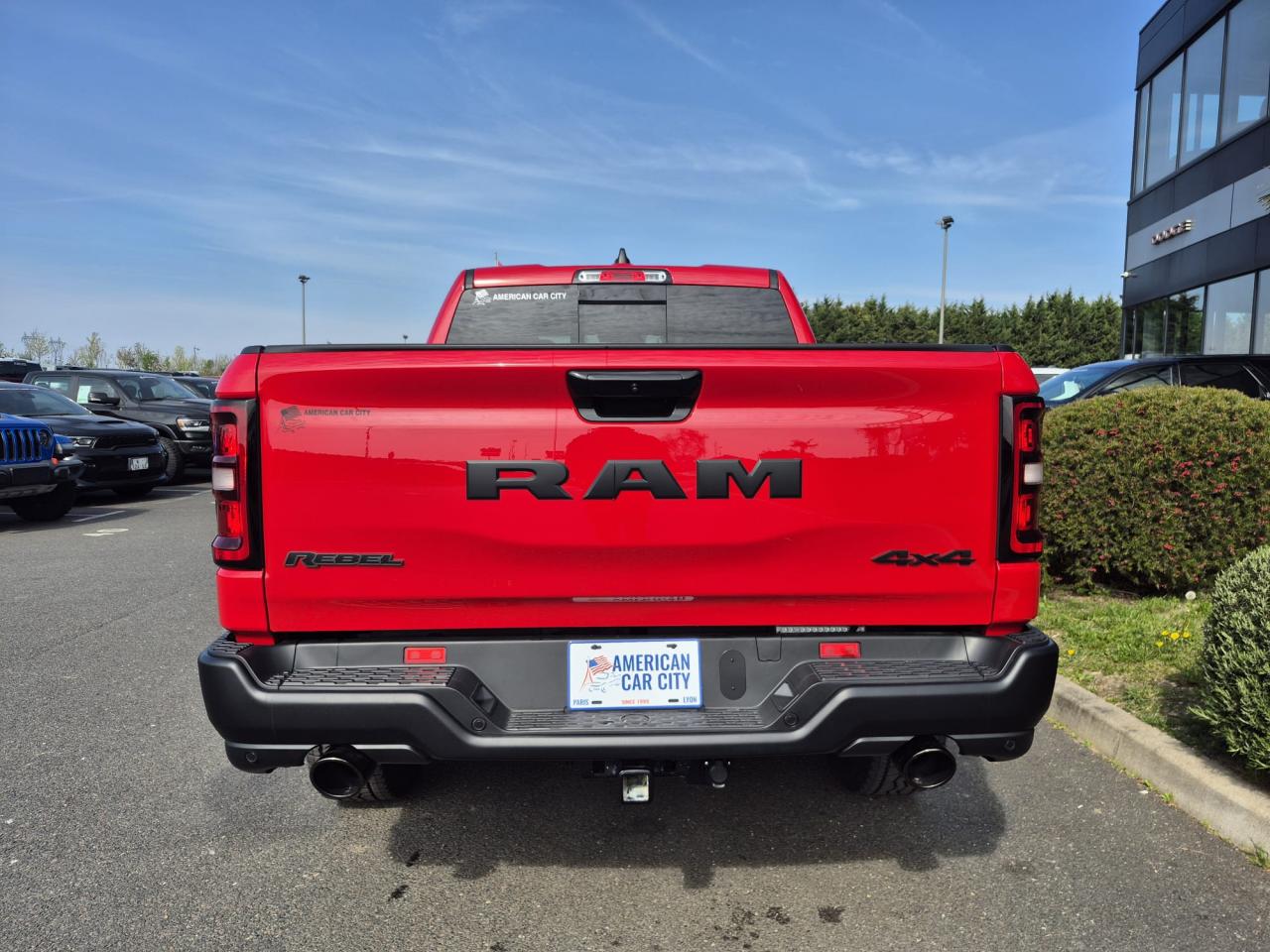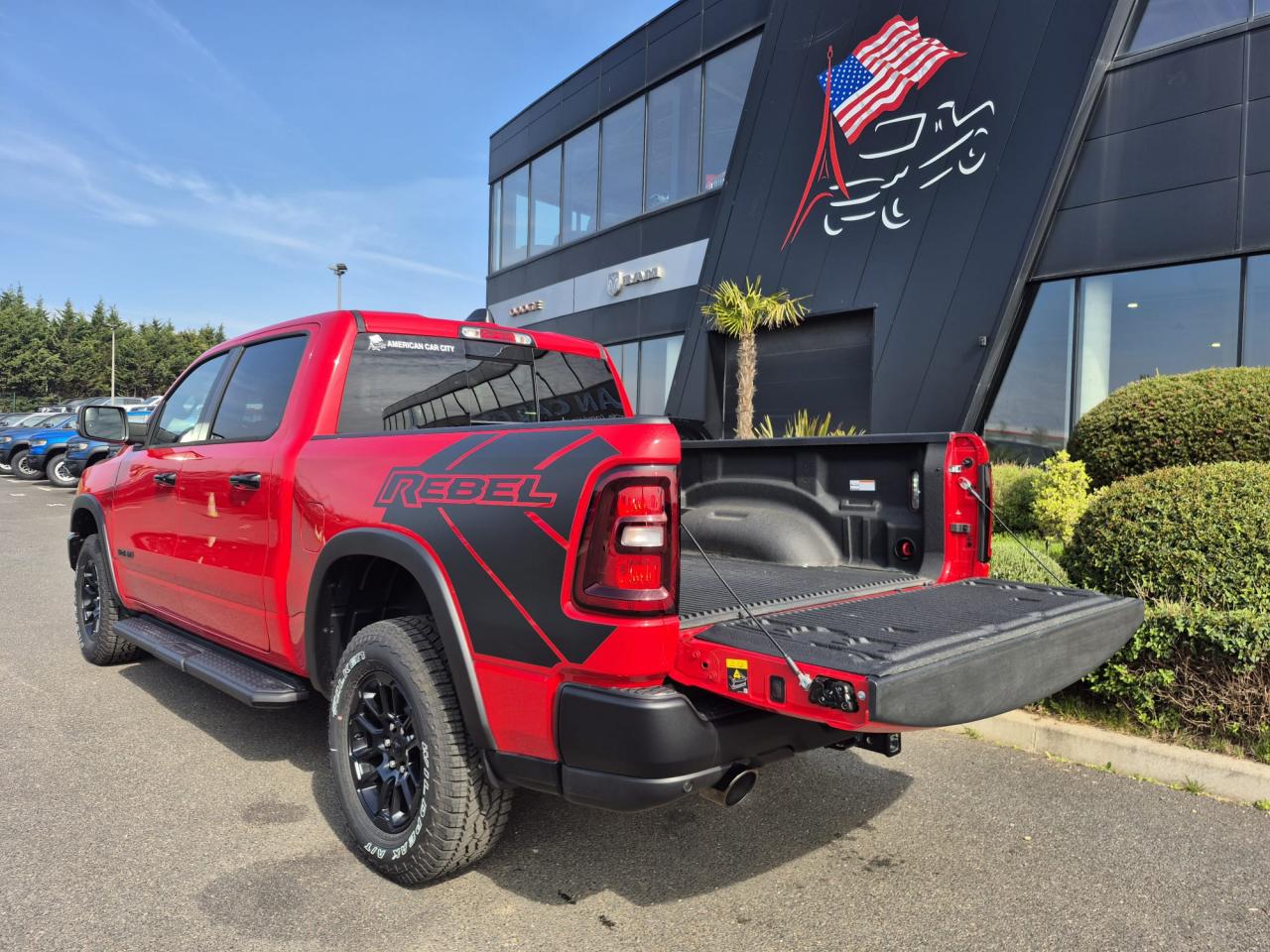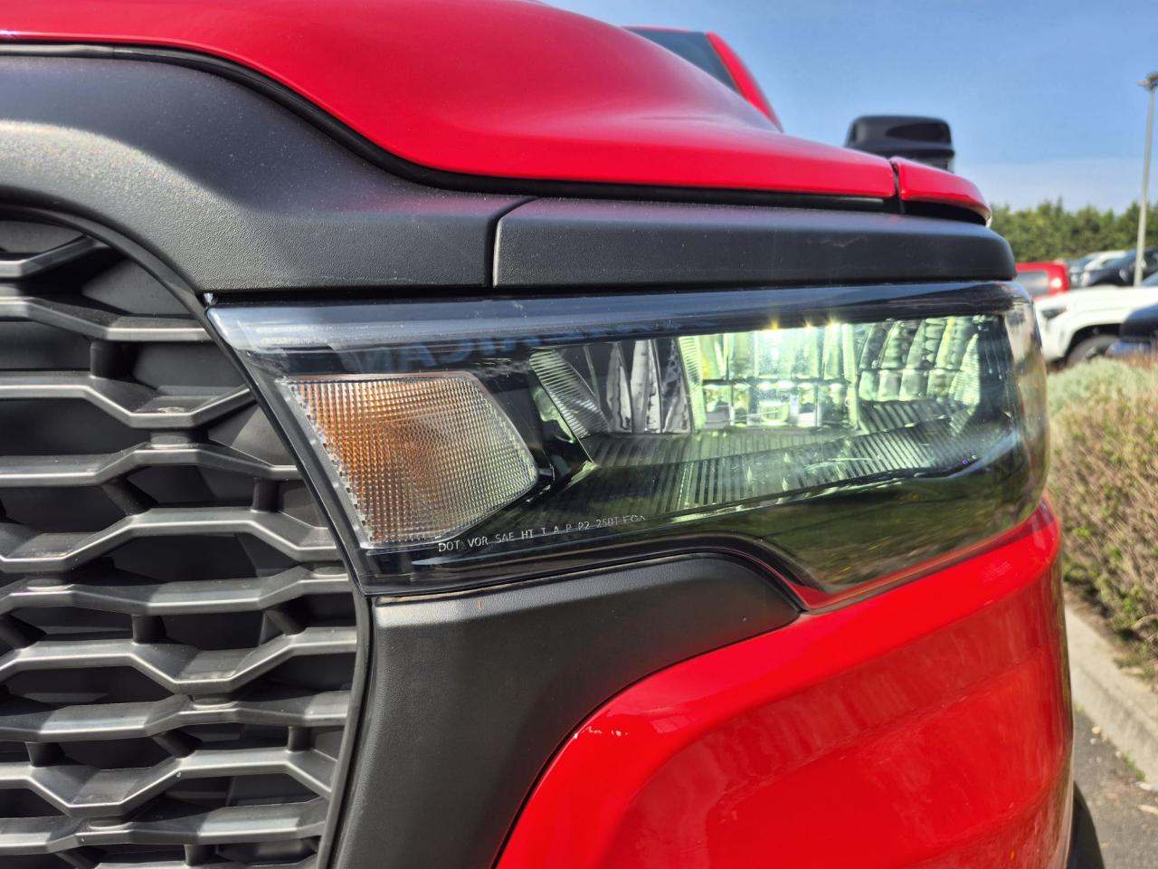 Peinture métallisée Flam Red clear coat / Peinture monotone / Capot sport performance / Calandre noire texturée / Logo RAM noir / Badging extérieur noir / Coques de rétroviseurs noires / Rétroviseurs extérieurs électriques premium couleur carrosserie / Rétroviseurs chauffants / Rétroviseur conducteur électrochrome / Rétroviseurs avec mémoire / Rétroviseurs rabattables électriquement / Éclairage de courtoisie des rétroviseurs / Éclairage d’approche / Lunette arrière coulissante électrique / Dégivrage de lunette arrière / Vitres arrière surteintées / Vitres teintées / Toit ouvrant panoramique double panneau /