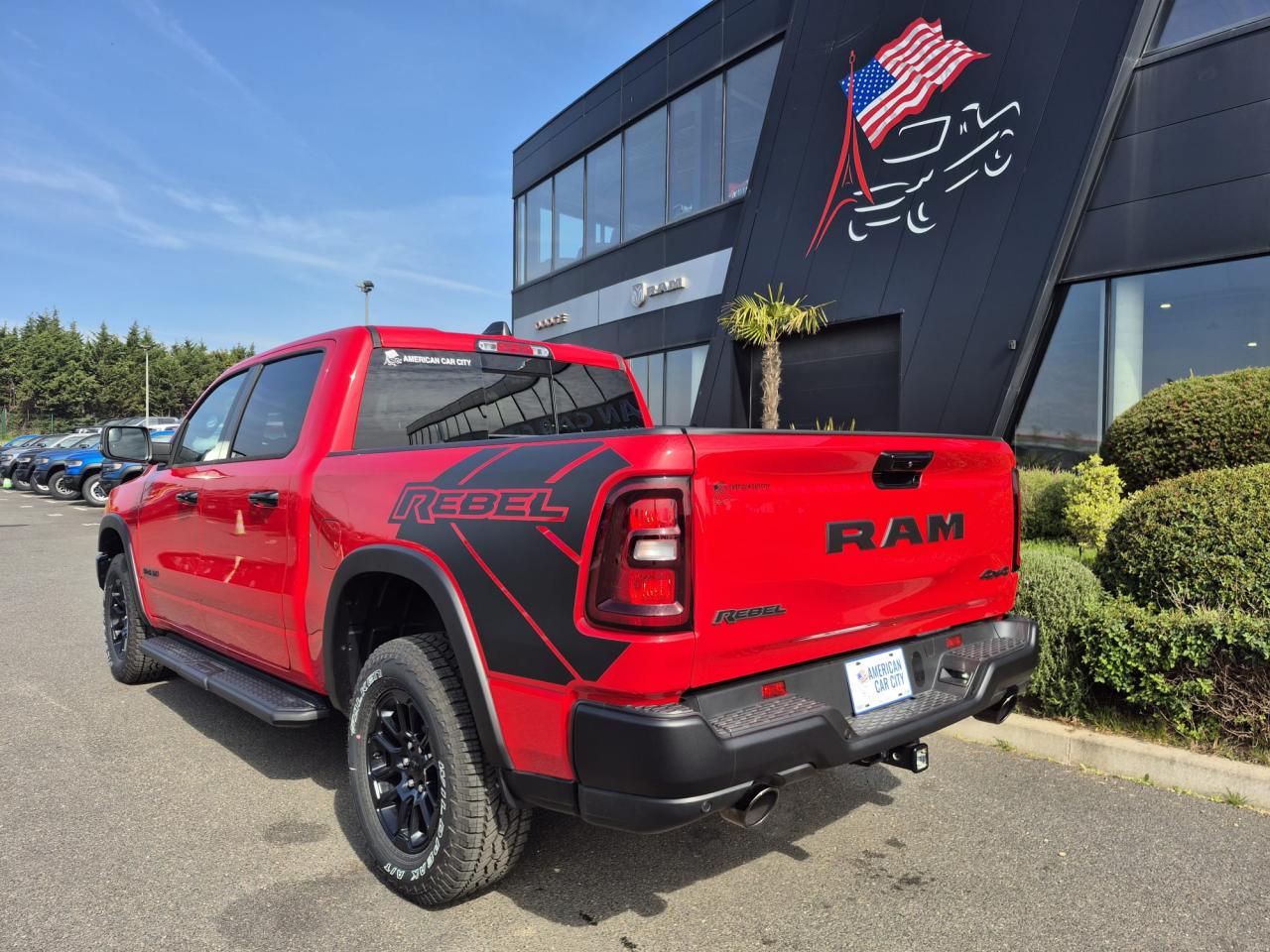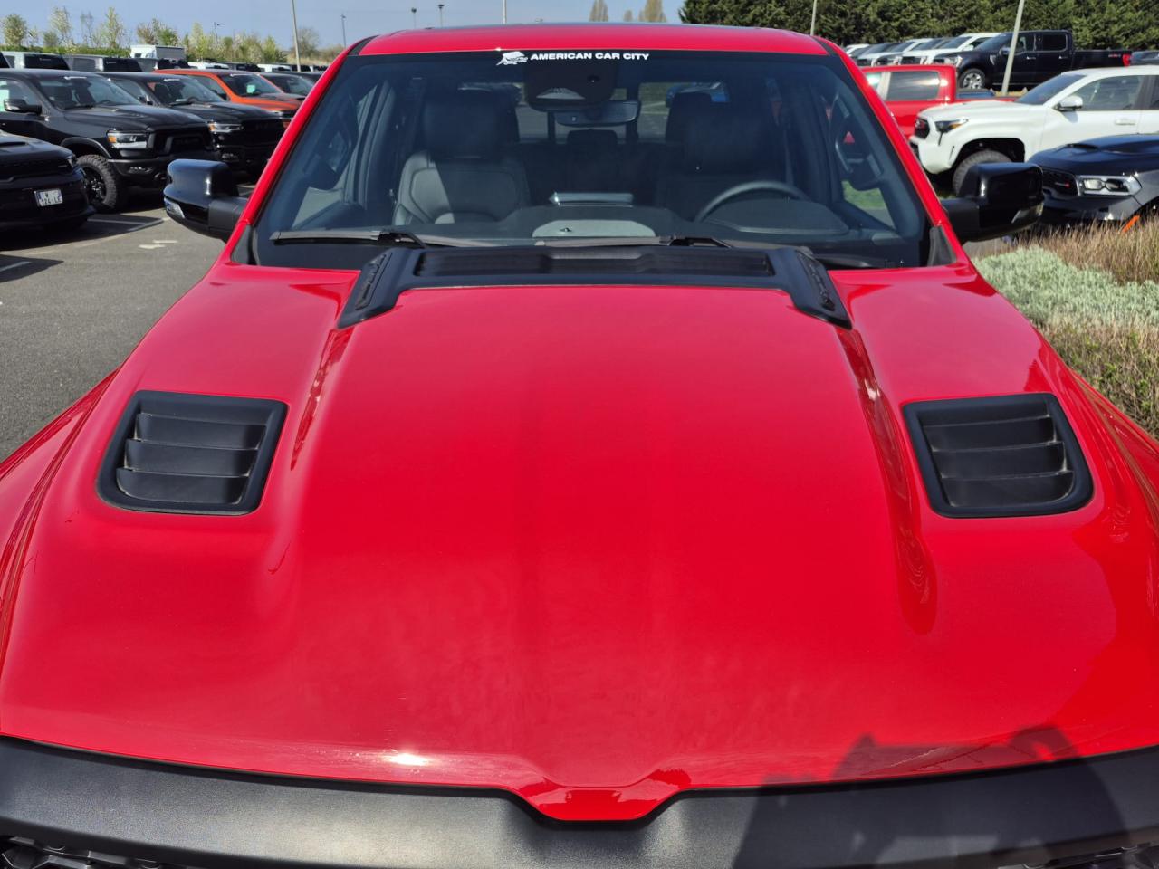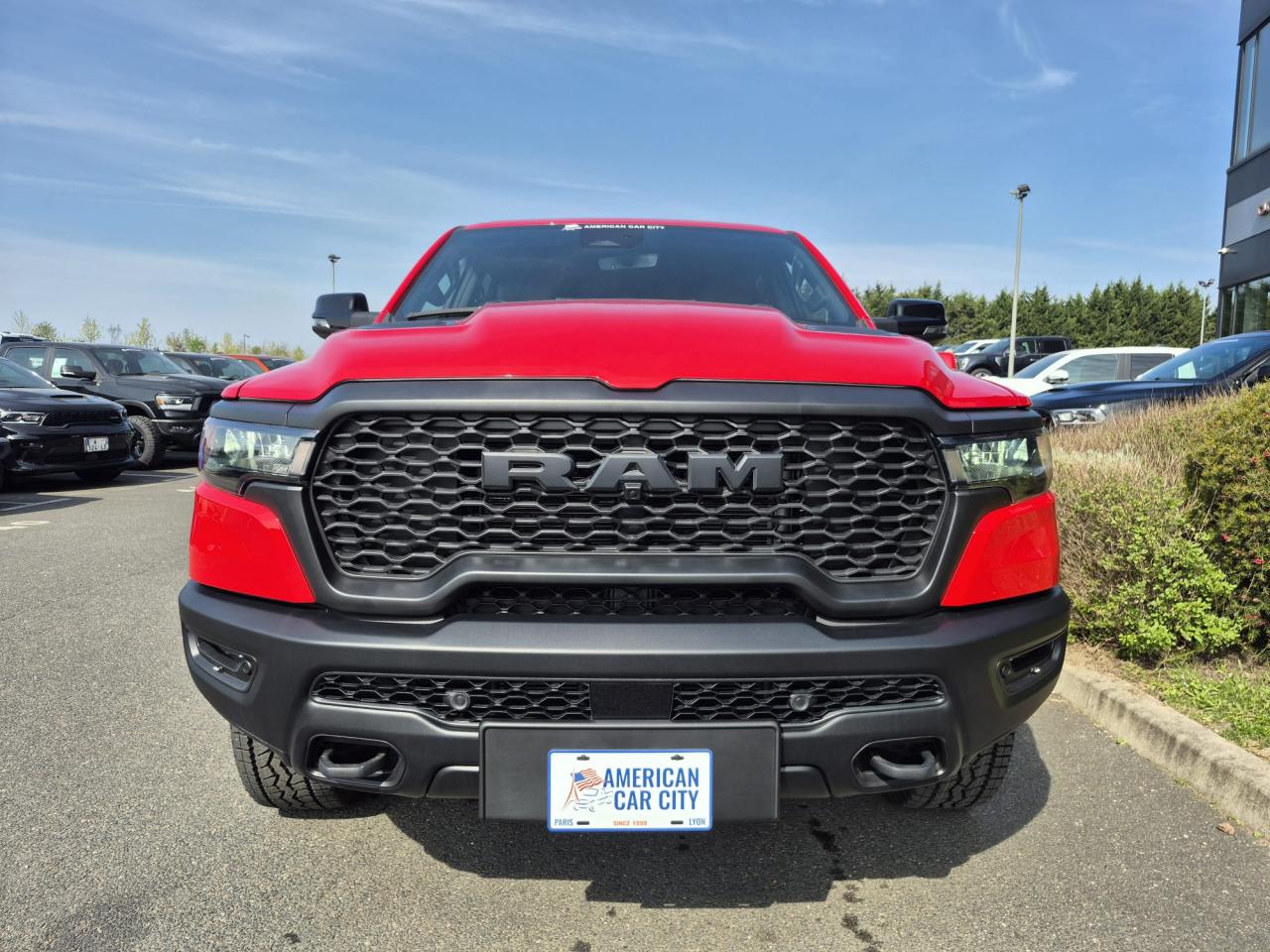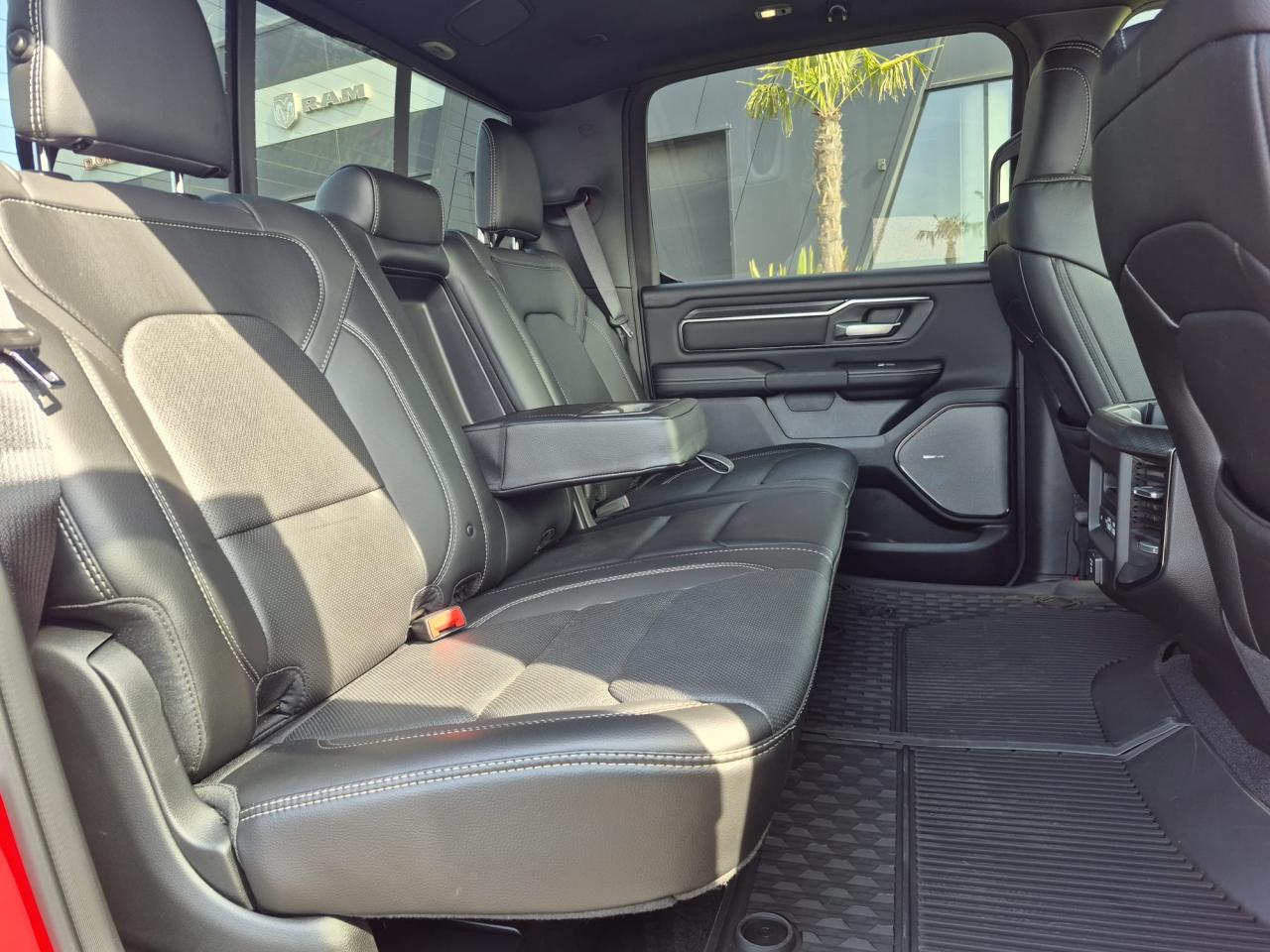 Peinture métallisée Flam Red clear coat / Peinture monotone / Capot sport performance / Calandre noire texturée / Logo RAM noir / Badging extérieur noir / Coques de rétroviseurs noires / Rétroviseurs extérieurs électriques premium couleur carrosserie / Rétroviseurs chauffants / Rétroviseur conducteur électrochrome / Rétroviseurs avec mémoire / Rétroviseurs rabattables électriquement / Éclairage de courtoisie des rétroviseurs / Éclairage d’approche / Lunette arrière coulissante électrique / Dégivrage de lunette arrière / Vitres arrière surteintées / Vitres teintées / Toit ouvrant panoramique double panneau /