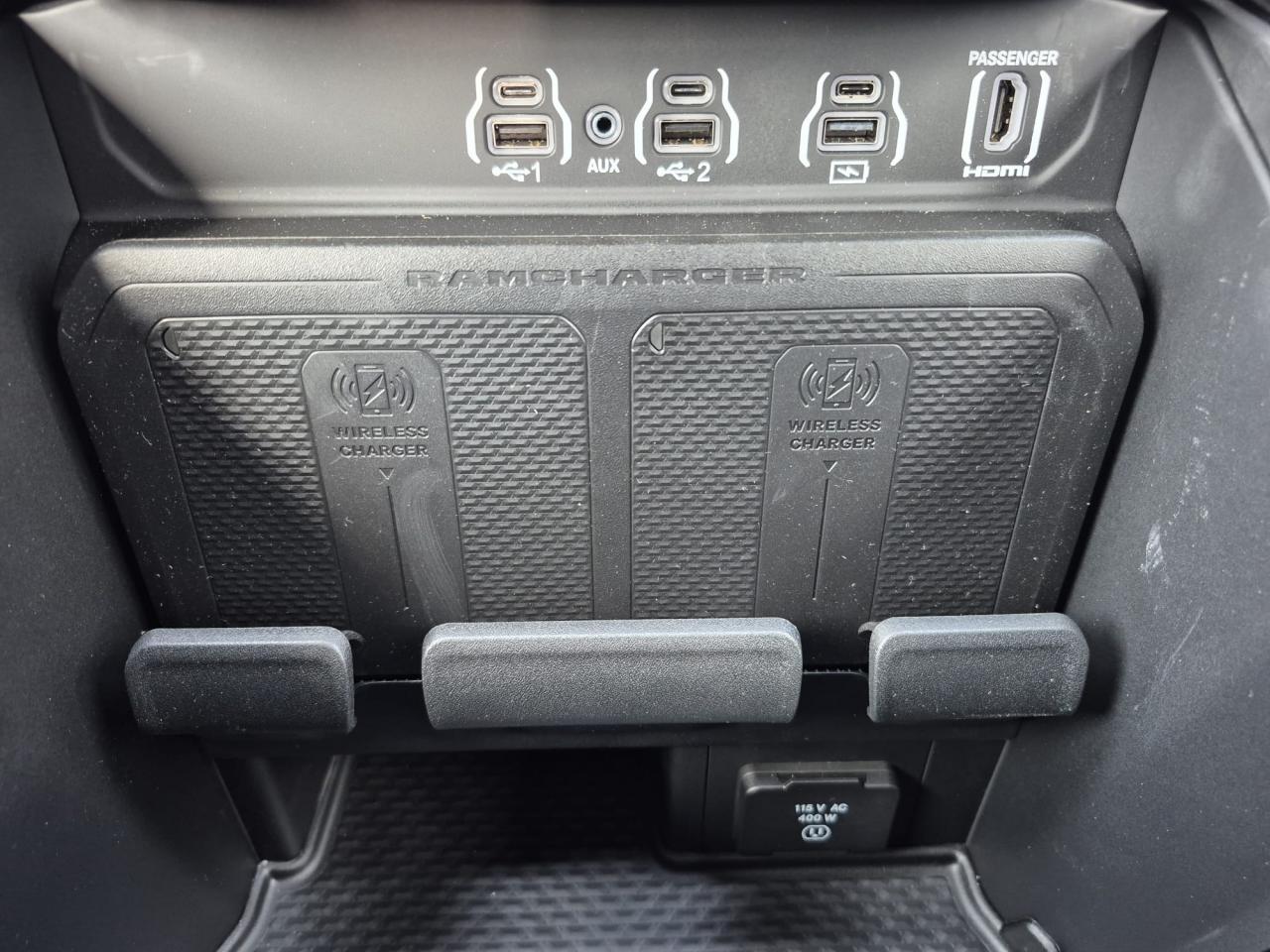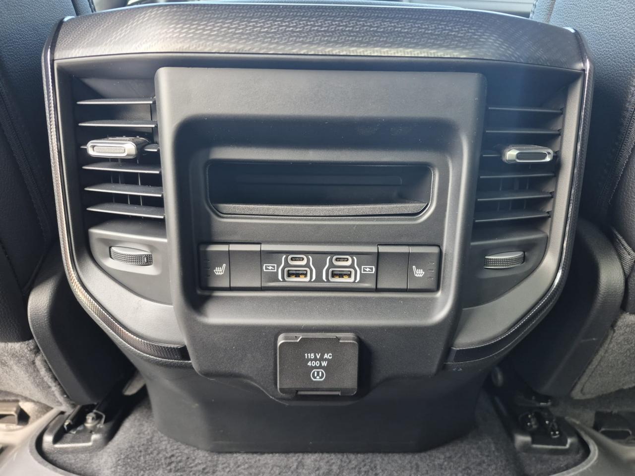 Démarrage sans clé / Accès et ouverture sans clé / Démarrage à distance / Vitres électriques avant impulsionnelles / Verrouillage centralisé automatique / Boîte à gants verrouillable / Éclairage d’accueil / Alerte pression des pneus / Ordinateur de bord / Antenne aileron de requin / Hayon verrouillable / Hayon amorti / Trappe à carburant sans bouchon / Tapis de sol caoutchouc Mopar / Anneaux d’arrimage dans la benne / Protection de benne Mopar / Marchepieds tubulaires noirs Mopar /