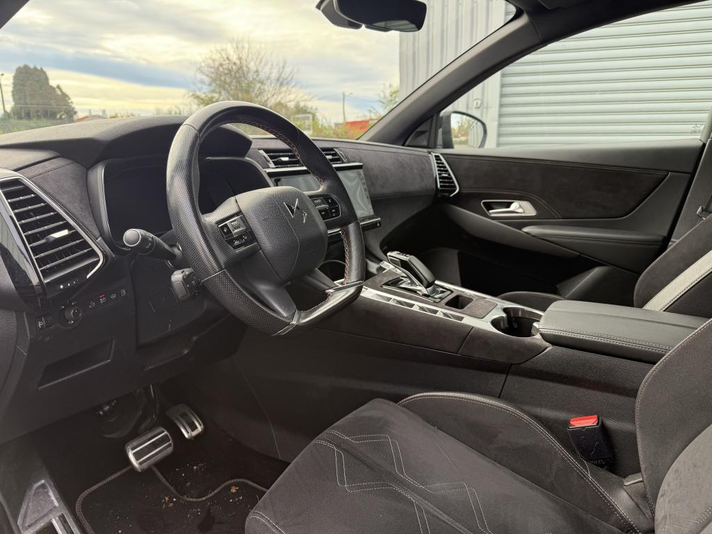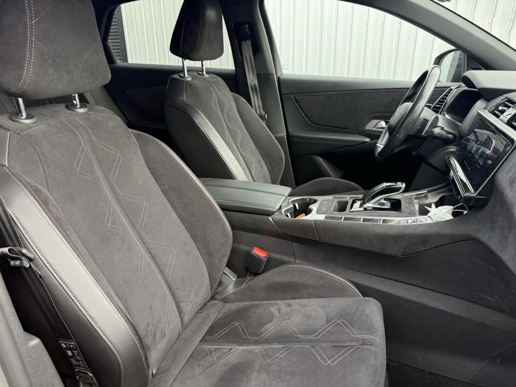 ABS avec répartiteur électronique de freinage (REF)Accès et démarrage mains-libresAide au démarrage en côteAide au stationnement avant et arrière + caméra de reculAllumage automatique des projecteursChargeur embarqué 3,7kWClimatisation automatique bi-zoneContrôle dynamique de stabilité (ESP) avec antipatinage des roues (ASR)DS Active scan suspensionDS IRIS SYSTEMDS LIGHT VEILDS PIXEL LED VISION 3.0Frein de stationnement électrique automatiqueIntérieur DS Alcantara Noir profondJantes alliage 19'' SILVERSTONELève-vitres électriques avant et arrière, séquentiels et antipincementMirror Screen sans fil via WifiNavigation 3DNavigation et Radio Numérique DABRétroviseur extérieur passager indexé au passage de la marche arrièreRétroviseur intérieur électrochrome sans contourRétroviseurs extérieurs électriques et dégivrantsRétroviseurs extérieurs rabattables électriquement avec projection au sol du logo DSSièges avant électriques
