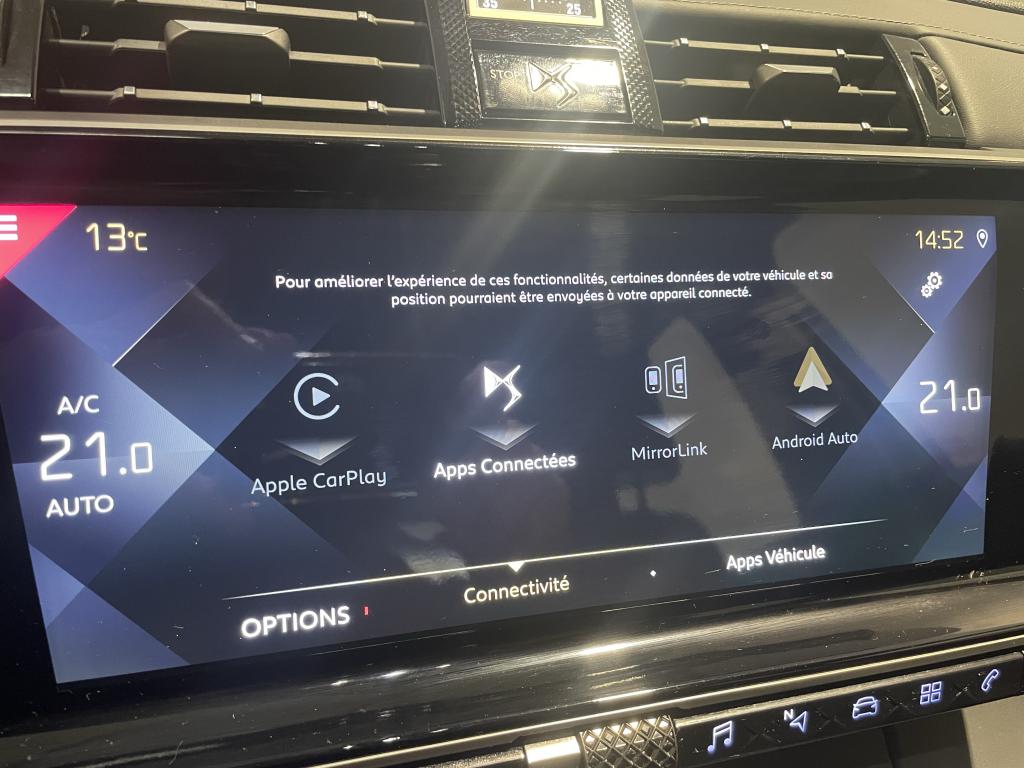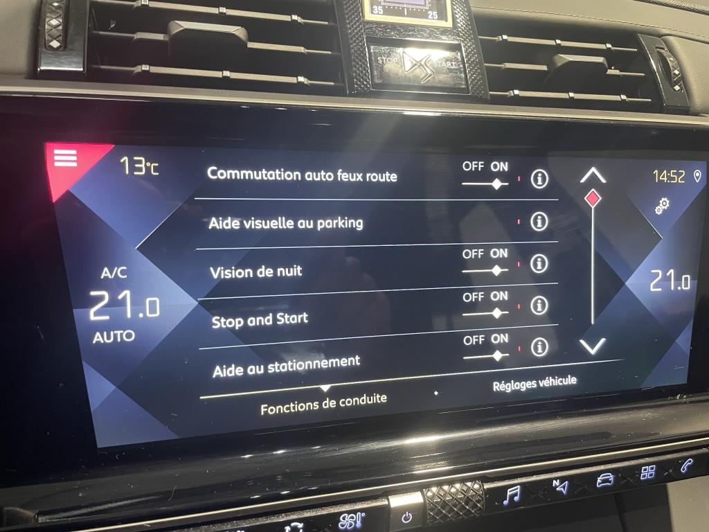 2 prises USB ARAllumage automatique des projecteursBanquette arrière 2/3 - 1/3 et 3 appuie-têtes, inclinable électriquementBanquette arrière rabattable depuis le coffreCombiné numérique 12"DS Connect NavEcran tactile 12"Feux diurnes à LEDFixations Isofix pour places latérales arrièreFrein de stationnement électrique automatiqueJantes alliage 18" BUENOS AIRESLève-vitres électriques avant à commande séquentielle et anti-pincementMirror ScreenPack Auto ConfortPalettes au volantPrise USB avantRégulateur et limiteur de vitesseRétroviseurs extérieurs électriques et dégivrants avec sonde de températureRétroviseurs extérieurs rabattables électriquement avec projection au sol du logo DSReconnaissance des panneaux de vitesse et préconisationSystème Audio Analogique à 8 HP avec prise USB et Bluetooth