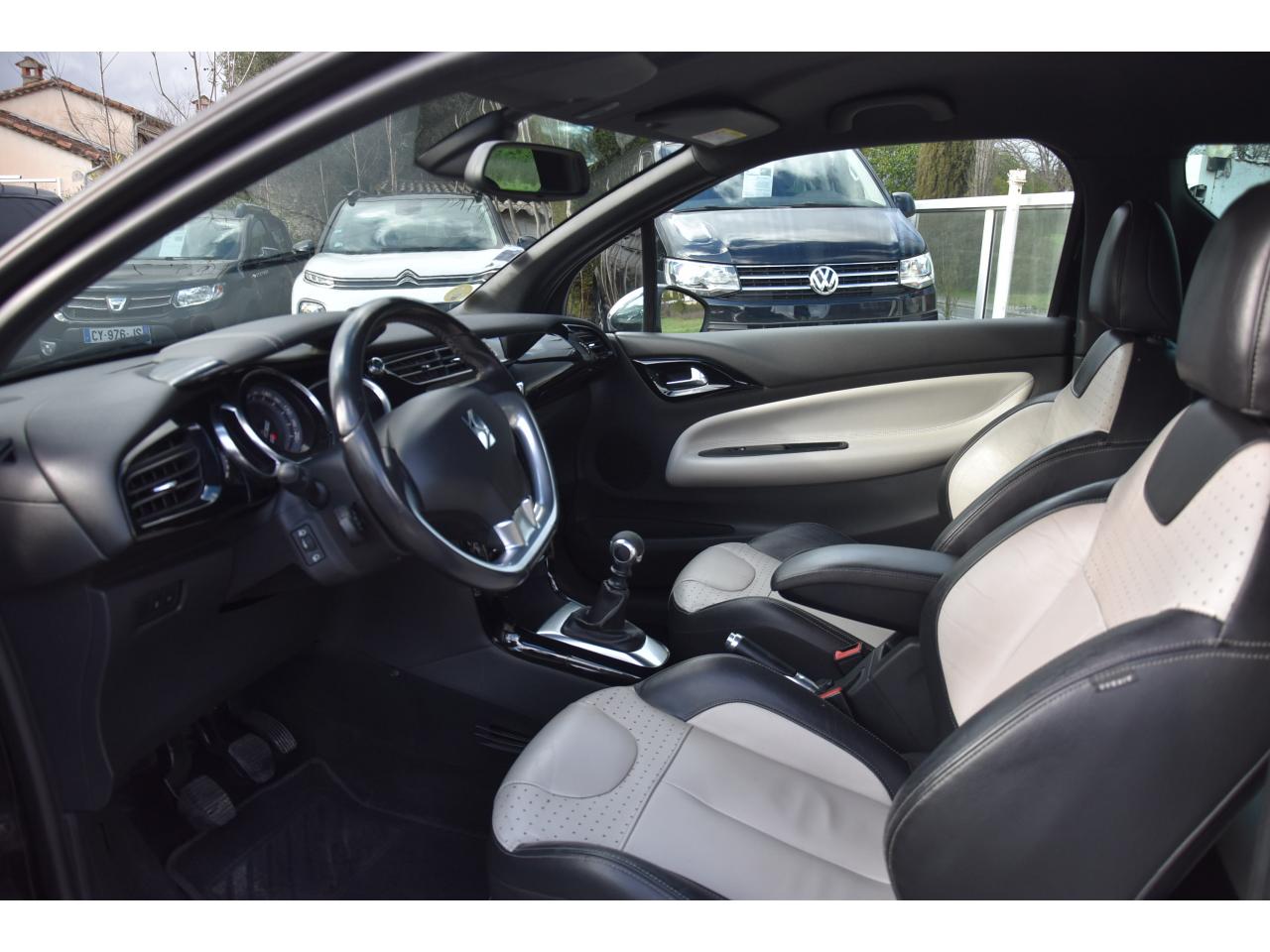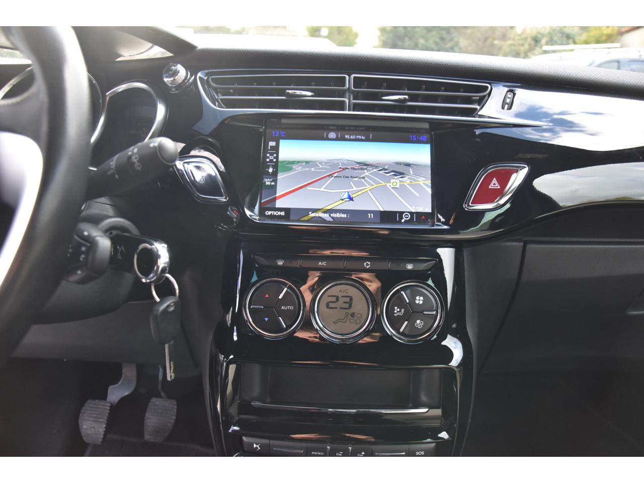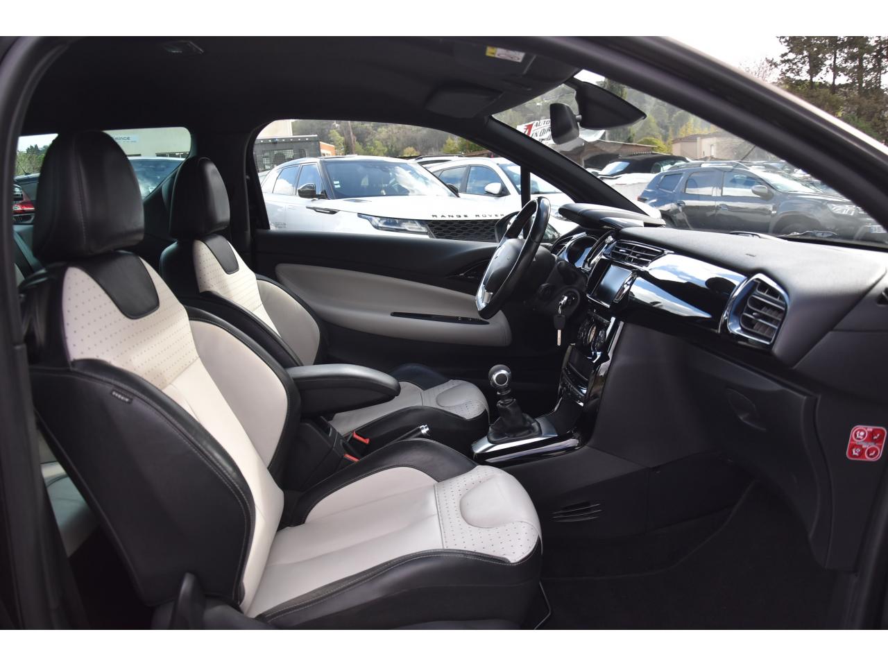 ABS avec répartiteur électronique de freinage (REF) et aide au freinage d'urgence (AFU)Active City Brake (freinage automatique urbain)Aide au démarrage en côteAide au stationnement avant/arrièreAirbags frontaux conducteur et passager (déconnectable côté passager)Airbags latéraux type "thorax" pour conducteur et passager avantAirbags rideaux aux places avant et arrièreAppuie-tête avant et arrière règlables en hauteurBaguettes latérales chroméesBecquet Sport avec 3ème feu stop à LEDBoîte à gants éclairée et ventiléeCalandre DS Wings chroméeCondamnation automatique des portes et du volet arrière en roulantCondamnation centralisée avec télécommandeContrôle dynamique de stabilité (ESP)Détection de sous-gonflage des pneumatiquesDirection électrique à assistance variableDouble canules d'échappement chroméesDS Connect Box avec Pack SOS et assistance inclusEclairage d'ambiance : cave à pied et rangement de consoleFeux arrière 3D à LEDFeux diurnes à LEDFixations ISOFIX pour sièges enfants aux places latérales arrièreHiFi System (3ème voie centrale et un caisson de grave amplifié)Indicateur de changement de rapportIndicateur de température extérieureJantes alliage 17" BELLONE diamantées NoiresKit Décor intérieur Noir BrillantKit mains libres Bluetooth et prise USBLève-vitres électriques avant à fonction séquentiel et antipincement côté conducteurOrdinateur de bord multifonctionPack Select ConfortPack Select Perfo Tissu Dinamica Noir BasalteParfumeur d'ambiancePavillon bi-ton avec coques de rétroviseurs extérieurs couleur pavillonPieds de rétroviseurs extérieurs chromésPlip avec insert Jaune Pégase, Blanc, Brun Topaze, Noir ou Vert EmeraudePoignées extérieures des portes chroméesPrise 12 volts à l'avantProjecteurs DS LED VisionRégulateur et limiteur de vitesseRétroviseurs extérieurs réglables électriquementRoue de secours de type galetteSiège conducteur réglable en hauteurSièges conducteur et passager avant réglables en longueur et inclinaisonSurtapis aux places avant et arrièreSystème audio sur tablette tactile 7''Témoin et alerte de non bouclage / débouclage de ceinture conducteur et passager avantVolant cuir pleine fleur perforé avec insert chrome satinVolant réglable en hauteur et en profondeur
