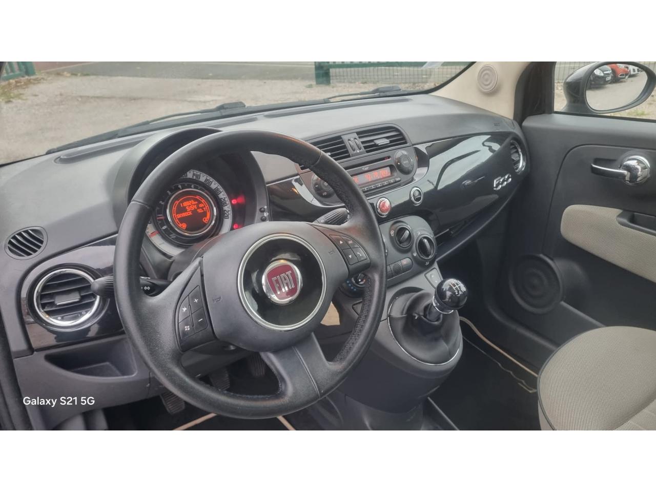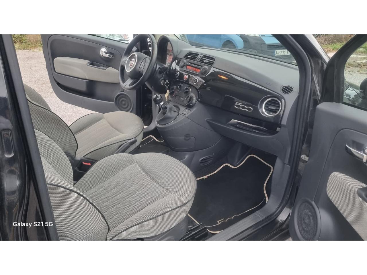 ABS – antiblocage des roues avec répartiteur de freinage EBDAir conditionné avec filtre à pollenAirbag Fiat de genouxAirbags fiat conducteur et passagerAirbags Fiat de toitAirbags latérauxAppuie-tête à l'avant, réglables en hauteurAssistance au freinage d'urgenceAttaches IsofixAutoradio CD MP3Banquette arrière rabattable 50/50 et appuie-tête arrièreBoucliers couleur carrosserieCommandes de l'autoradio au volant (8 fonctions) et volant gainé de cuir (lié au Blue&Me™)Commandes de l'autoradio au volant et volant gainé de cuirCondamnation automatique des ouvrants en roulantCondamnation centralisée à distanceDirection assistée Dualdrive avec fonction"City"Eclairage de coffreJantes en alliage 15” MultispokeKit Chrome : baguettes de vitres latérales, poignées de porte intérieures, inserts sur les pare-chocs et levier de vitesses chromésKit fumeurLogo “500” sur la planche de bordPoignée de maintien intérieurePoignées de porte chroméesProjecteurs antibrouillardRangement sous l'assise passagerRétroviseurs électriques couleur carrosserie et indicateur de température extérieureRétroviseurs extérieurs électriques couleur carrosserie dégivrantRoue de secours “galette”Siège conducteur réglable en hauteurSystème Blue&Me avec fonction eco:Drive - Bluetooth pour téléphonie mains libres et connexion USB pour MP3Toit vitré panoramique fixe avec pare-soleilVitres avant électriquesVolant réglable en hauteur