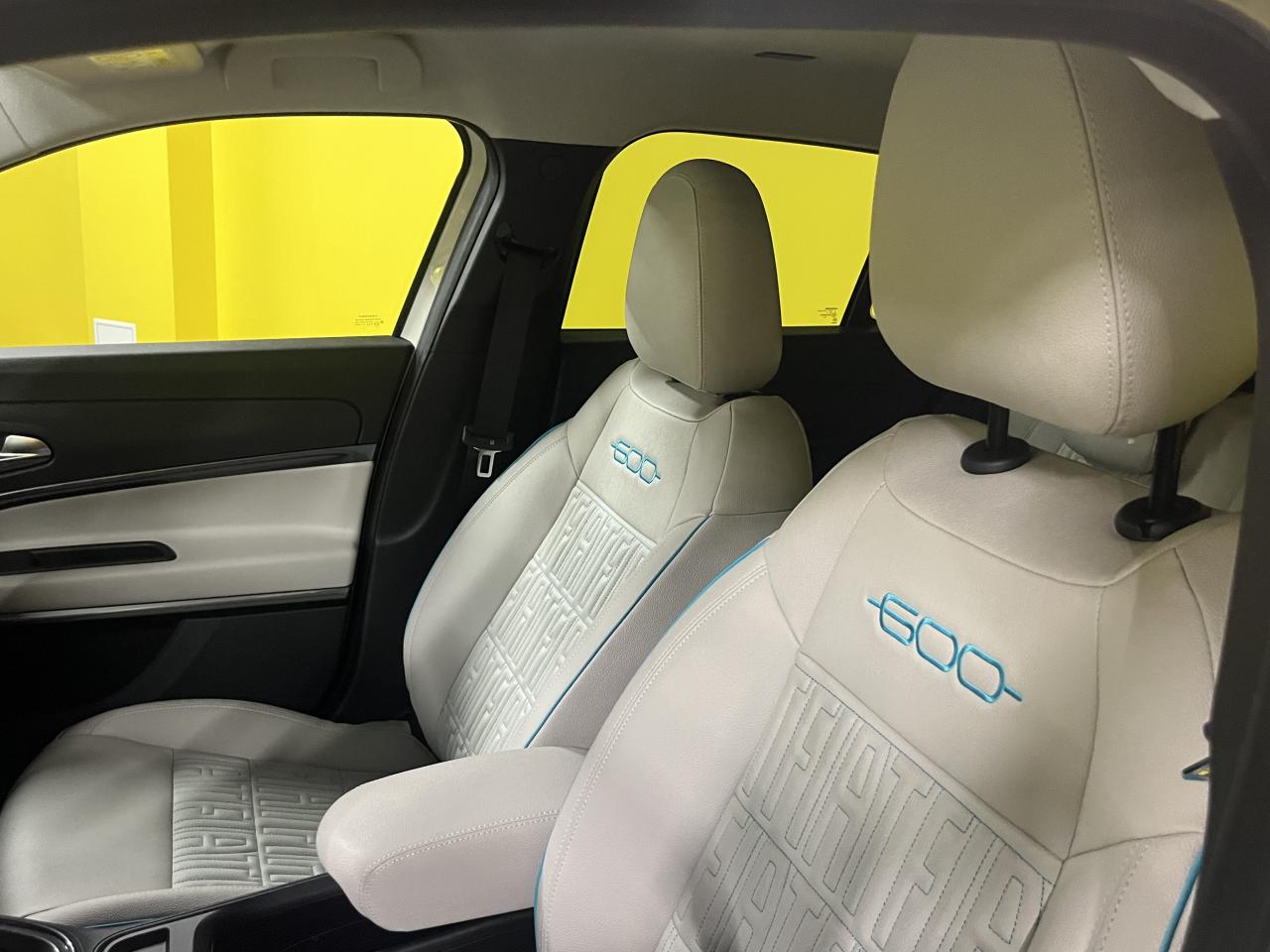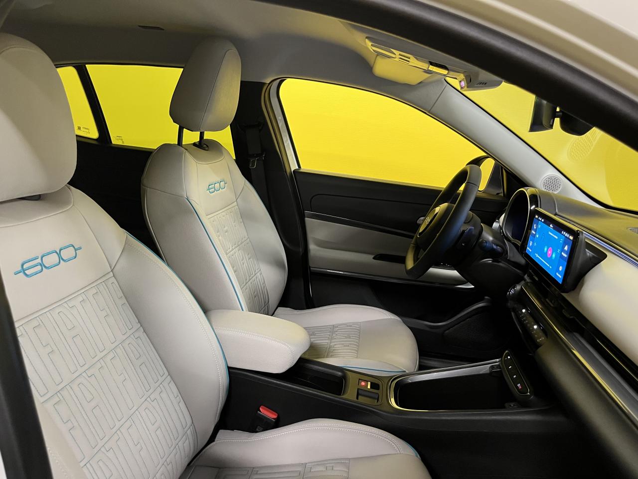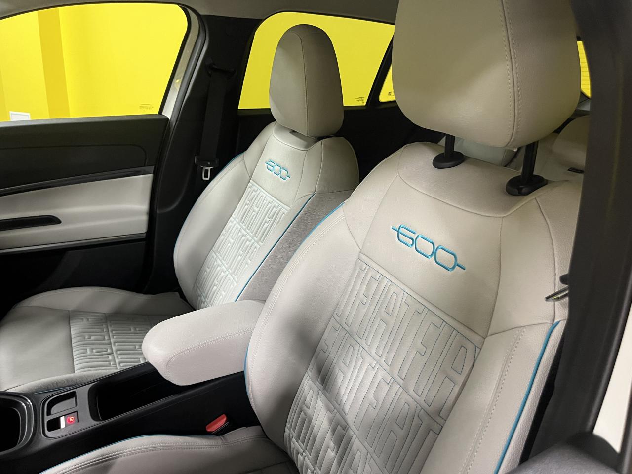 - Sellerie premium ivoire soft touch avec monogramme FIAT et logo 600 Bleu Azur