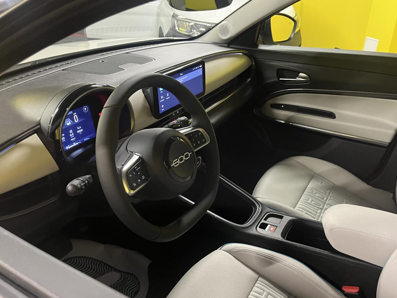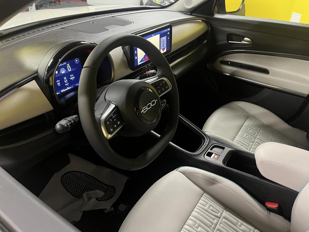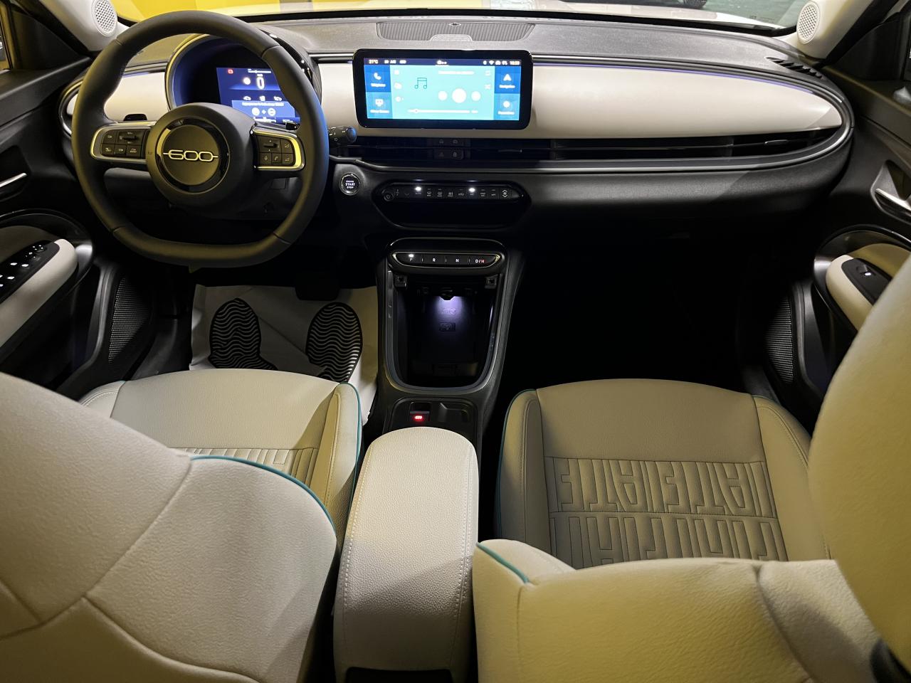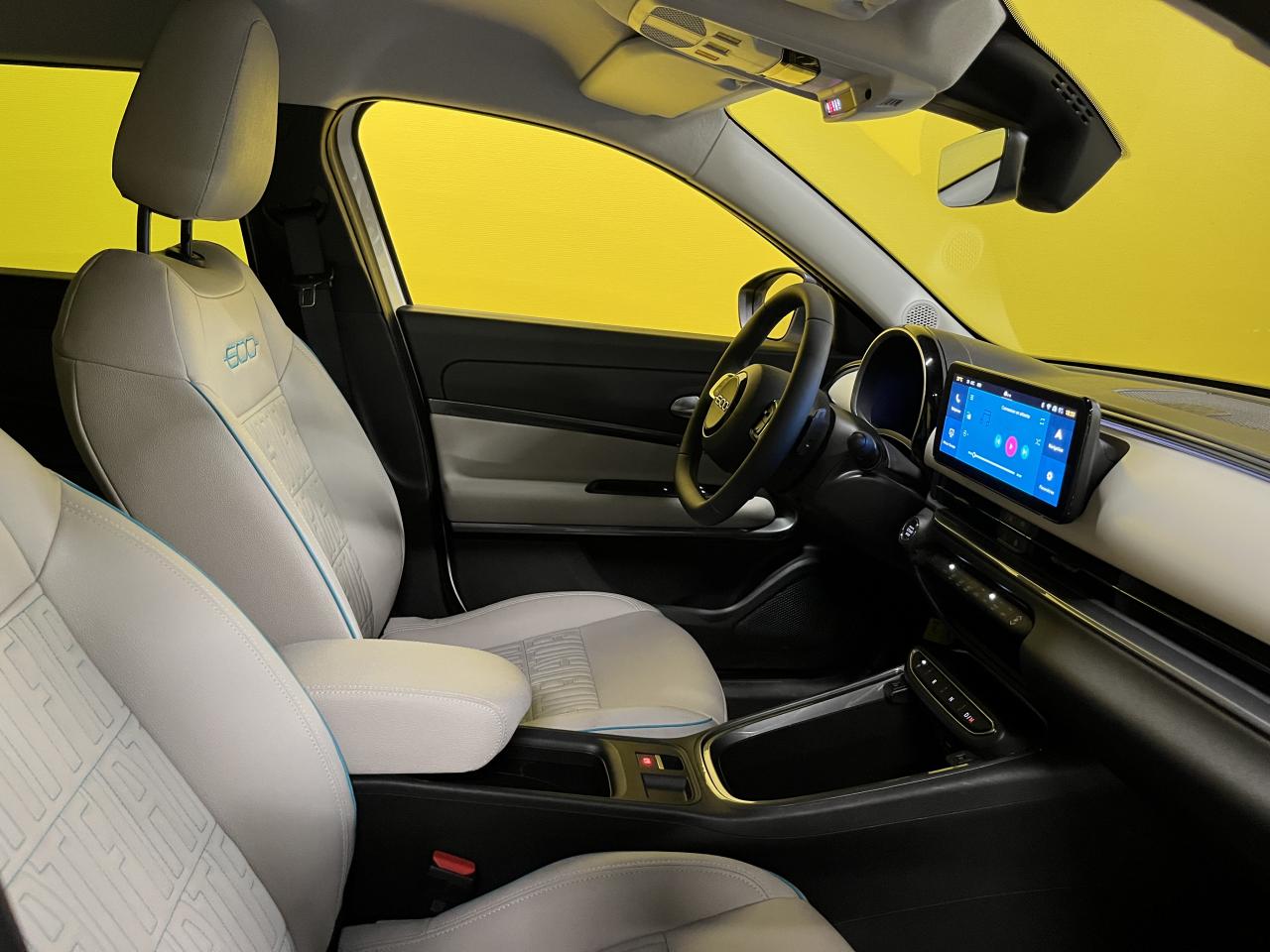 - Sellerie premium ivoire soft touch avec monogramme FIAT et logo 600 Bleu Azur