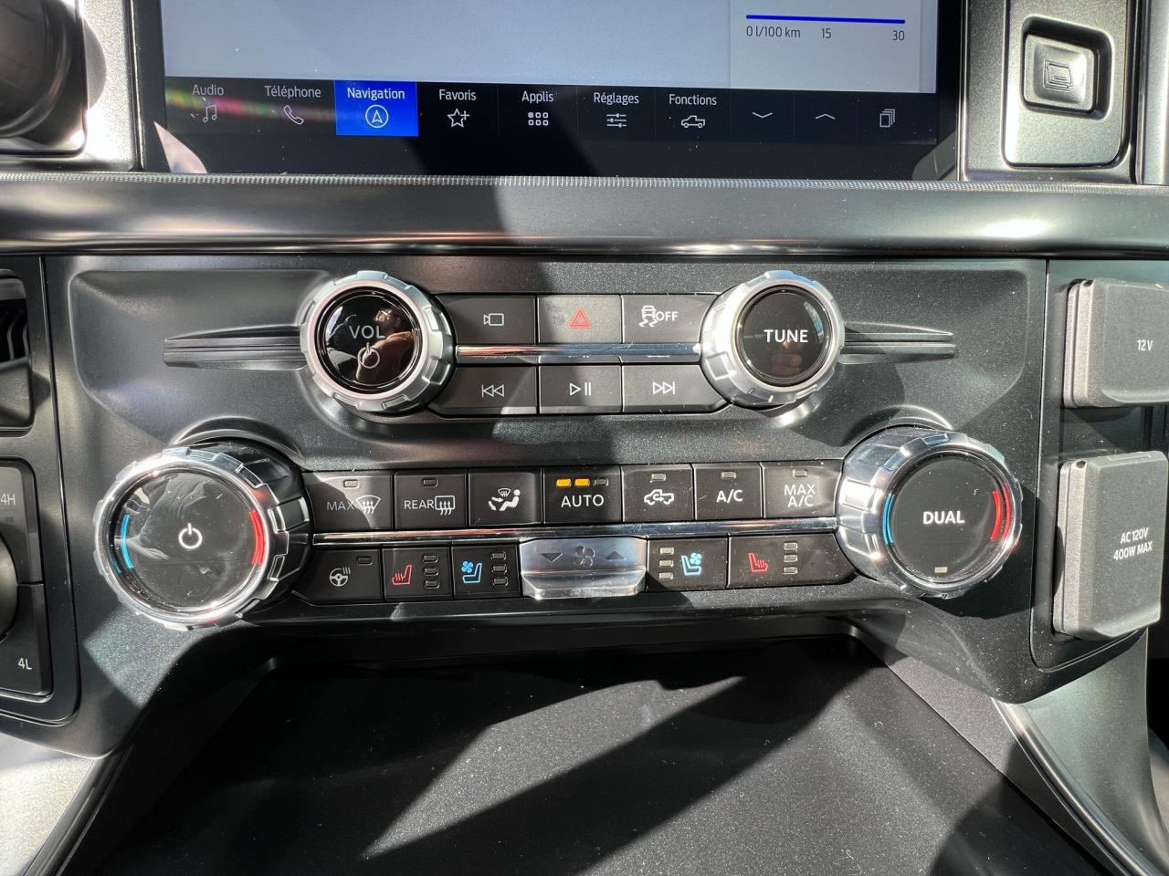 Sièges conducteur à réglages électriques 10 positions avec mémoire / Siège passager à réglages électriques 8 positions / Sièges avant chauffants et ventilés / Sièges arrière chauffants / Console centrale avec surface de travail intérieure et levier escamotable / Rangement sous siège arrière verrouillable, rabattable et cloisonné / Chargeur sans fil / Climatisation automatique bi-zone / Accès intelligent avec démarrage bouton-poussoir et détection d’approche / Apple CarPlay et Android Auto sans fil / Écran conducteur numérique 12” et système SYNC 4 / Lunette arrière coulissante électriquement avec teinte fumée et dégivrage /