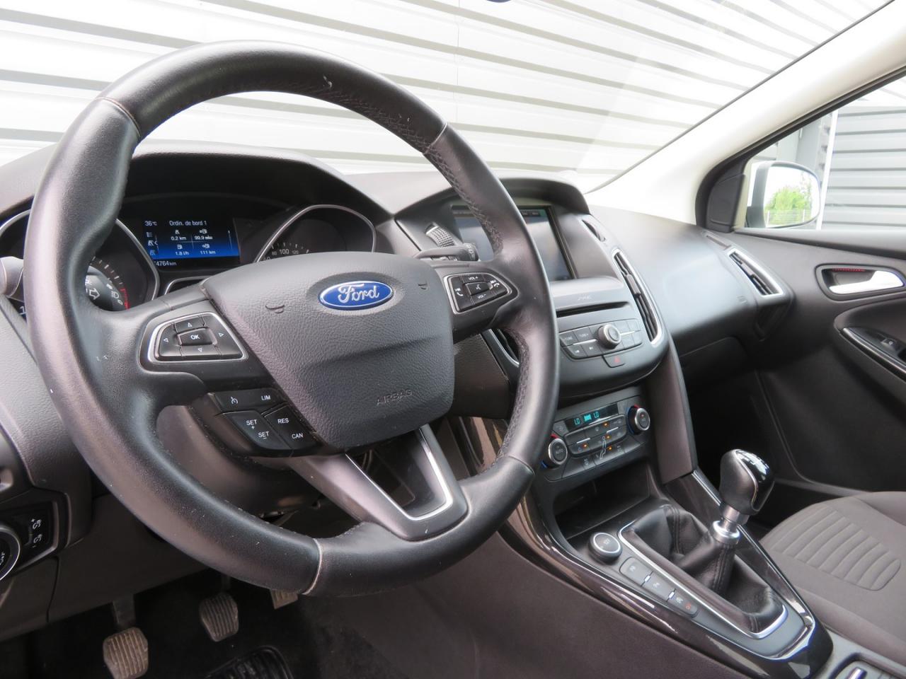3 appuie-têtes arrièreABS avec répartiteur électronique de freinageAccoudoir central arrière avec porte-gobeletsAccoudoir central coulissantAffichage de la température extérieureAide au stationnement arrièreAirbags frontaux, latéraux et rideauxAllumage automatique des phares et fonction d'extinction différéeAudio Nav SYNC II - Ford SYNC II (avec écran tactile 8", Bluetooth et commandes vocales avancées), Navigation Europe avec infoTrafic TMC, Guide Michelin, prises USB (2) et AUX, 6 haut-parleurs, commandes au volantBanquette arrière rabattable 60/40Base des vitres façon alu brosséBecquet arrière couleur carrosserieBouton de démarrage "Ford Power"Ceintures de sécurité à 3 points à toutes les placesCiel de toit premiumClimatisation automatique bi-zoneConsole centrale premium avec porte-gobeletsContrôle électronique de trajectoire ESP avec aide au démarrage en côteContrôle Vectoriel de Couple (TVC)Direction assistée électriqueEclairage d'ambiance à LEDEclairage intérieur à LED avec liseuses intégréesEssuie glaces automatiques avec capteur de pluieFeux stop clignotants lors de freinage d'urgenceFixations Isofix aux places latérales arrièreGrille de calandre ActiveGrille de calandre chroméeJantes alliage 16''Lèche-vitre façon chromeLevier de frein à main gainé de cuirOrdinateur de bordPare-chocs dans la couleur de la carrosserie avec partie basse noirePare-soleil conducteur et passager avec miroirs de courtoisie et éclairagePoches aumônières au dos des sièges avantPoignées de portes couleur carrosseriePommeau de levier de vitesse cuirPrises 12 VProjecteurs antibrouillard avantRégulateur et limiteur de vitesseRétroviseur intérieur automatique jour/nuitRétroviseurs extérieurs électriques et chauffants couleur carrosserieRangement à lunettes dans le ciel de pavillonSeuil de porte avec logo FordSiège conducteur à réglage manuel 4 positionsSiège conducteur avec réglage lombaireSièges avant sport avec maintiens latéraux renforcésSystème de surveillance de la pression des pneusSystème Stop & StartTrappe à carburant avec système Ford EasyFuelVerrouillage centralisé avec commande à distanceVitres avant et arrière électriques à impulsionVolant 3 branches en cuirVolant réglable en hauteur et en profondeur