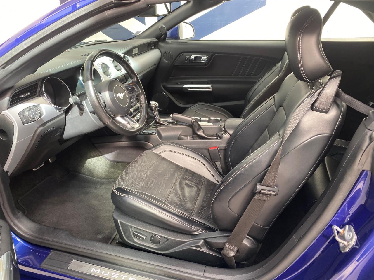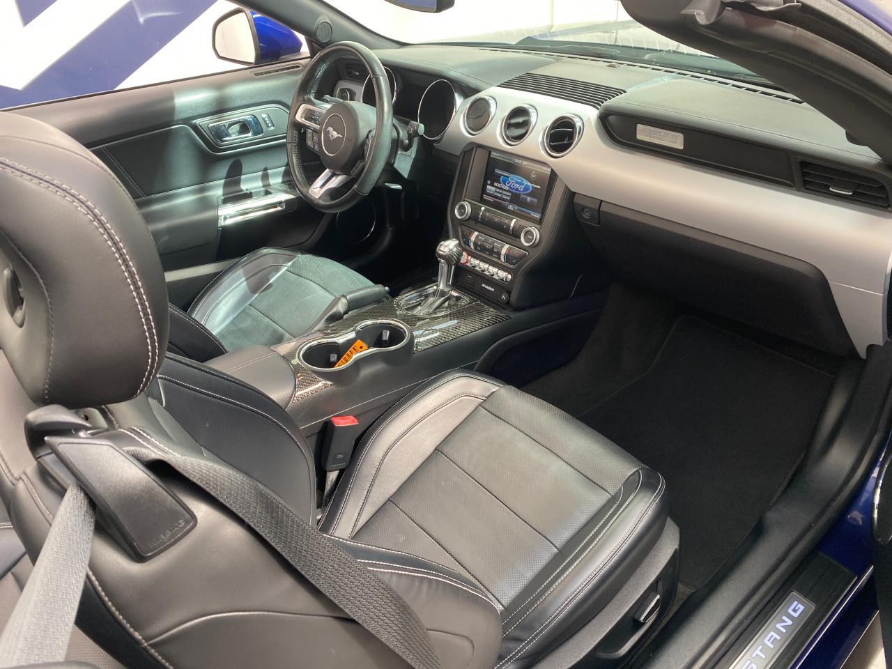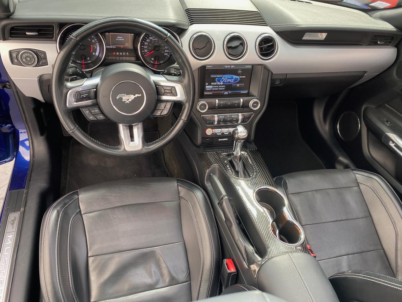 2 porte-gobelets4 modes de conduite paramétrables (Normal, Sport+, Track et Neige)ABS avec répartiteur de freinage EBDAccoudoir central avantAide au démarrage en côteAirbag genoux conducteurAirbags frontaux et latéraux avantAlarme périmétriqueAllumage automatique des essuie-glacesAllumage automatique des projecteursAntidémarrageAssistance au freinage d'urgenceCaméra de reculCapote triple épaisseur en tissu noir à commande électriqueCerclage chromé des haut-parleurs intégrés aux portes, porte-gobelets, buses de ventilation et des compteursClimatisation automatique bi-zoneContrôle de pression des pneus ( TPMS )Différentiel à glissement limitéDouble sorties d'échappement chroméeEclairage d'entrée avec projection du "Pony" sur le solEclairage d’ambianceEcrous antivolESP AdvanceTracExtracteurs d'air arrièreFeux arrière à LEDFrein à main gainé de cuirFreins avant Brembo 6 pistonsGrille de calandre GTInserts façon aluminium sur la planche de bordJantes alliage noires 19'' 10x2 branches avec pneus avant 255/40 R19 et arrière 275/40 R19Keyfree System - Système d'entrée et de démarrage mains libresKit de réparation pneumatiqueLine-Lock (verrouilage du train avant)My KeyOrdinateur de bord couleur 4,2"Pack FumeurPalettes au volantPédalier en aluminiumPeinture non métalliséePhares bi-xénonProjecteurs antibrouillardRégulateur de vitesseRétroviseur intérieur électrochromeRétroviseurs extérieurs électriques et chauffants couleur carrosserie avec répétiteur de clignotantSellerie cuirSeuil de portes rétro-éclairésSièges avant sportSièges conducteur et passager sport à réglages électriques 6 directions avec réglages lombaire intégrésSpoiler avantSuspension arrière indépendanteSuspensions sportSystème audio avec Ford SYNC II (interface Bluetooth et commandes vocales avancées), écran couleur tactile 8'', 9 hauts parleurs et 2 ports USBTapis de sol avantTrack appsTrappe à carburant Ford EasyFuelVerrouillage centraliséVitre arrière électriquesVitres électriques avant à impulsion et fermeture globaleVolant cuir réglable en hauteur et profondeur avec commandes au volant