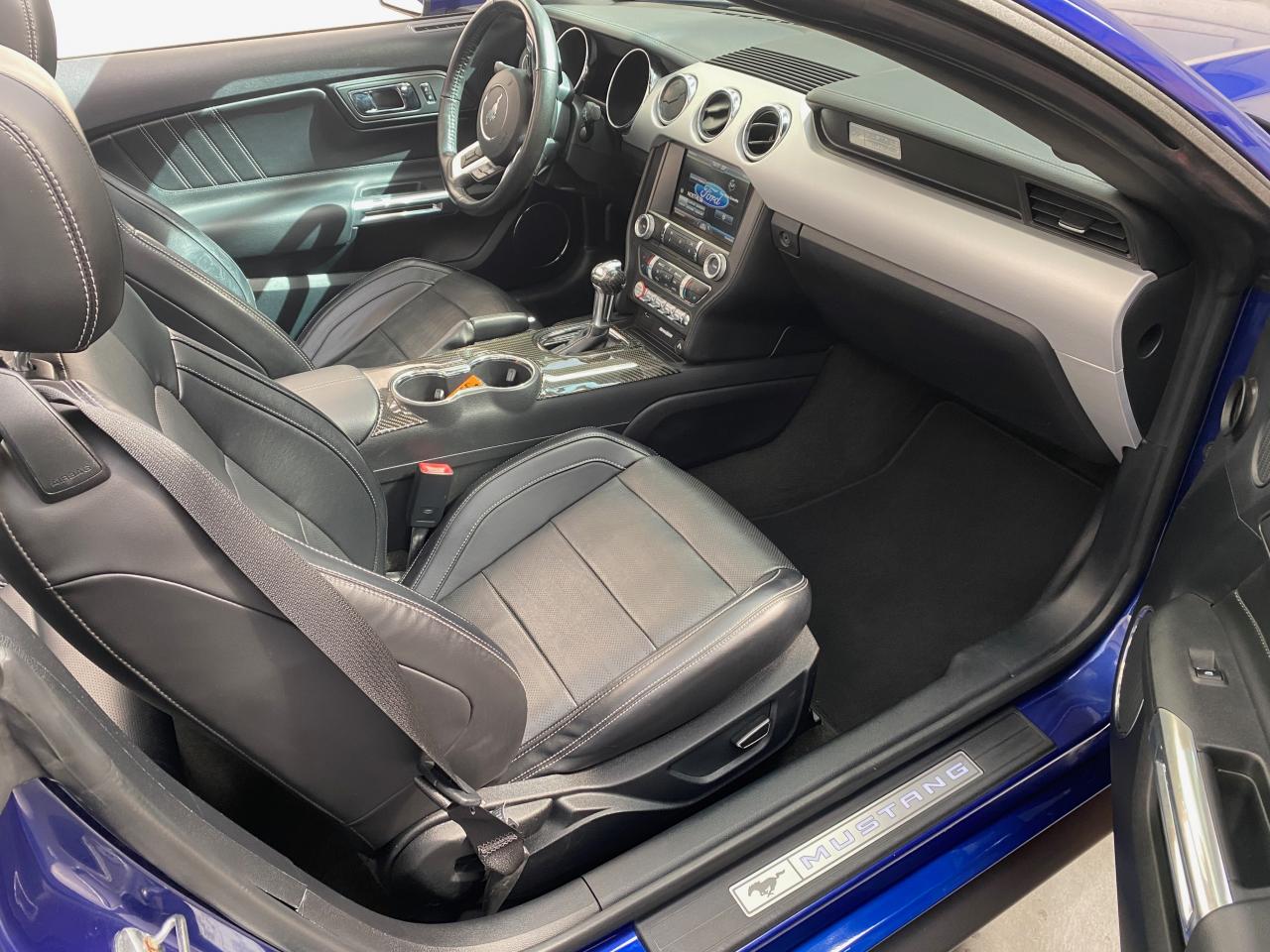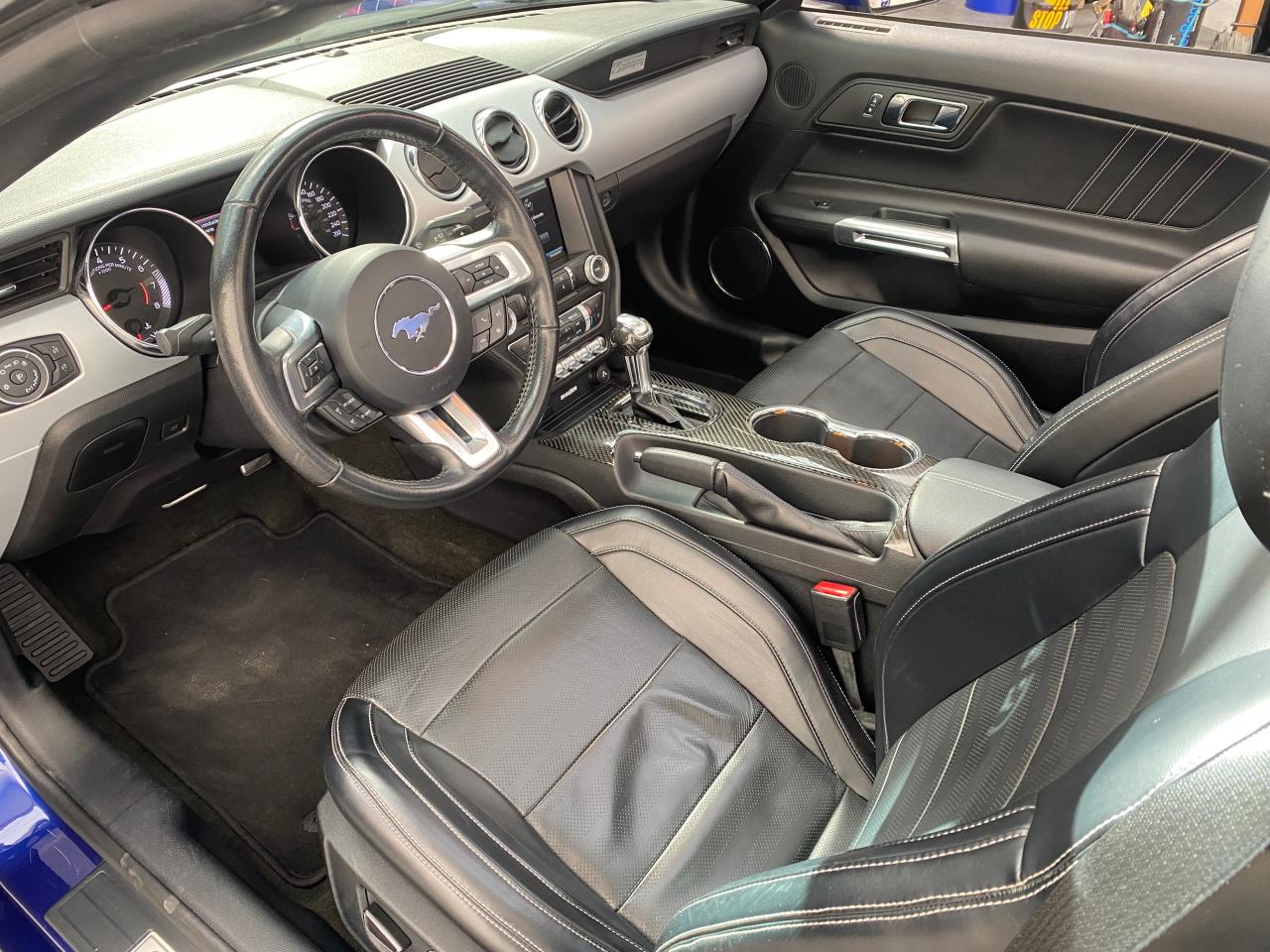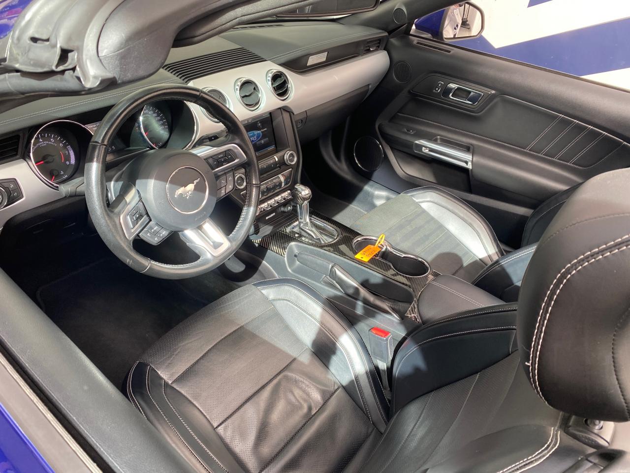 2 porte-gobelets4 modes de conduite paramétrables (Normal, Sport+, Track et Neige)ABS avec répartiteur de freinage EBDAccoudoir central avantAide au démarrage en côteAirbag genoux conducteurAirbags frontaux et latéraux avantAlarme périmétriqueAllumage automatique des essuie-glacesAllumage automatique des projecteursAntidémarrageAssistance au freinage d'urgenceCaméra de reculCapote triple épaisseur en tissu noir à commande électriqueCerclage chromé des haut-parleurs intégrés aux portes, porte-gobelets, buses de ventilation et des compteursClimatisation automatique bi-zoneContrôle de pression des pneus ( TPMS )Différentiel à glissement limitéDouble sorties d'échappement chroméeEclairage d'entrée avec projection du "Pony" sur le solEclairage d’ambianceEcrous antivolESP AdvanceTracExtracteurs d'air arrièreFeux arrière à LEDFrein à main gainé de cuirFreins avant Brembo 6 pistonsGrille de calandre GTInserts façon aluminium sur la planche de bordJantes alliage noires 19'' 10x2 branches avec pneus avant 255/40 R19 et arrière 275/40 R19Keyfree System - Système d'entrée et de démarrage mains libresKit de réparation pneumatiqueLine-Lock (verrouilage du train avant)My KeyOrdinateur de bord couleur 4,2"Pack FumeurPalettes au volantPédalier en aluminiumPeinture non métalliséePhares bi-xénonProjecteurs antibrouillardRégulateur de vitesseRétroviseur intérieur électrochromeRétroviseurs extérieurs électriques et chauffants couleur carrosserie avec répétiteur de clignotantSellerie cuirSeuil de portes rétro-éclairésSièges avant sportSièges conducteur et passager sport à réglages électriques 6 directions avec réglages lombaire intégrésSpoiler avantSuspension arrière indépendanteSuspensions sportSystème audio avec Ford SYNC II (interface Bluetooth et commandes vocales avancées), écran couleur tactile 8'', 9 hauts parleurs et 2 ports USBTapis de sol avantTrack appsTrappe à carburant Ford EasyFuelVerrouillage centraliséVitre arrière électriquesVitres électriques avant à impulsion et fermeture globaleVolant cuir réglable en hauteur et profondeur avec commandes au volant