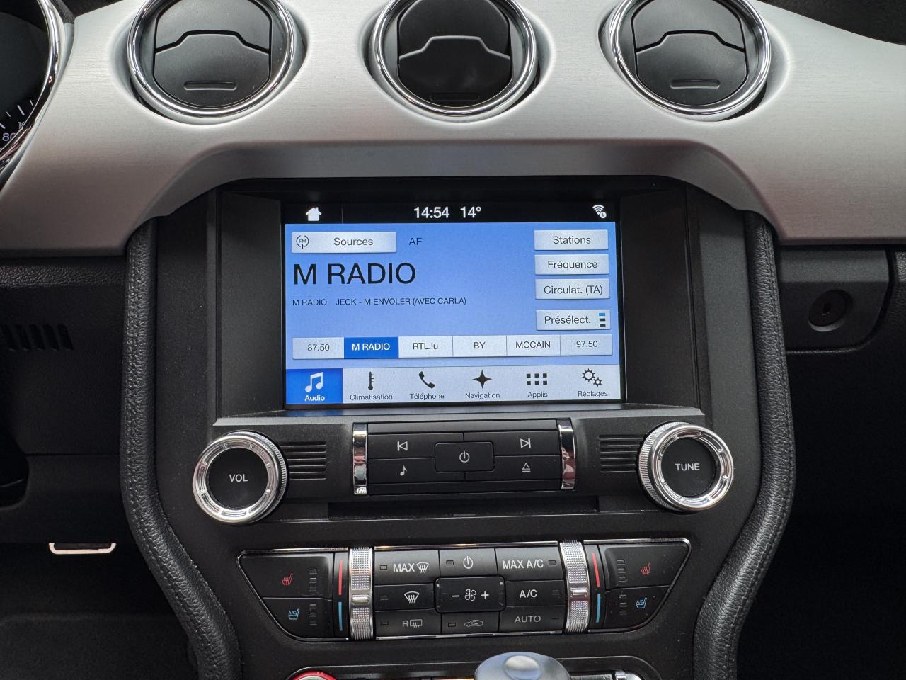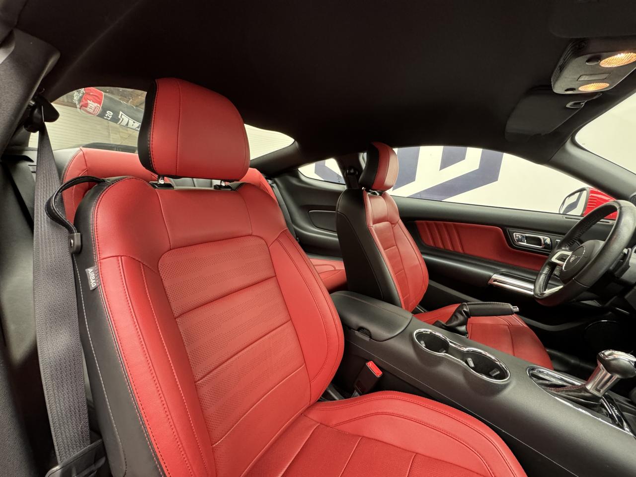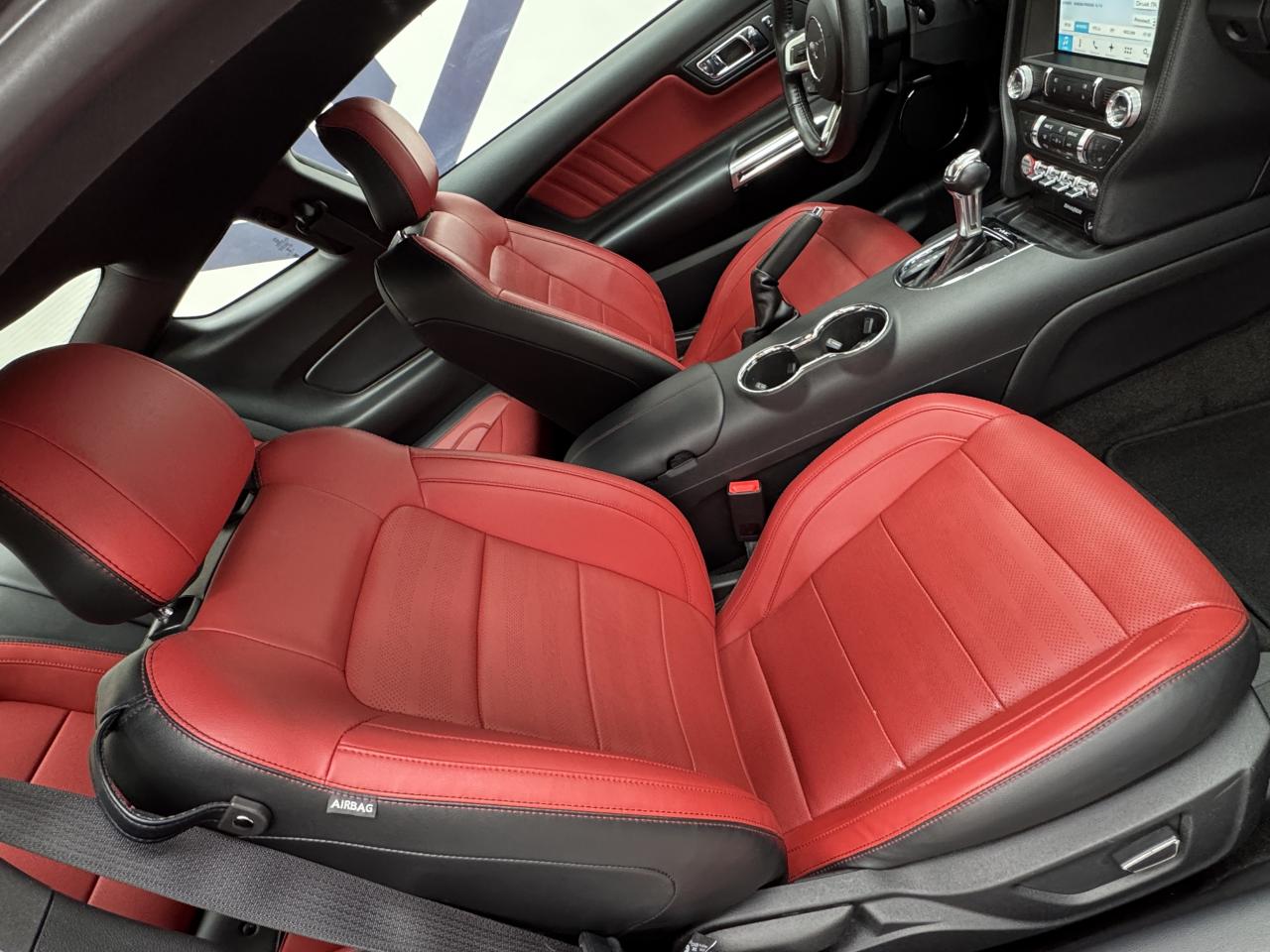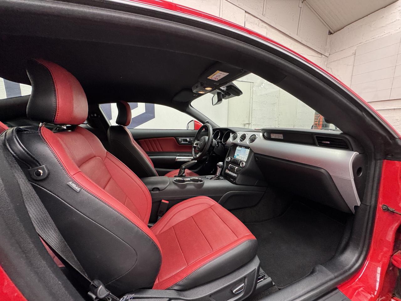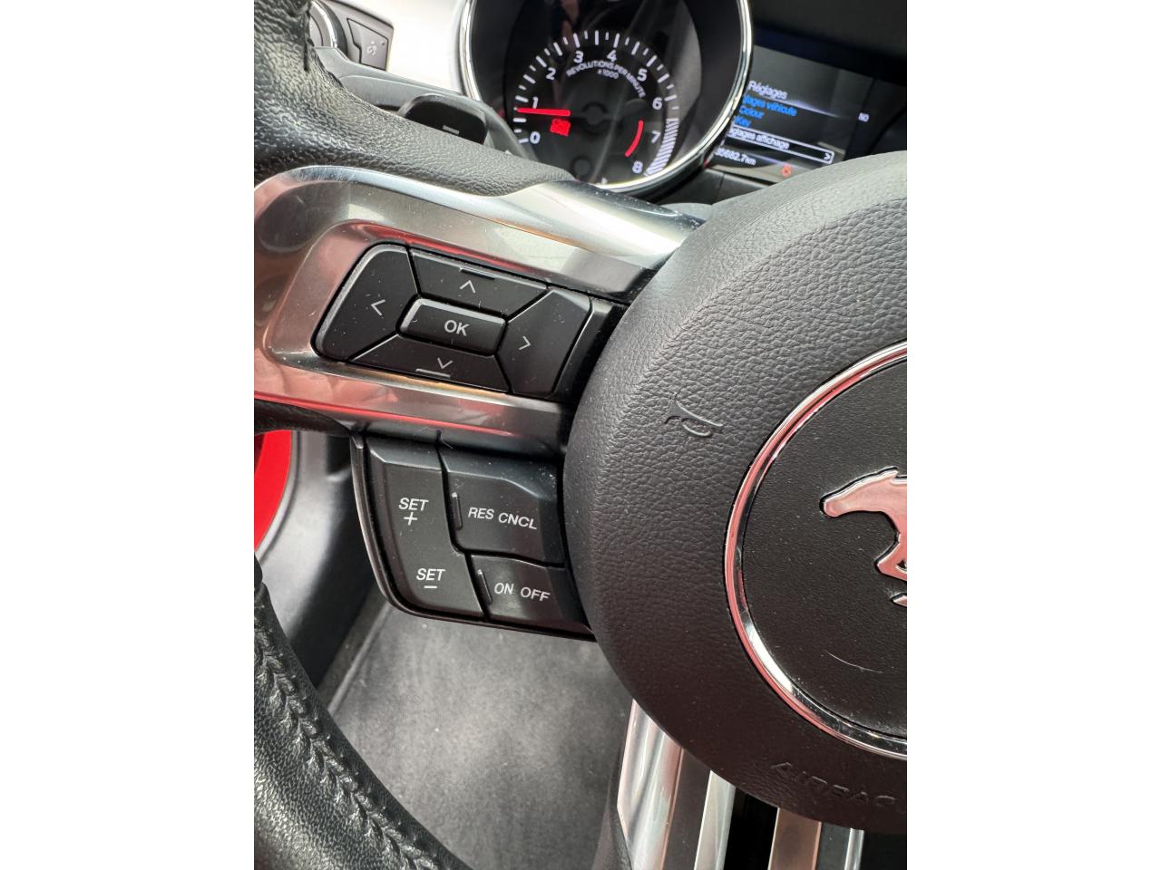 2 porte-gobelets4 modes de conduite paramétrables (Normal, Sport+, Track et Neige)ABS avec répartiteur de freinage EBDAccoudoir central avantAide au démarrage en côteAirbag genoux conducteurAirbags frontaux et latéraux avantAirbags rideauxAlarme périmétrique et volumétriqueAllumage automatique des essuie-glacesAllumage automatique des projecteursAntidémarrageAssistance au freinage d'urgenceCaméra de reculCerclage chromé des haut-parleurs intégrés aux portes, porte-gobelets, buses de ventilation et des compteursClimatisation automatique bi-zoneContrôle de pression des pneus ( TPMS )Différentiel à glissement limitéDouble sorties d'échappement chroméeEclairage d'entrée avec projection du "Pony" sur le solEclairage d’ambianceEcrous antivolESP AdvanceTracExtracteurs d'air arrièreFeux arrière à LEDFrein à main gainé de cuirFreins avant Brembo 6 pistonsGrille de calandre GTInserts façon aluminium sur la planche de bordJantes alliage noires 19'' 10x2 branches avec pneus avant 255/40 R19 et arrière 275/40 R19Keyfree System - Système d'entrée et de démarrage mains libresKit de réparation pneumatiqueLine-Lock (verrouilage du train avant)My KeyOrdinateur de bord couleur 4,2"Pack FumeurPalettes au volantPédalier en aluminiumPeinture non métalliséePhares bi-xénonProjecteurs antibrouillardRégulateur de vitesseRétroviseur intérieur électrochromeRétroviseurs extérieurs électriques et chauffants couleur carrosserie avec répétiteur de clignotantSellerie Cuir CeramicSeuil de portes rétro-éclairésSièges avant sportSièges conducteur et passager sport à réglages électriques 6 directions avec réglages lombaire intégrésSpoiler avantSuspension arrière indépendanteSuspensions sportSystème multimedia Ford SYNC 3 avec interface Bluetooth et commandes vocales avancées, écran couleur tactile 8", 9 HP et 2 ports USB - Intègre Applink,Apple Carplay et Android AutoTapis de sol avantTrack appsTrappe à carburant Ford EasyFuelVerrouillage centraliséVitres électriques avant à impulsion et fermeture globaleVolant cuir réglable en hauteur et profondeur avec commandes au volant