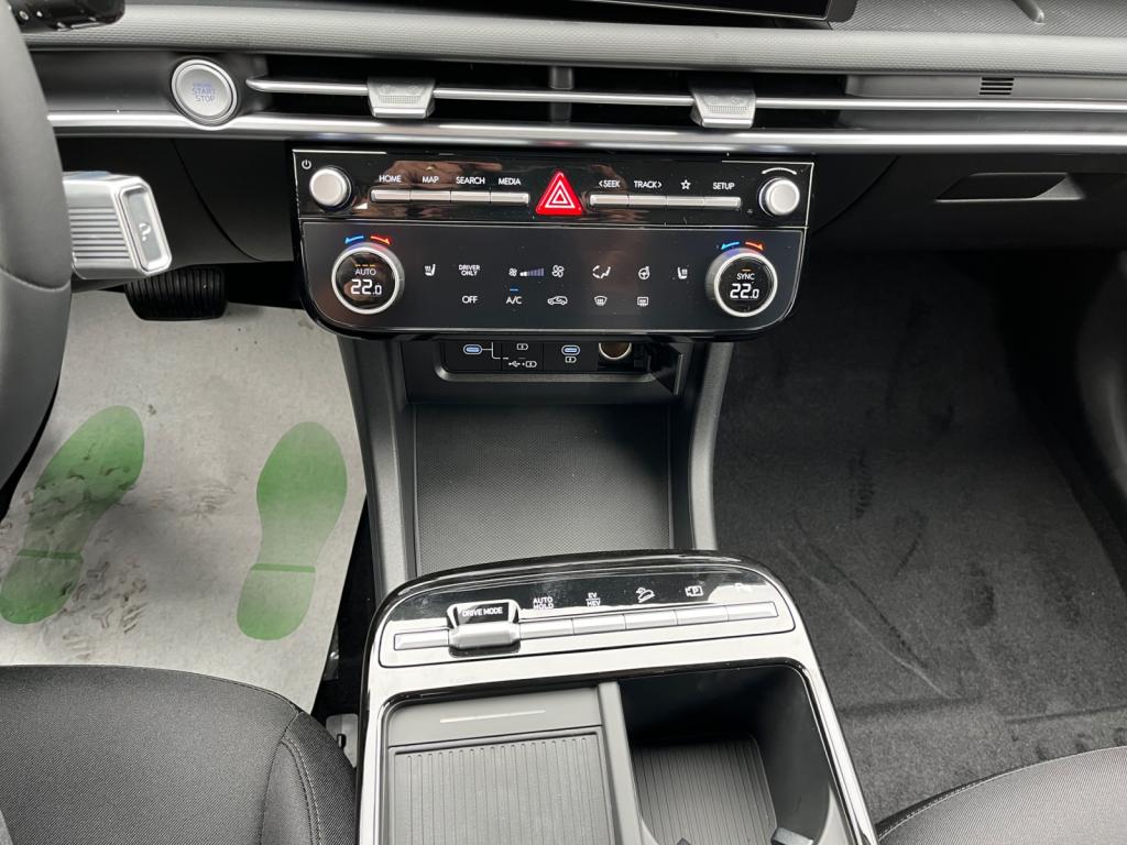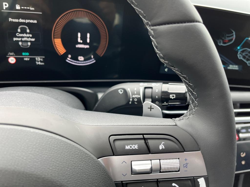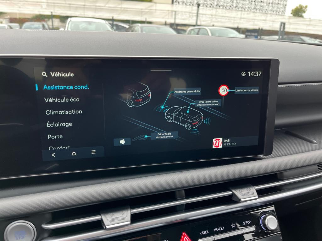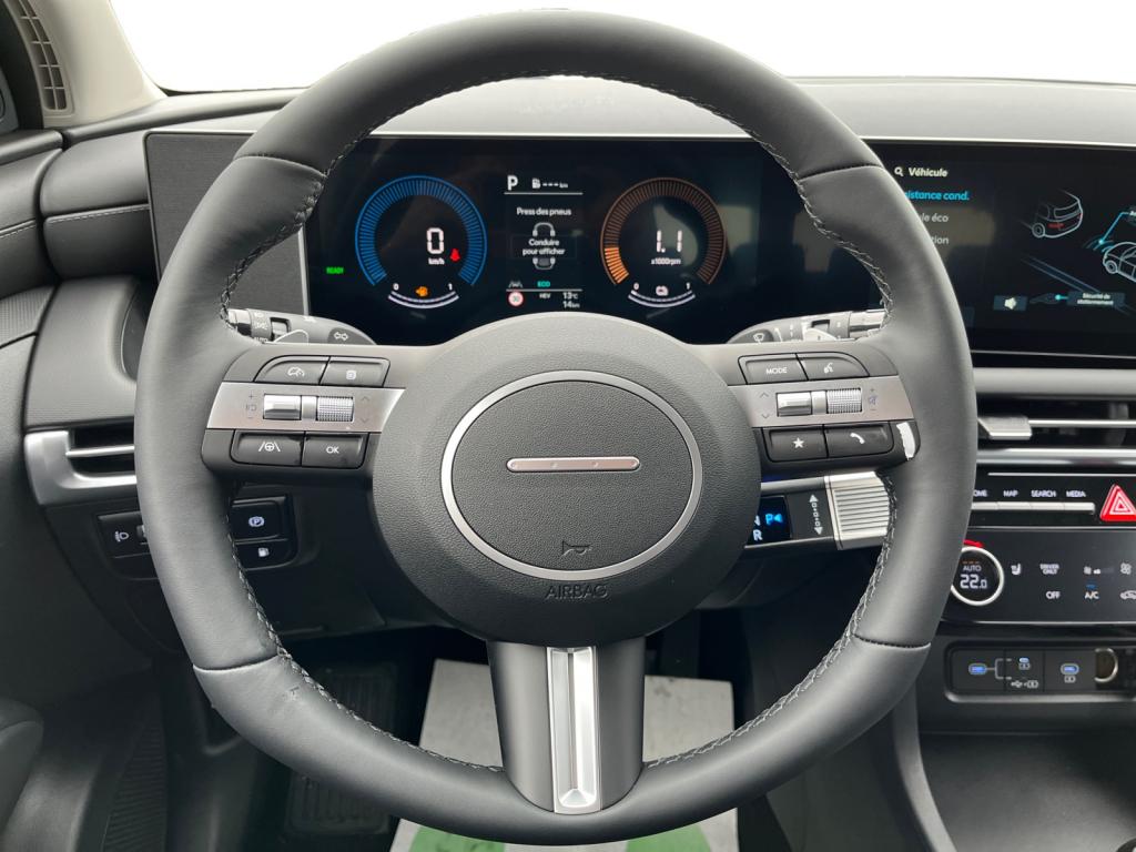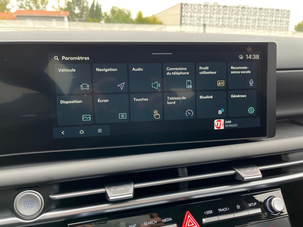 Accès et démarrage mains-libresVolant chauffantVolant et pommeau de levier de vitesses gainés cuirAccoudoirs avant et central arrière avec porte-gobeletsAide au stationnement arrièreAide au stationnement avantAlarme périmétriqueAlerte de circulation transversale à l'arrière avec fonction freinageAllumage automatique des feux de route (AHB)Antenne de toit « aileron de requin »Assistance active à la conduite sur autoroute (HDA)Assistance active au maintien et au suivi de voieAssistant de sortie du véhiculeCaméra de recul avec lignes de guidage activesCapteur de désembuage automatique du pare-briseCapteur de pluieChargeur sans fil pour smartphones compatiblesClignotants avant à LEDClimatisation automatique bi-zone avec capteur de désembuage automatiqueCoffre de rangement sous l'accoudoir de la console centrale avantContrôle de trajectoire électronique (ESP) avec gestion de la stabilité pour remorqueDossier arrière rabattable 40/20/40 à distance avec commande depuis le coffreDrive ModeEclairage d'ambiance intérieur à LED personnalisableFeux arrière à LED avec bandeau lumineuxFeux de route intelligentsFrein de parking électrique avec fonction Auto-HoldIntégration Apple CarPlay et Android Auto sans filJantes alliage 17"Navigation Europe avec programme de mise à jour de la cartographie et services Hyundai LivePalettes de récupération d'énergie au volantProjecteurs avant bi-LEDProtections de seuils de portes grain métalRadio Numérique DABReconnaissance des panneaux de limitation de vitesseRégulateur de vitesseRétroviseur intérieur électrochromeRétroviseurs électriques dégivrants, rabattables électriquement avec répétiteur intégréRétroviseurs extérieurs couleur carrosserieSellerie tissuSiège conducteur à réglage lombaire électriqueSièges arrière inclinablesSièges avant chauffantsSurveillance des angles morts avec assistance au changement de voieSystème multimédia avec écran couleur tactile 12,3" avec reconnaissance vocale en ligneTransmission à commande électriqueVitres avant et arrière électriques séquentielles