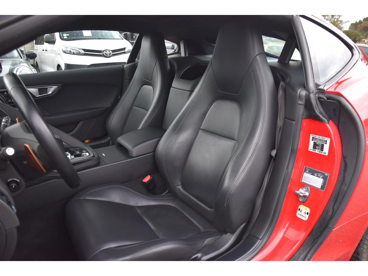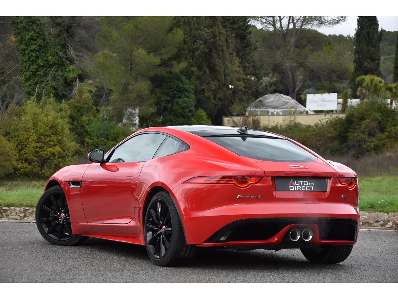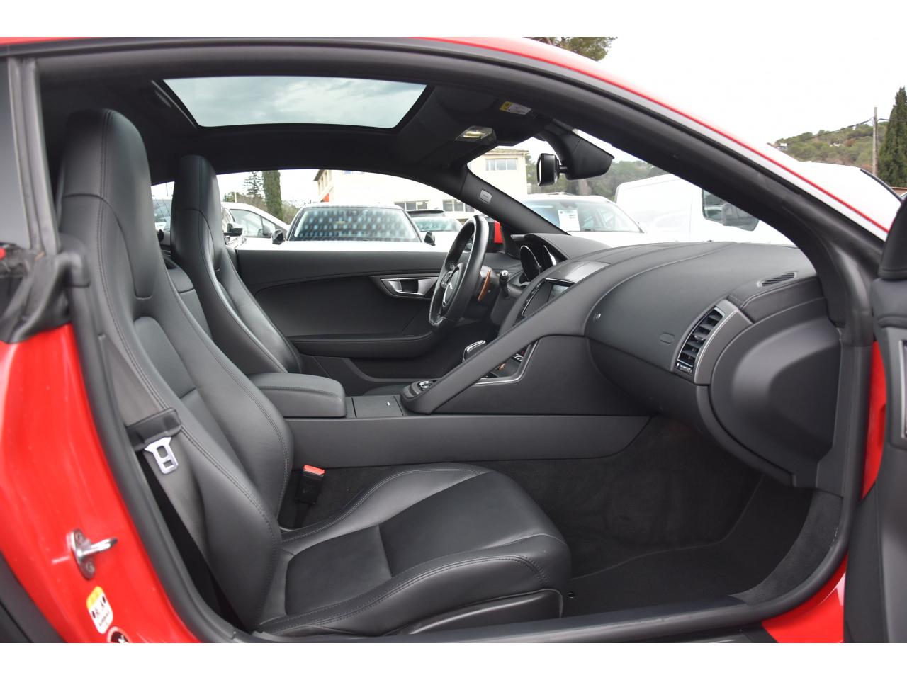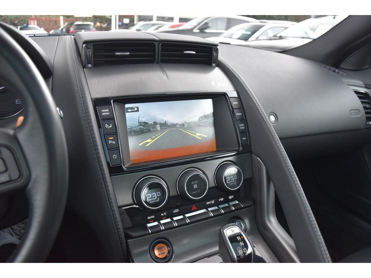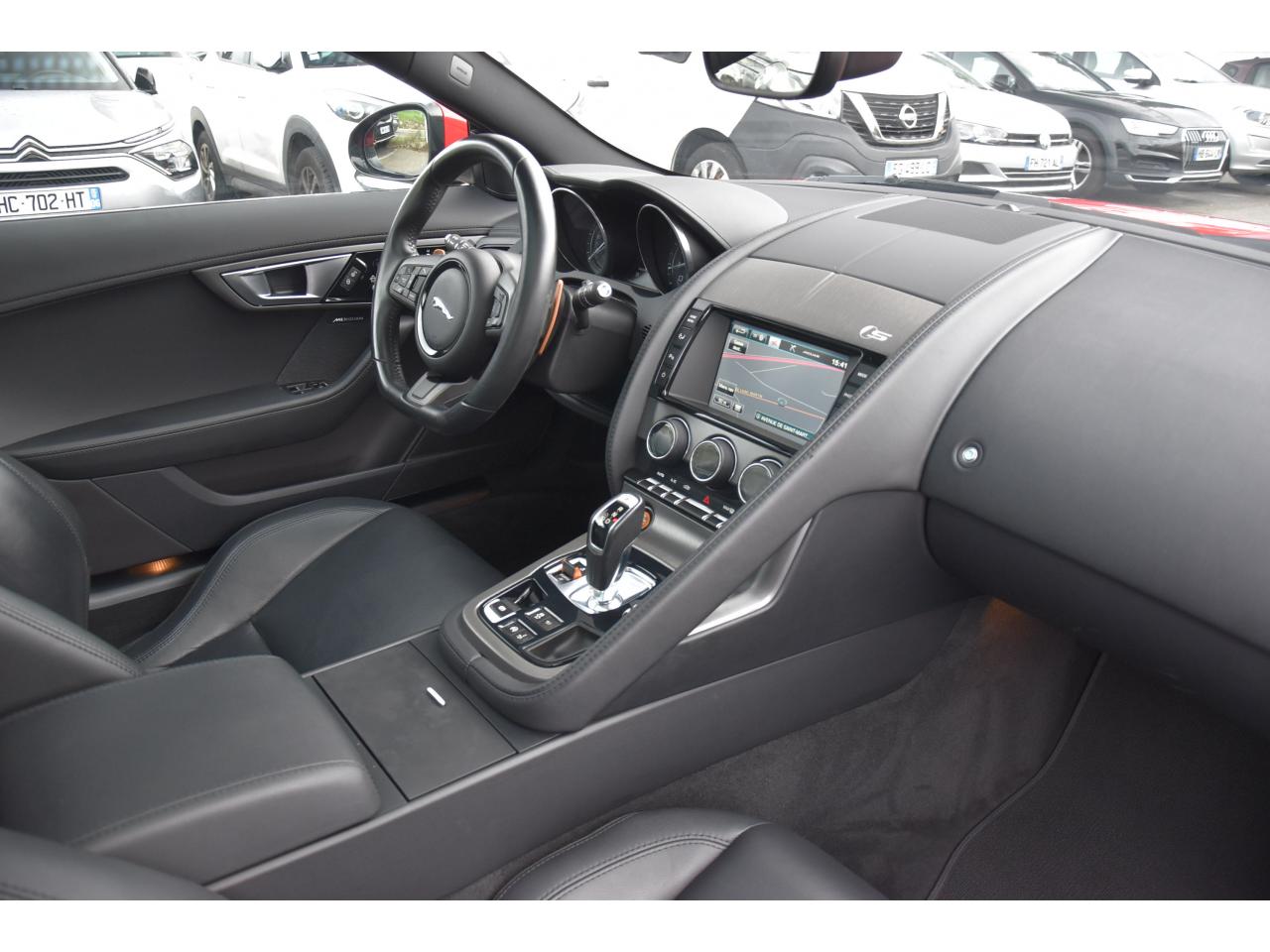 2 Prises 12VAllumage automatique des projecteursClimatisation automatique avec ouïes centrales escamotables électriquementColonne de direction réglable électriquementContrôle de pression des pneus ( TPMS )Contrôle dynamique de la stabilité DSC déverrouillableDifférentiel à glissement limitéDifférentiel ouvertDouble porte-verreDouble sortie d'échappement centraleDynamique de conduite configurable avec menu spécifique via l'écran tactileEchappement Sport actifEclairage intérieur ambiant modulable - 5 tons : du bleu phosphorescent au rougeEcran tactile 8'' à affichage couleurEssuie-glace à déclenchement automatiqueEtriers de freins noirsFilet de rangement entre les 2 siègesFinition Dark Hex Aluminium avec logo ‘‘S''Finition Ignis sur les palettes du volant, les boutons de démarrage et de mode de conduiteFinition noire brillante sur les appendices avant et arrièreFinition noire brillante sur les grilles de calandre et le bas de pare-chocs arrièreFinition noire brillante sur les ouïes d'aération du capotFinition noire brillante sur pare-chocs et sur les ouïes latéralesFrein de stationnement électronique - desserrage automatique au démarrageFreins Haute Performance (380mm à l'avant et 325mm à l'arrière)Interface media avant avec prise auxiliaire et prise USBJaguar Smart Key System, avec démarrage sans cléJantes 19'' Propeller avec étriers de freins noirsLève-vitres électriques à impulsionLogo ‘‘S'' sur l'arrièreLogo F-TYPE sur l'arrièreOrdinateur de bord avec affichage central de 5''Phares Xenon avec feux de jour à LED et lave-phares / Feux arrière à LEDPoignées de portes escamotablesRadio AM/FM et lecteur CD/MP3Rétroviseur intérieur électrochromeRétroviseurs extérieurs chauffants, réglables électriquement avec rappel de clignotantsSélecteur de vitesse séquentiel et palettes montées au volantSièges sport en suédine et cuir, réglables en 6 directions (hauteur de l'assise et inclinaison du dossier - électriquement, avant/arrière - manuellement)Spoiler arrière à déploiement automatiqueSuspensions Sport à amortissement adaptatifSystème ABS, aide au freinage d'urgence et répartiteur électronique de la force de freinageSystème audio Jaguar 180W à 6 haut-parleursSystème de Réparation de Pneu JaguarTechnologie Stop/StartTransmission automatique ‘QuickShift' à 8 rapports avec mode Hiver et mode DynamiqueVolant 3 branches en cuir avec palettes Ignis